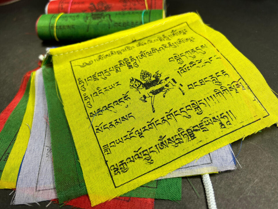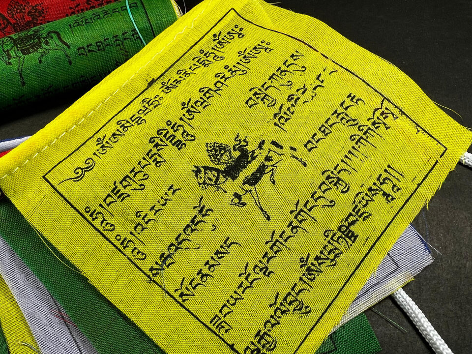 The flag is a string of 10 flags, each with a different Tibetan fundamental color, making it a stunning and eye-catching addition to any home or meditation space.