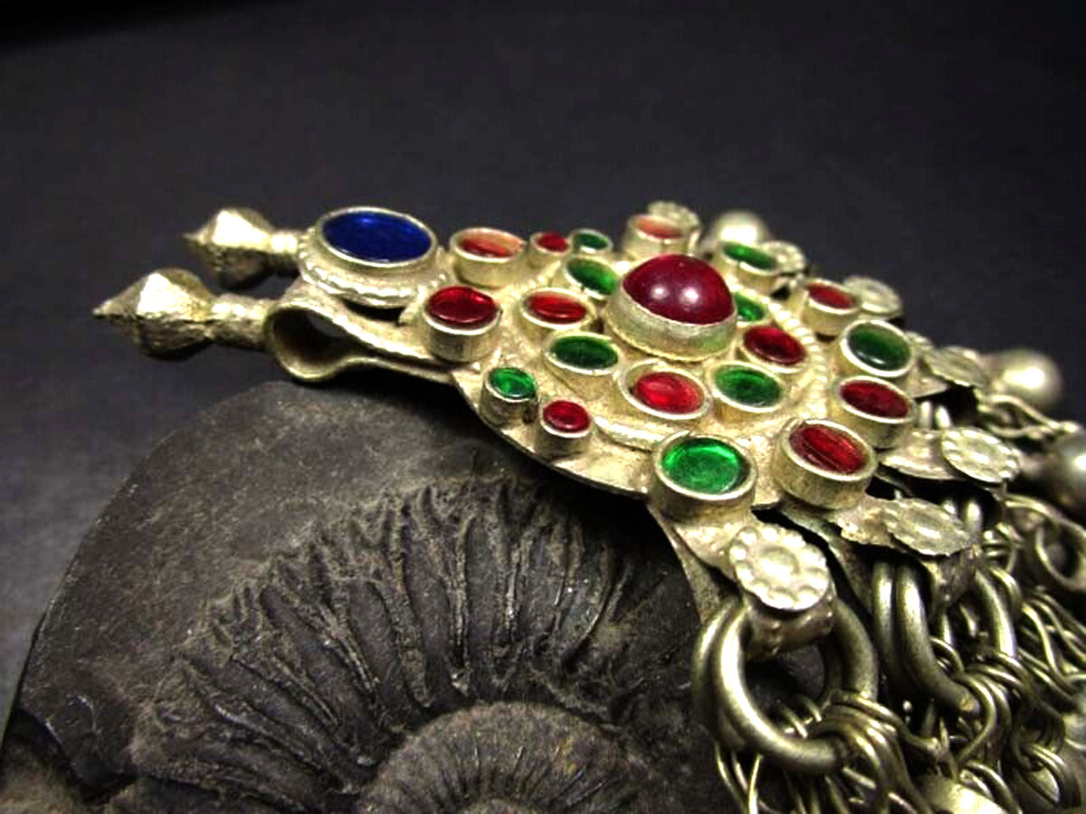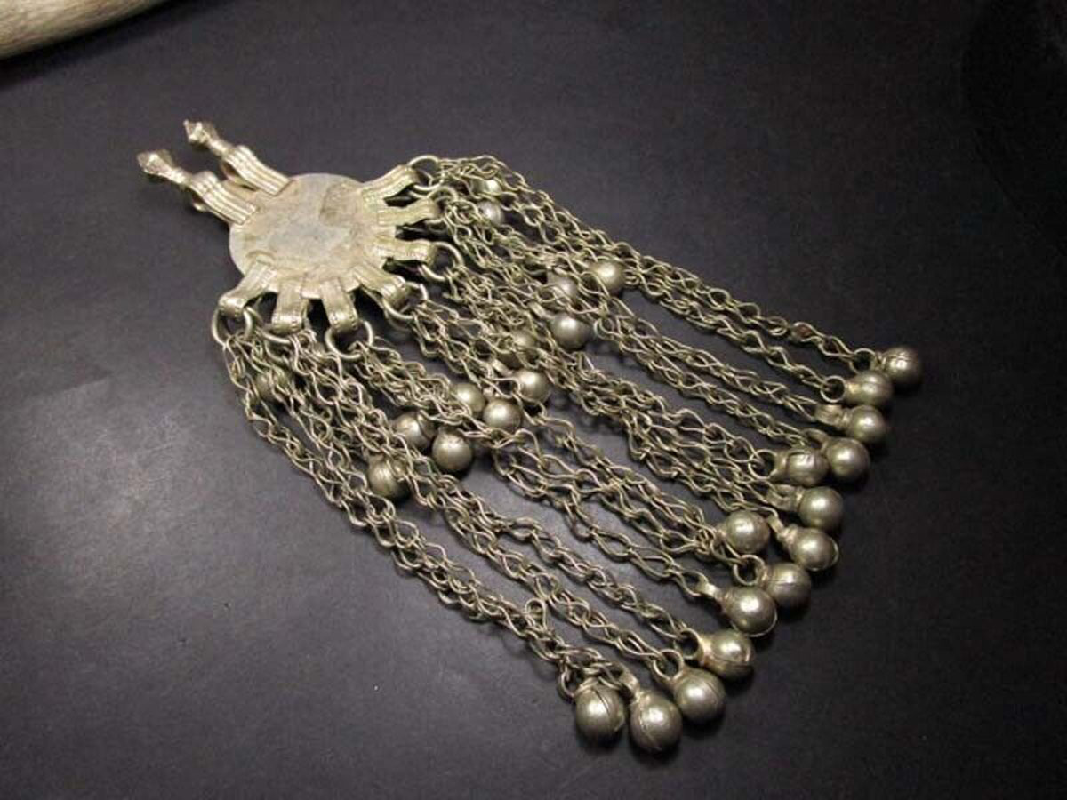 2. Intricate metalwork: Banjara jewelry is characterized by its delicate metalwork, often featuring intricate filigree, etching, and enamel work. The metal used is usually gold or silver, with a reddish hue due to the presence of copper.