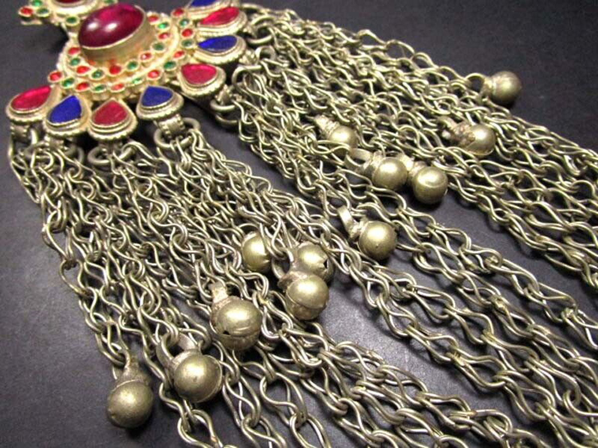 2. Intricate metalwork: Banjara jewelry is characterized by its delicate metalwork, often featuring intricate filigree, etching, and enamel work. The metal used is usually gold or silver, with a reddish hue due to the presence of copper.