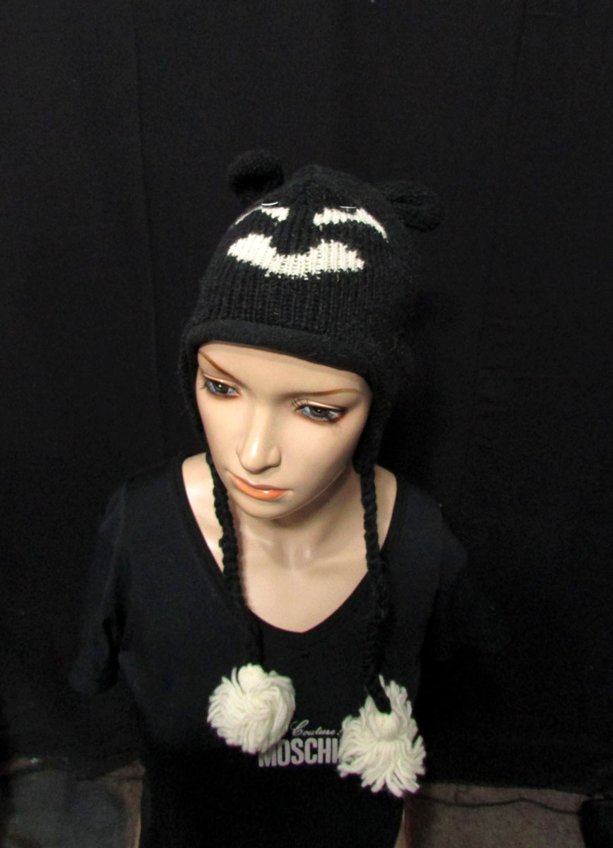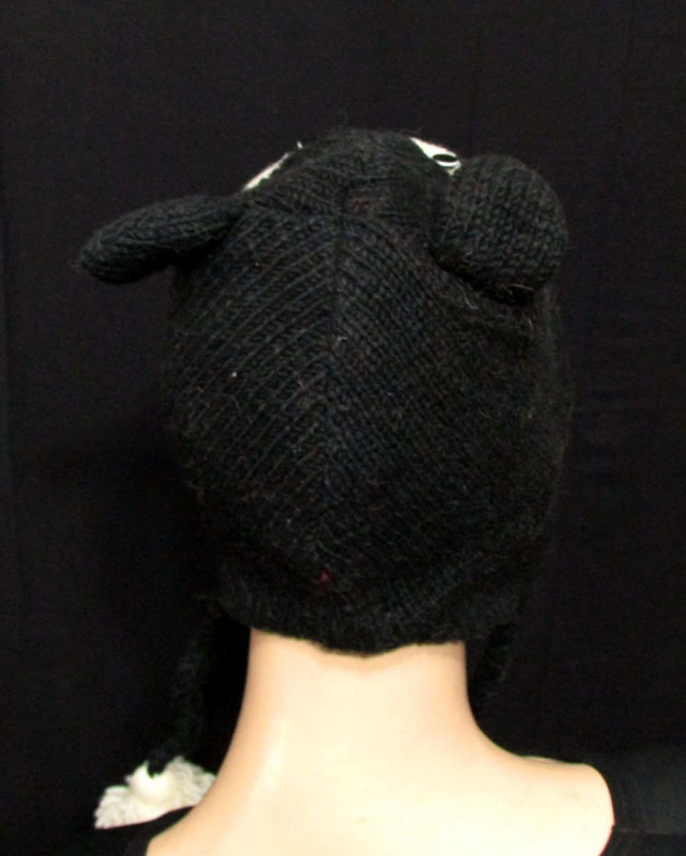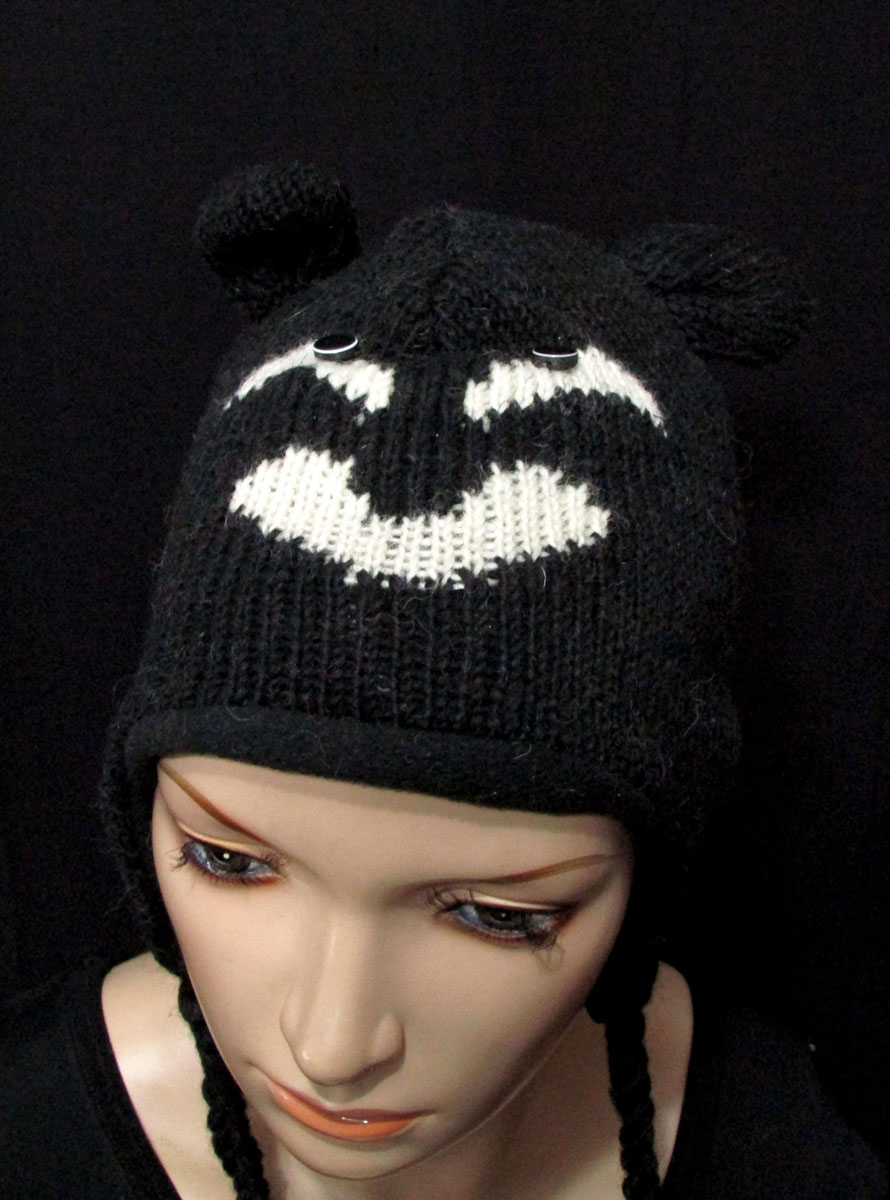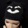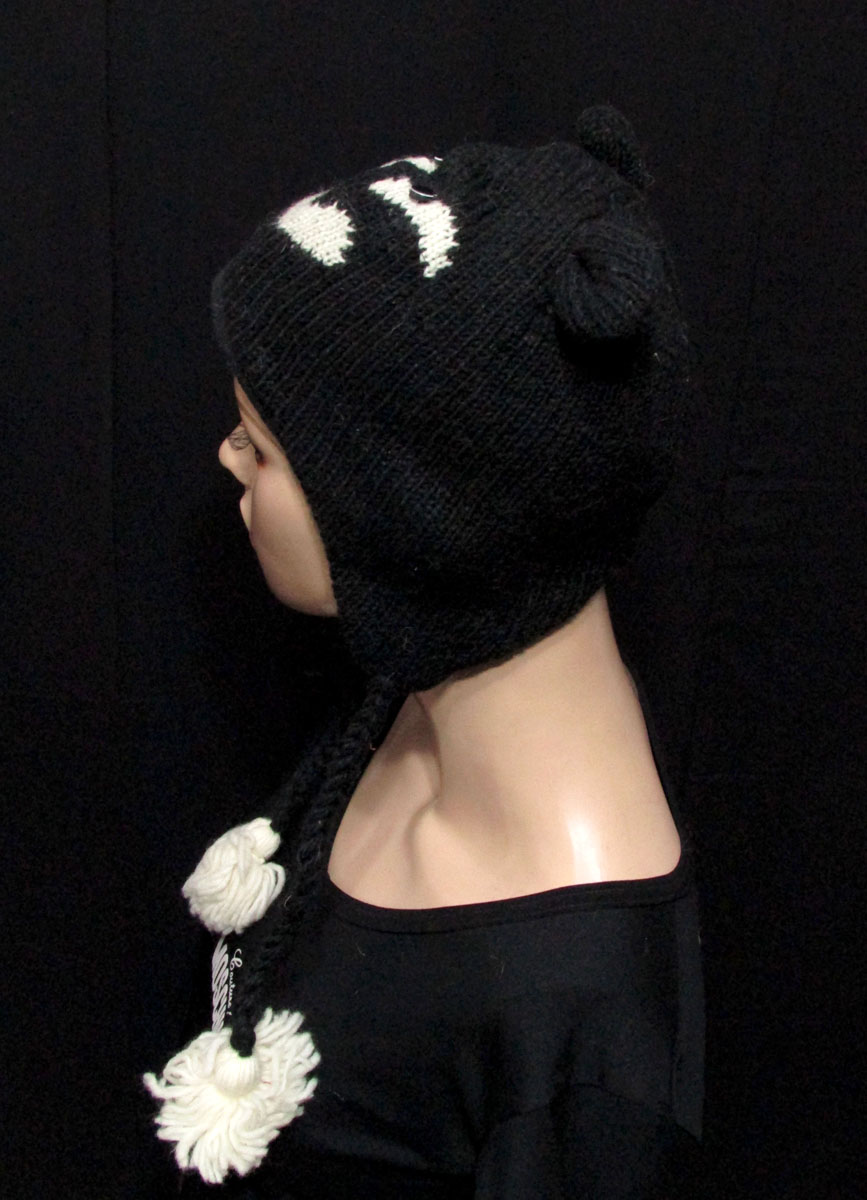 Owl hand knitted black & white sheep wool cap from Nepal