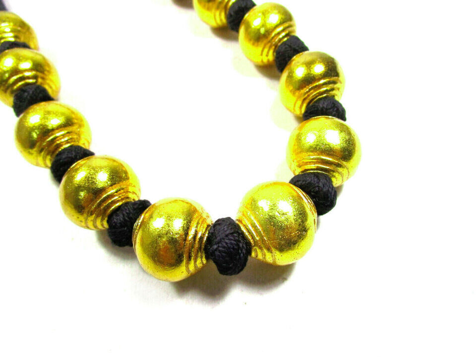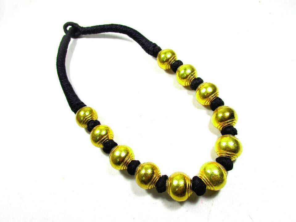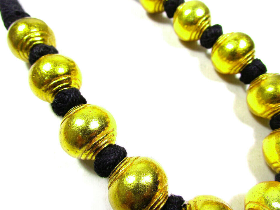 The beads are made of brass. It looks very beautiful and Unique. Very Bold, fine and well made.