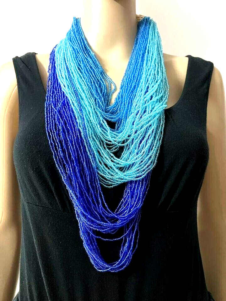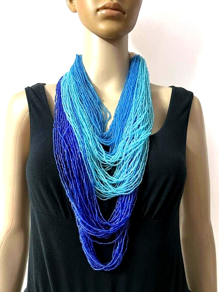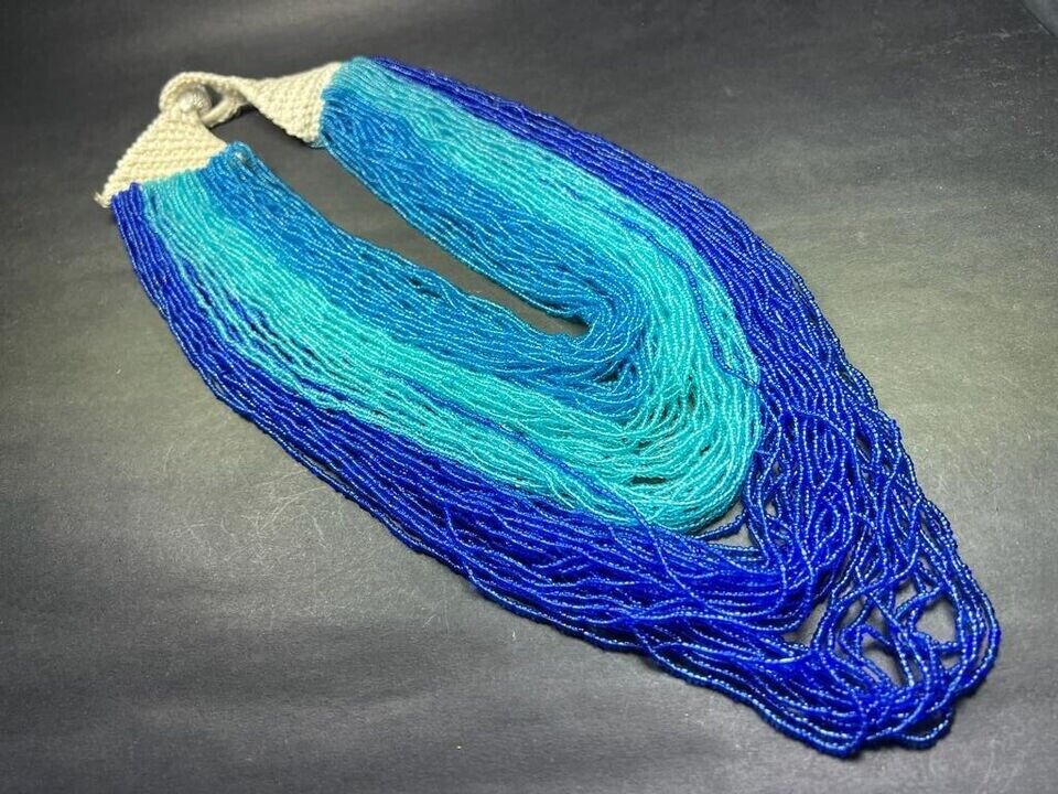 This is a lovely ethnic multi strand with cotton cord crochet work necklace (Brand new) from India. The beads are made of Glass.