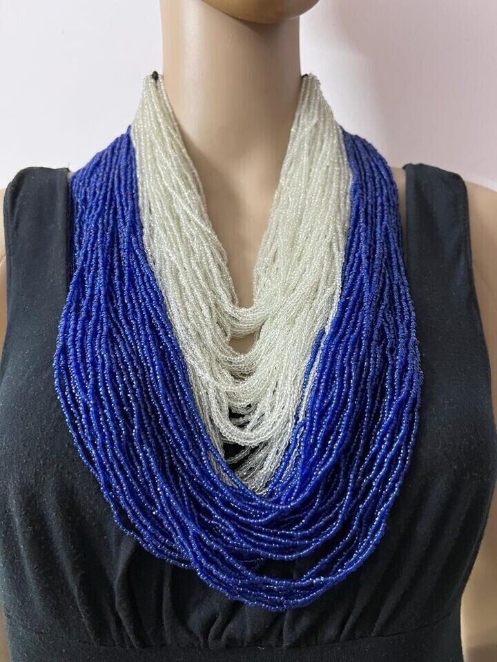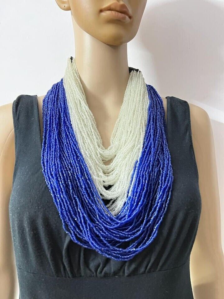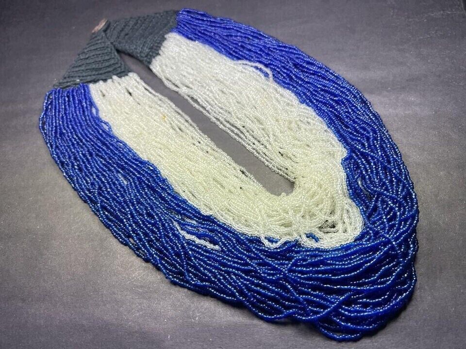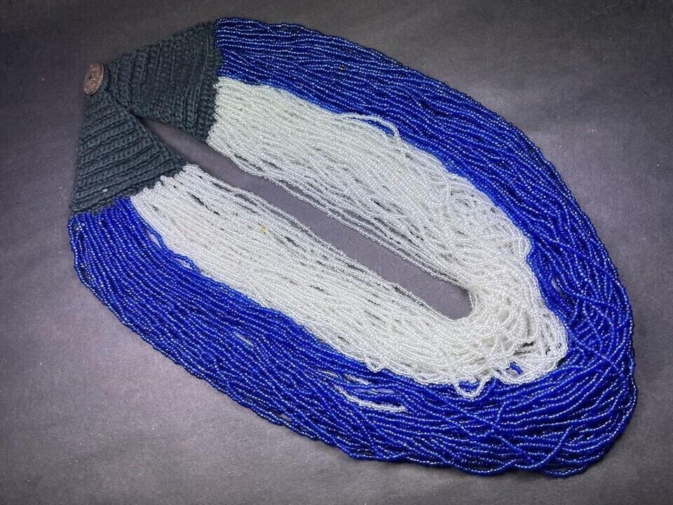 This is a lovely ethnic multi 100+ strand with cotton cord crochet work necklace (Brand new) from India. The beads are made of Glass.