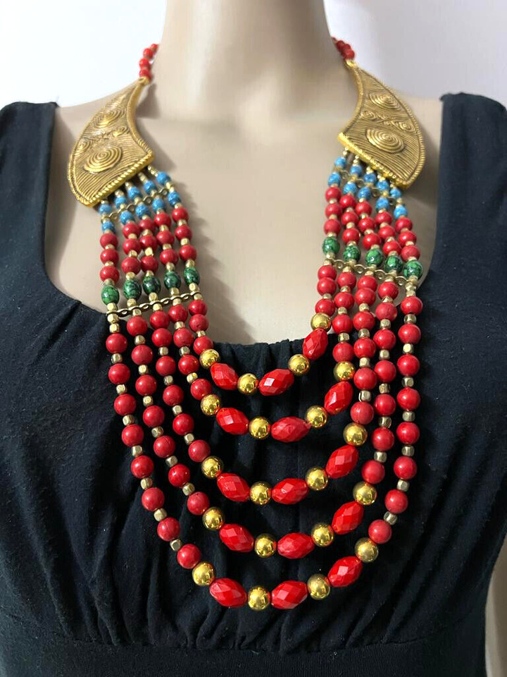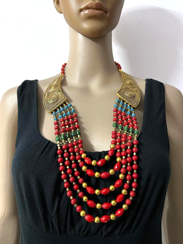 This necklace is not just an accessory but a statement of culture and style, ideal for those who appreciate artisanal craftsmanship and bold, eye-catching designs.