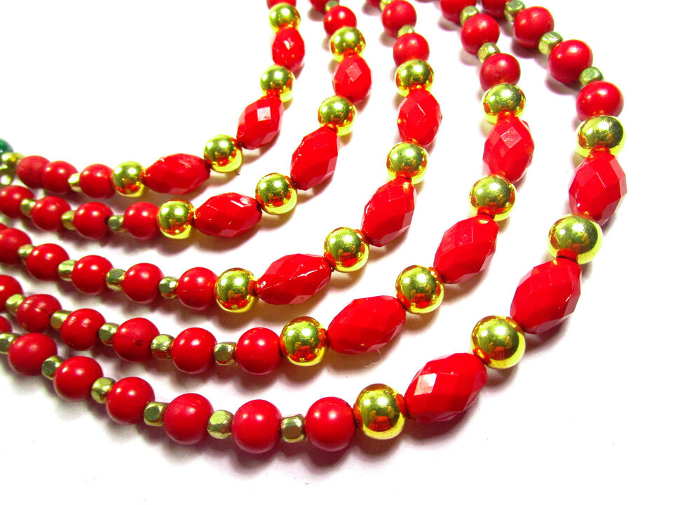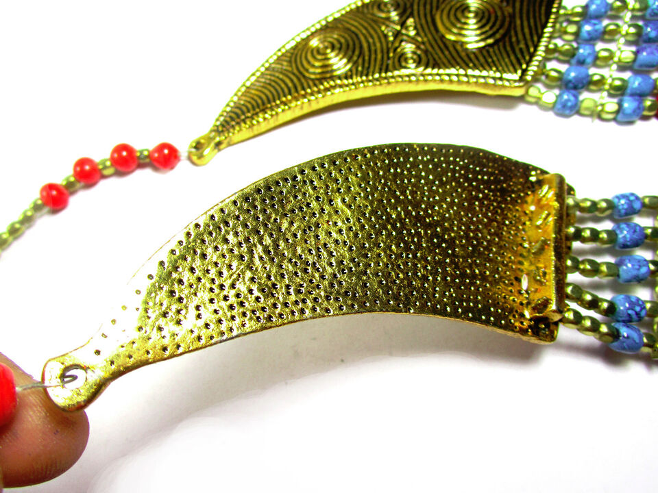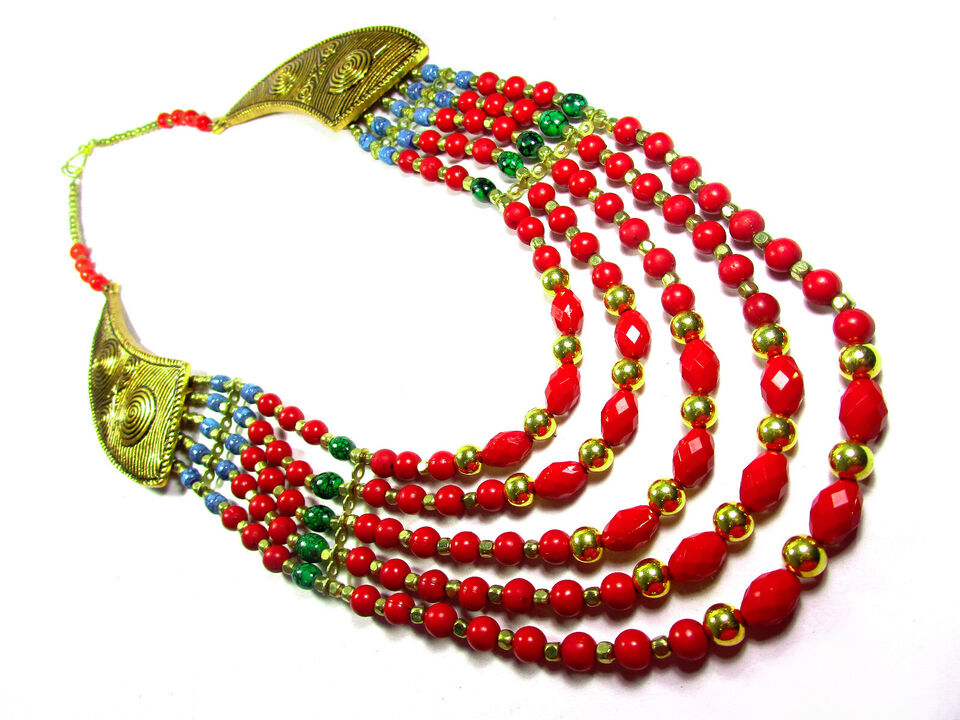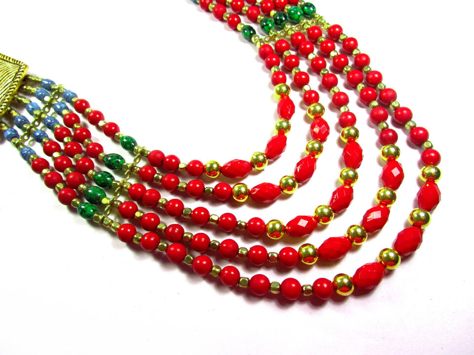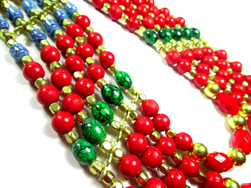 - Bold Long Runway Embossed MultiStrand Glass Bead Handmade Tribal Long NECKLACE India - N7749