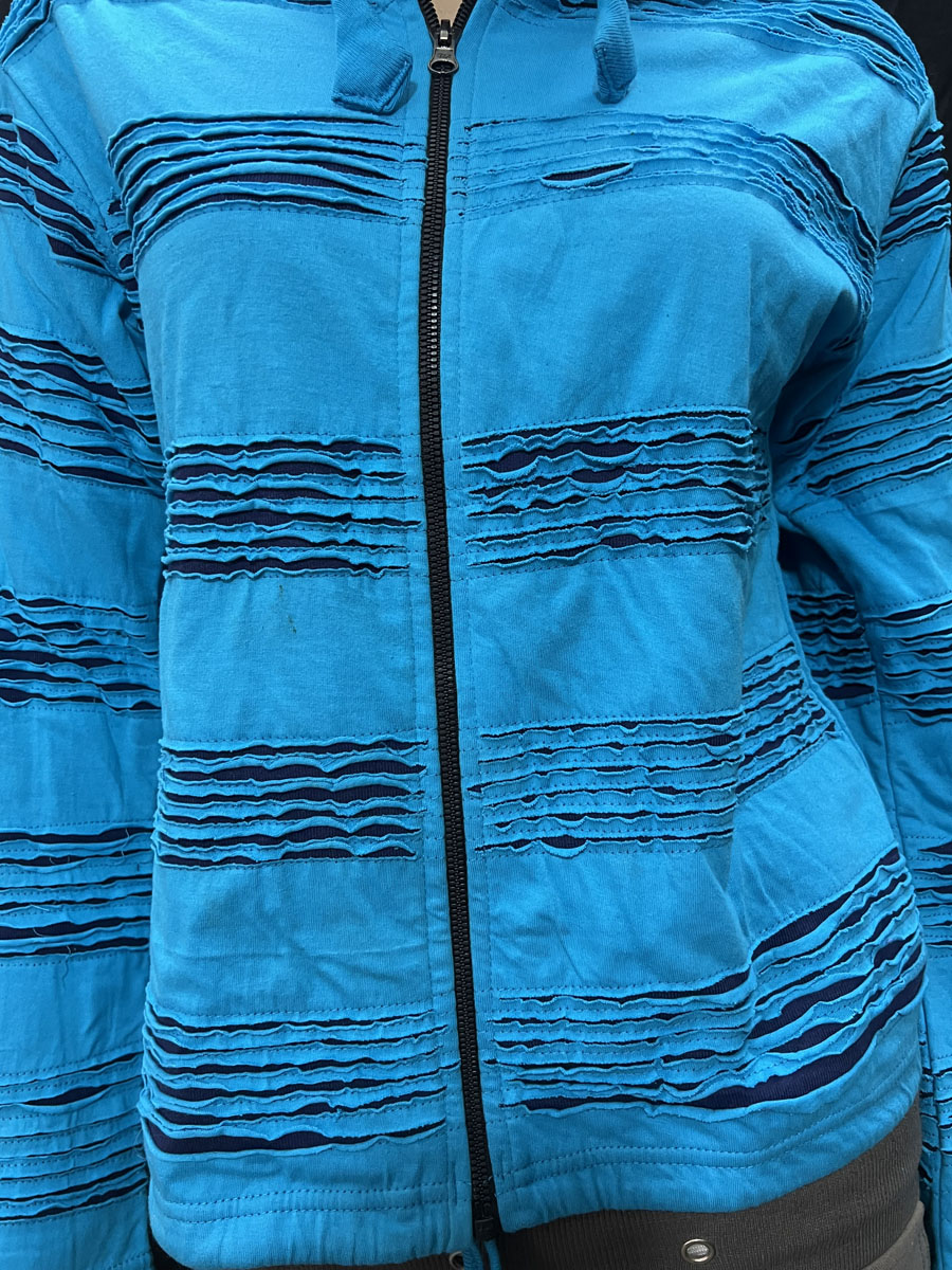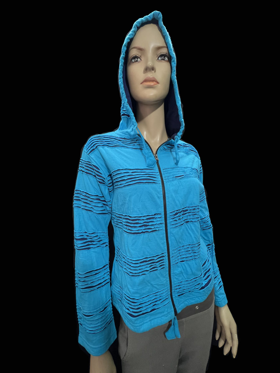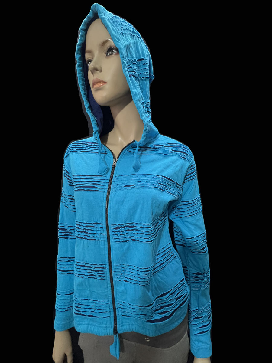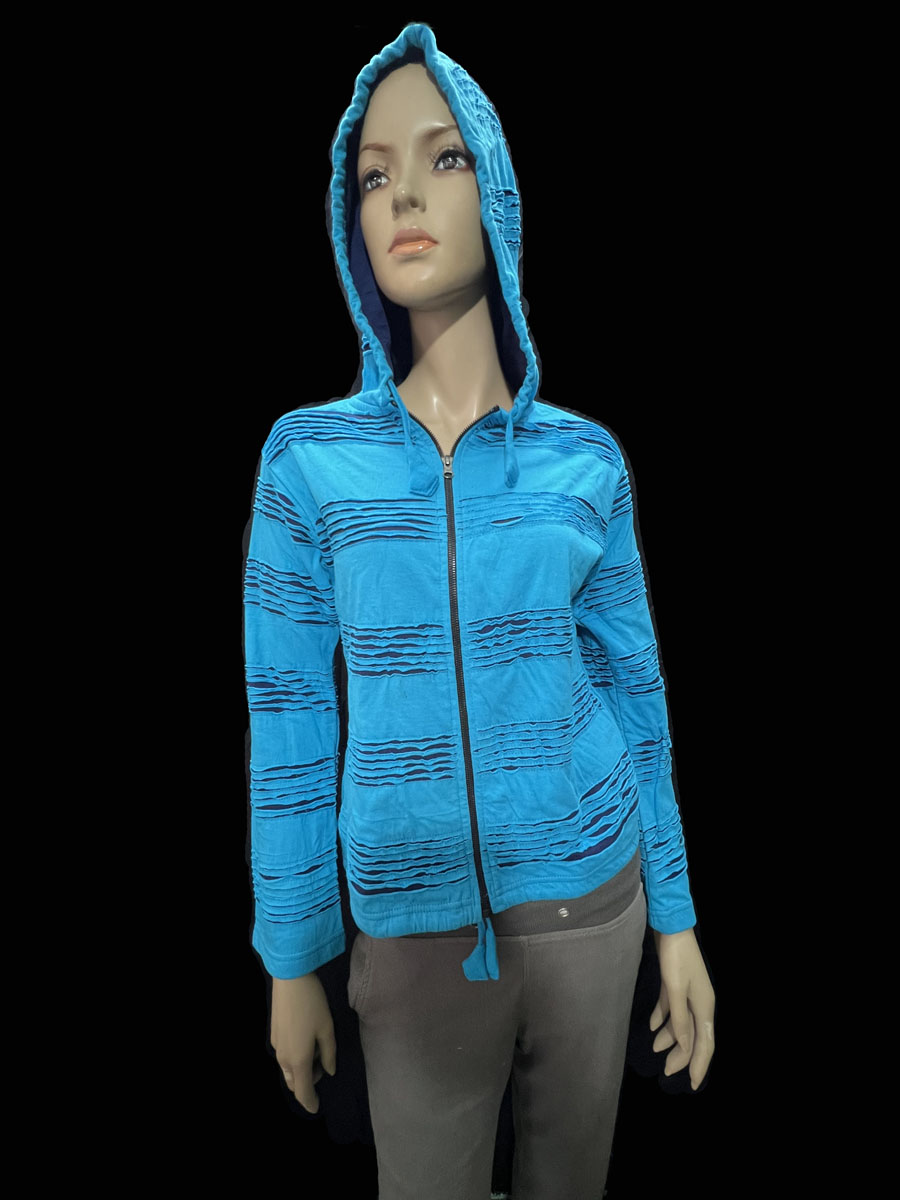 This is a brand new (with tag) garment 100% cotton handloom hooded Jacket from Nepal. This is a winter hoodie having zipper in the front and two pockets with long sleeves with fleece. It has drawstrings at the hood which looks very classic and stylish. We can use it as casual wear in the winter.