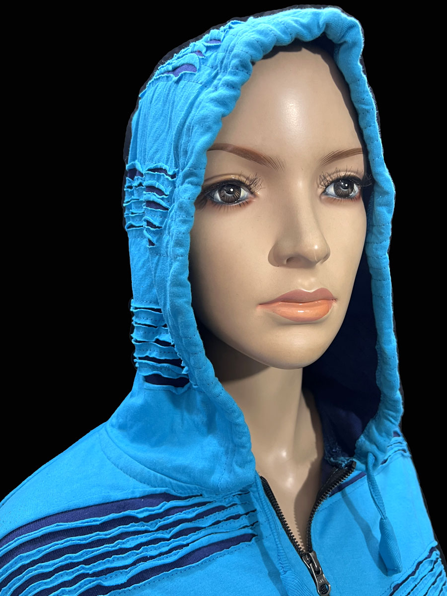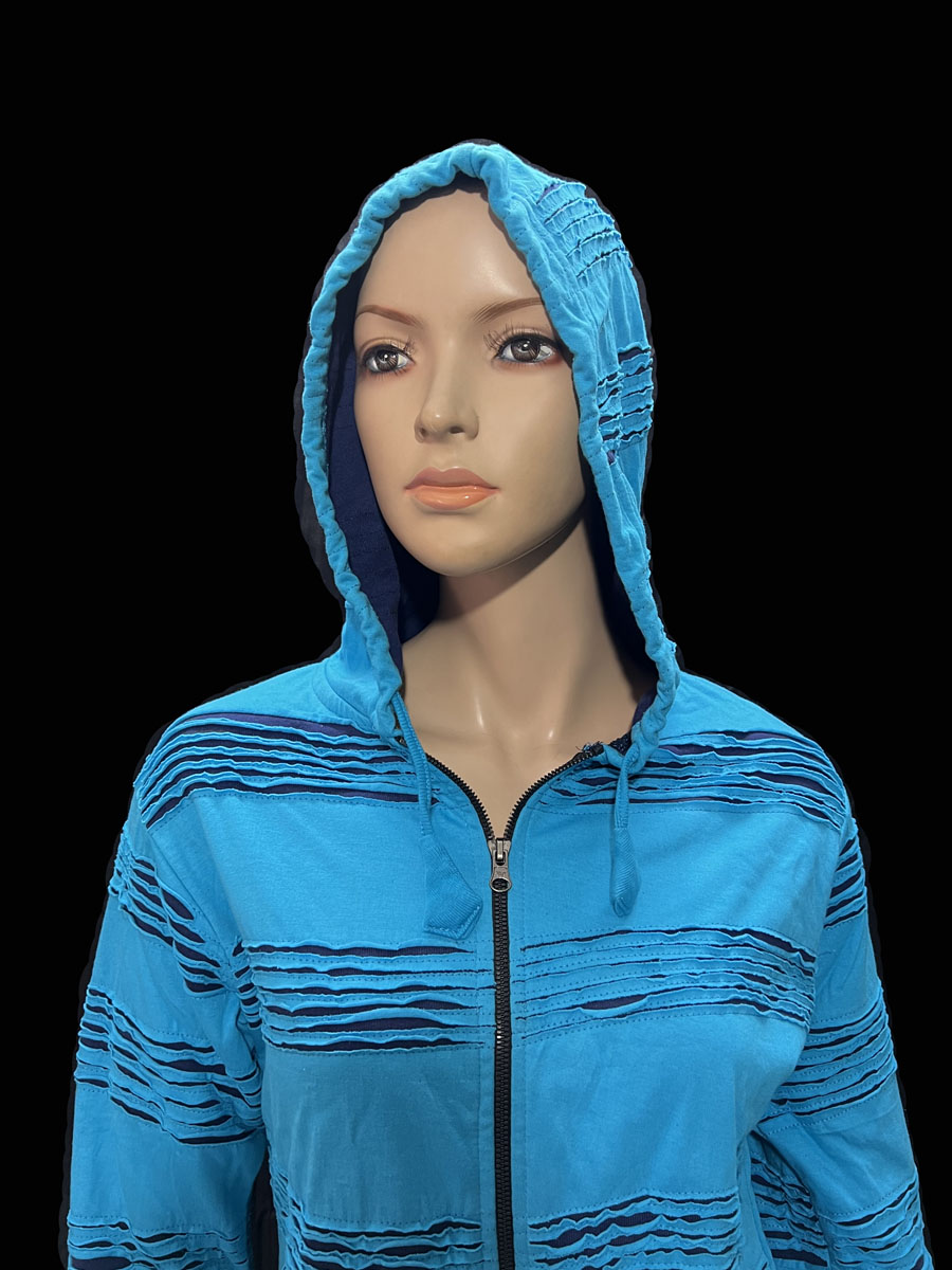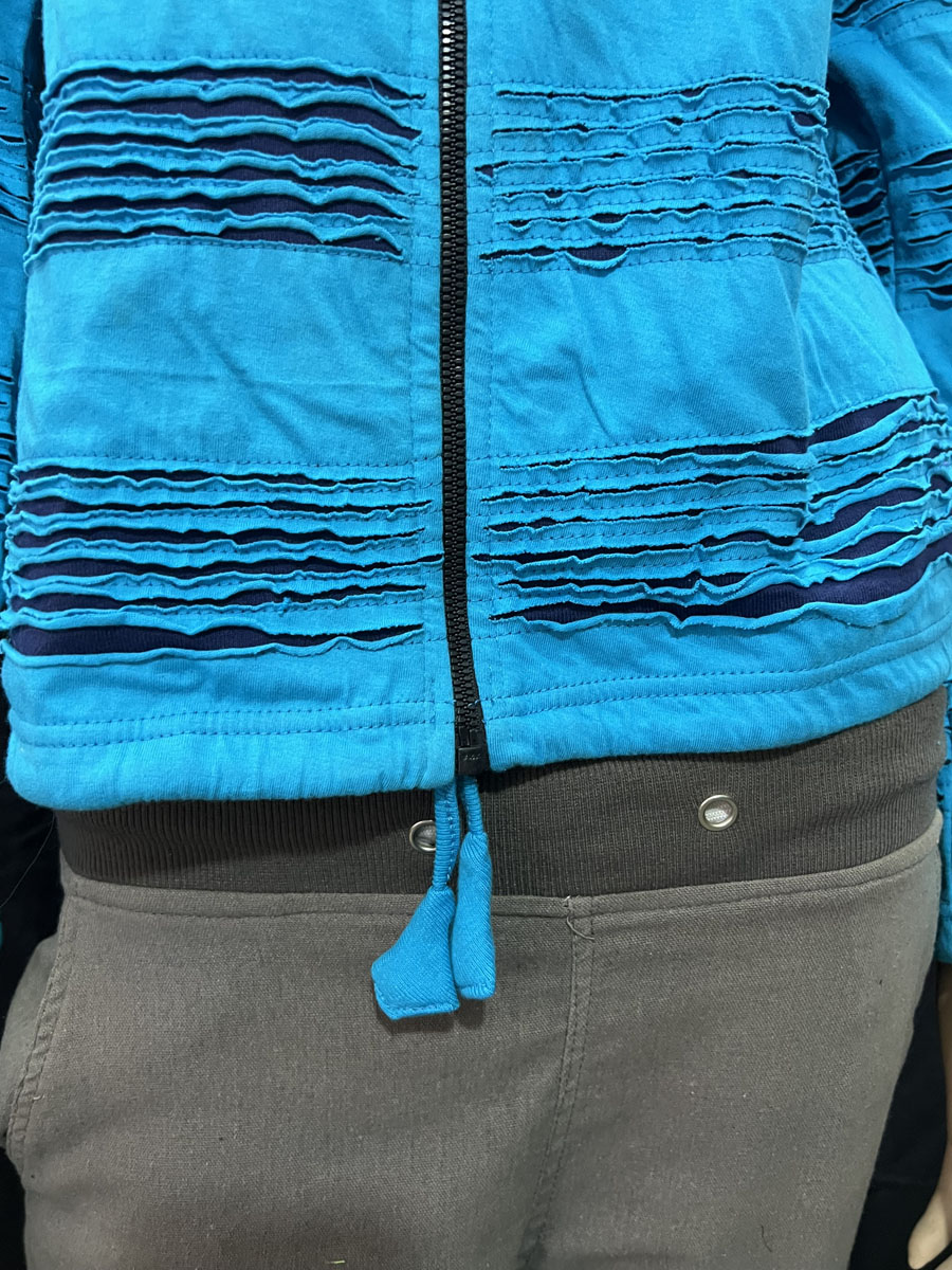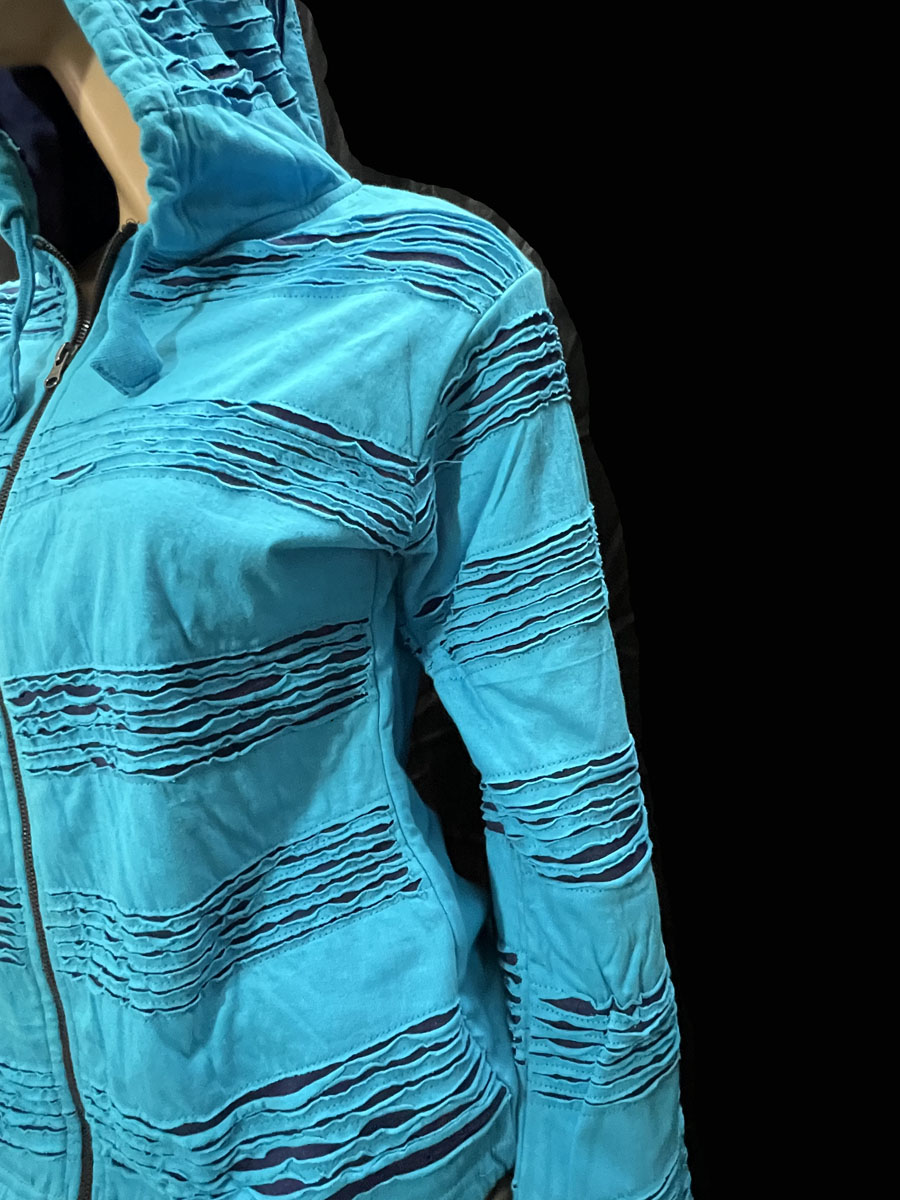 This is a brand new (with tag) garment 100% cotton handloom hooded Jacket from Nepal. This is a winter hoodie having zipper in the front and two pockets with long sleeves with fleece. It has drawstrings at the hood which looks very classic and stylish. We can use it as casual wear in the winter.