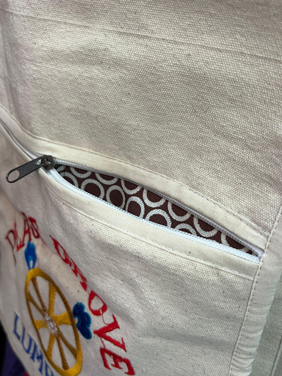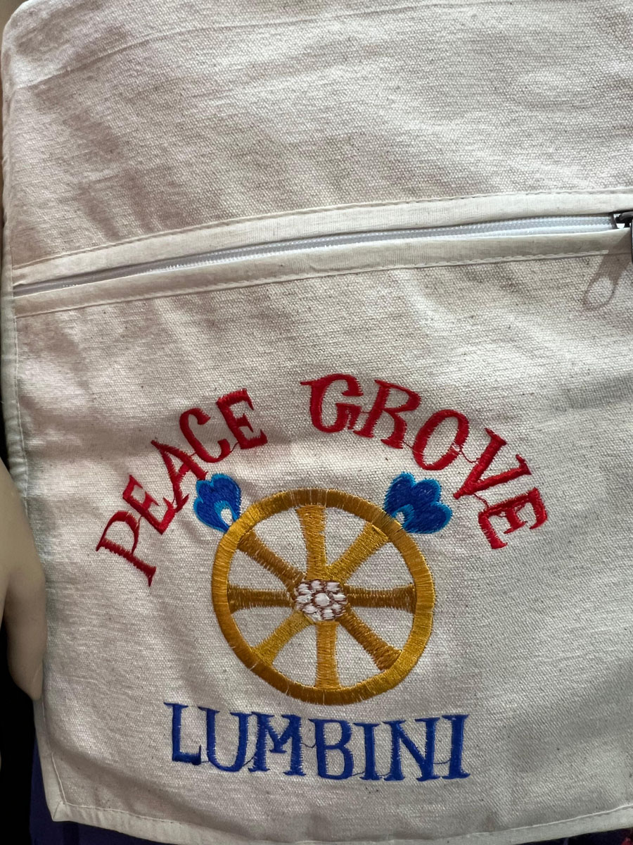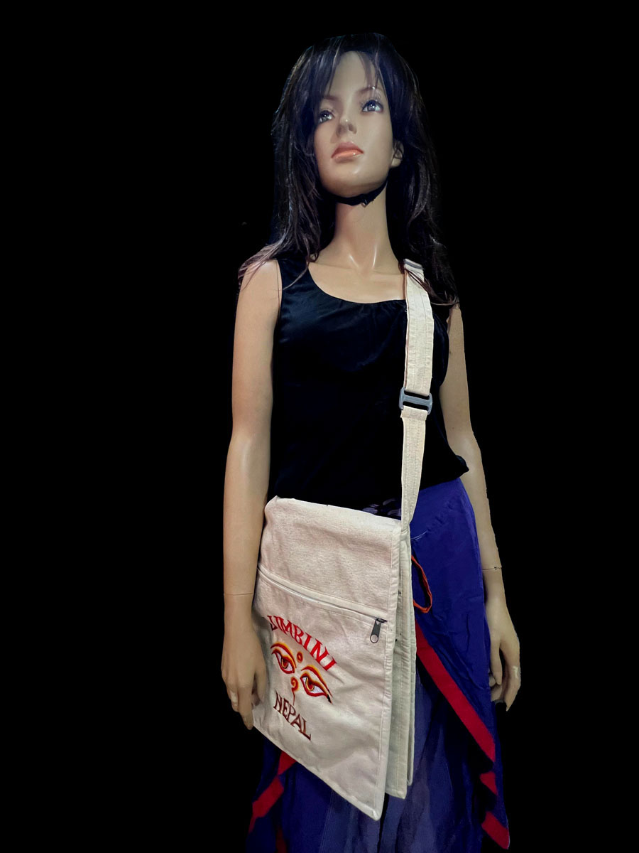 Celebrate peace, heritage, and mindful living with this Handmade Buddha Chakra Sling Bag, crafted in Nepal using 100% handloom cotton. Featuring a vibrant embroidered Peace Grove design symbolizing the Birth of Buddha in Lumbini, it carries the auspicious Dharma Chakra (Wheel of Law)—a sacred Buddhist symbol of harmony and enlightenment.
