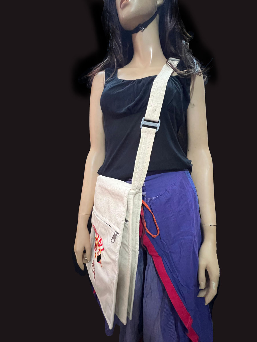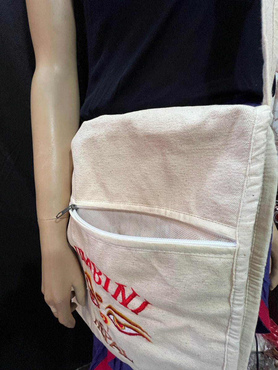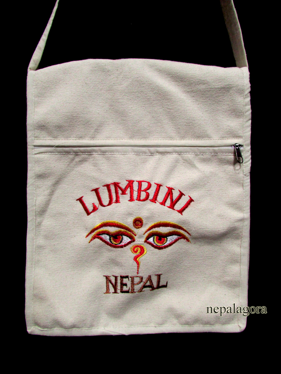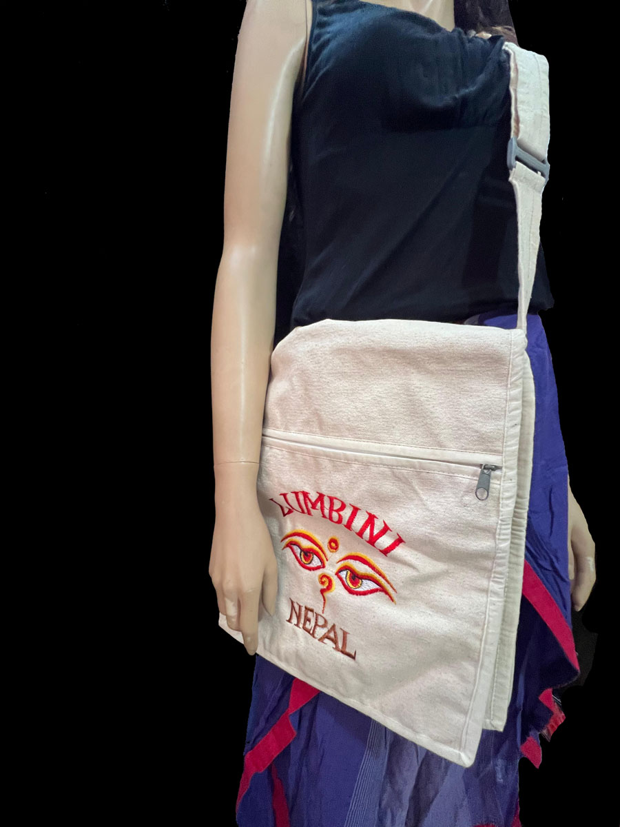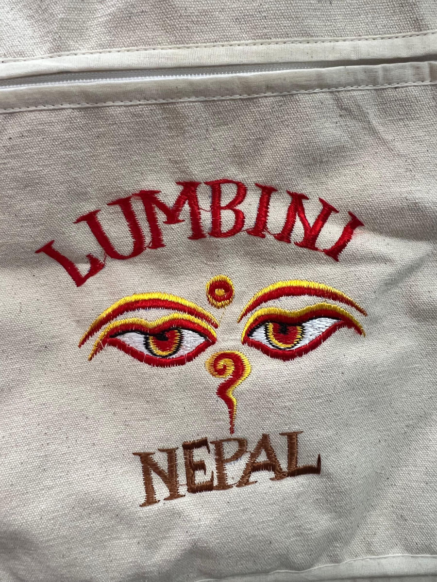 Bring a piece of sacred Nepalese tradition into your everyday life with this stunning handloom cotton bag, embroidered with the symbolic Buddha Eye design. Lovingly handmade in Lumbini, Nepal — the birthplace of Lord Buddha — this bag is a meaningful and functional accessory for spiritual seekers, travelers, and lovers of unique craftsmanship.