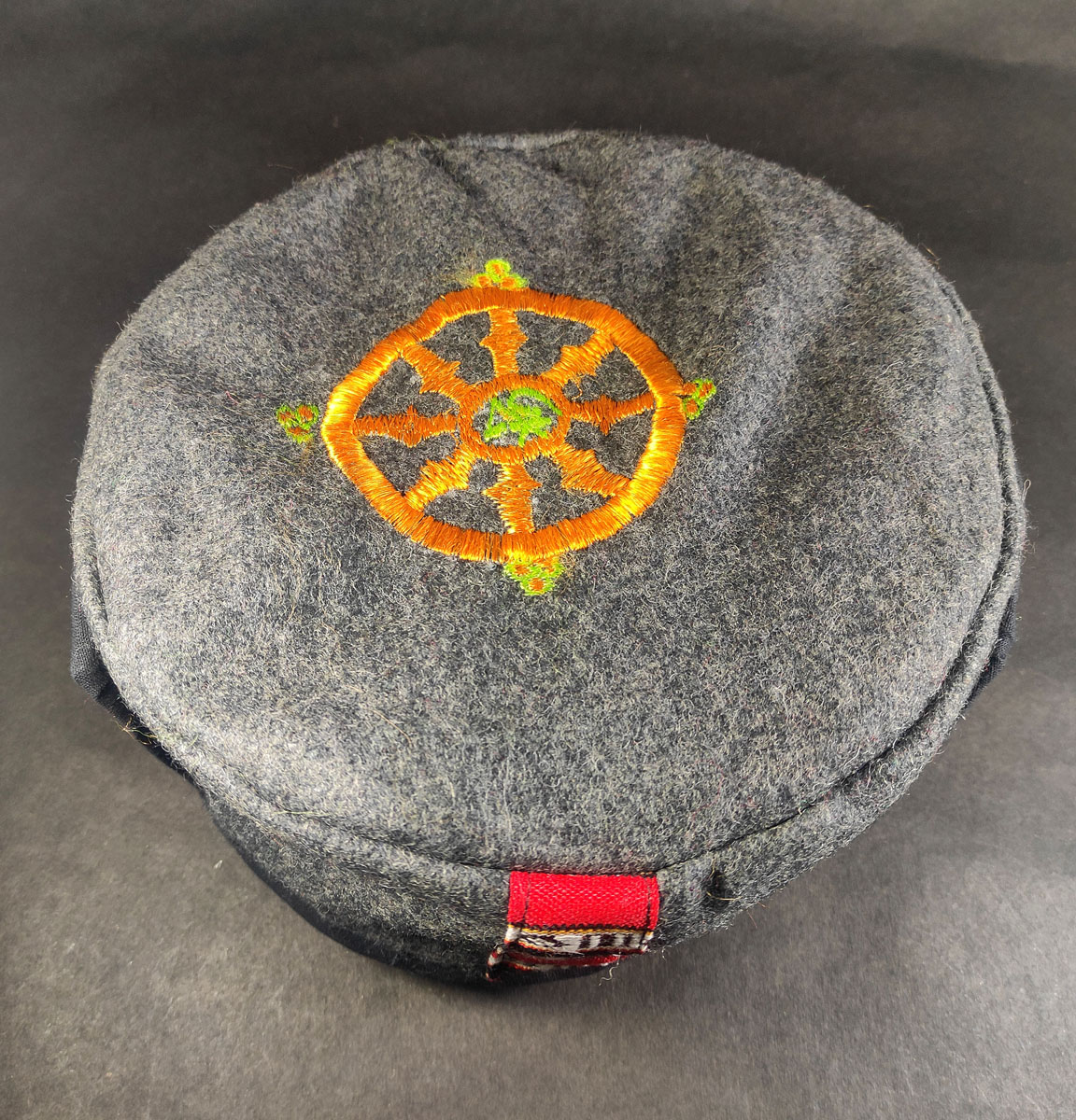 The traditional Sherpa cap from Nepal is a iconic and warm accessory worn by the Sherpa people, who are indigenous to the Himalayan region. The cap is made from wool or yak hair, and is designed to keep the wearer's head and ears warm in the cold climate of the high mountains. The cap typically features a rounded shape with a pom-pom on top, and is often adorned with colorful tassels or embroidery. The Sherpa cap is not only a functional piece of clothing, but also a symbol of cultural heritage and identity for the Sherpa people, who are known for their expertise in mountaineering and their ability to thrive in the harsh conditions of the Himalayas.