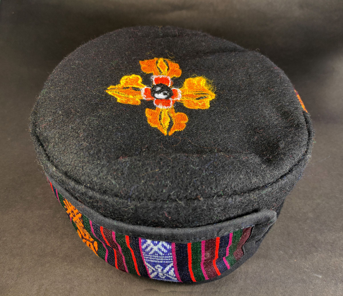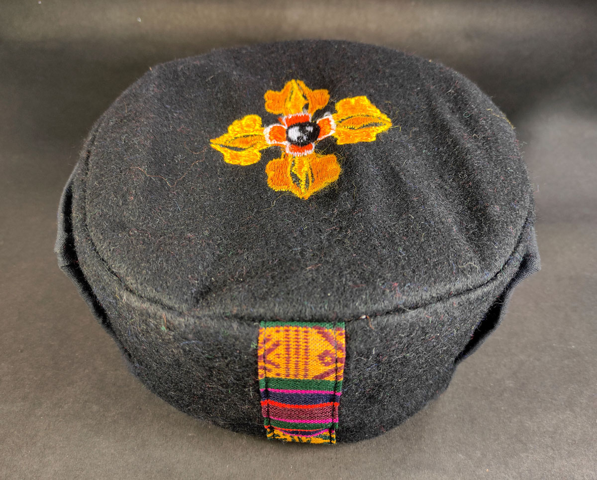 This traditional handmade Sherpa cap from Nepal is a versatile and cozy accessory that combines style and function. The black cotton inner fleece lining provides warmth and comfort, making it perfect for cold weather. Its unique design also allows it to be worn as an ear flap cap, providing additional protection from the elements. With its traditional Nepalese embroidery, this cap is not only functional but also a cultural keepsake, making it a great addition to any outdoor enthusiast's wardrobe.