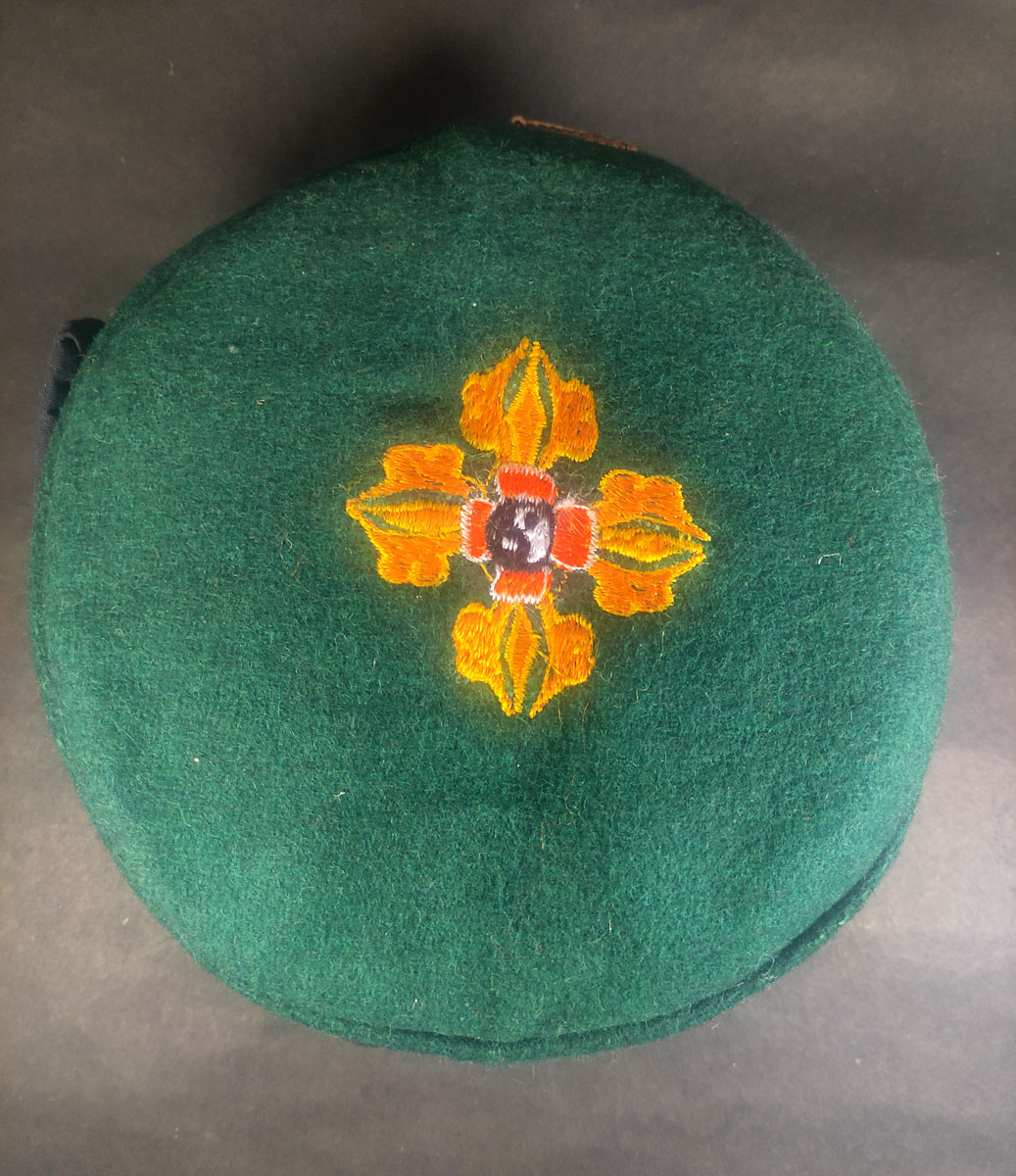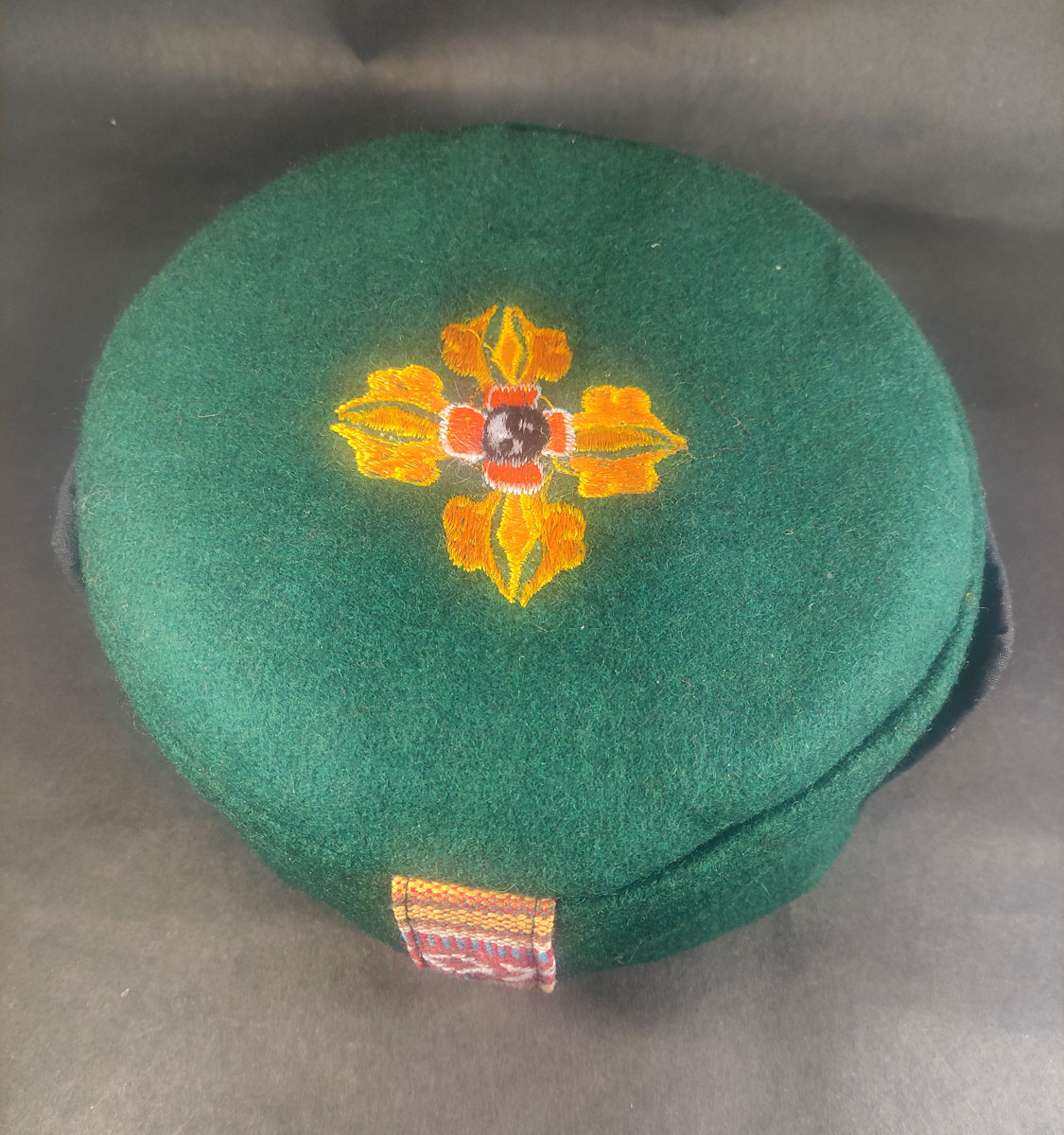 The traditional Sherpa cap from Nepal is a iconic and warm accessory worn by the Sherpa people, who are indigenous to the Himalayan region. The cap is made from wool or yak hair, and is designed to keep the wearer's head and ears warm in the cold climate of the high mountains. The cap typically features a rounded shape with a pom-pom on top, and is often adorned with colorful tassels or embroidery. The Sherpa cap is not only a functional piece of clothing, but also a symbol of cultural heritage and identity for the Sherpa people, who are known for their expertise in mountaineering and their ability to thrive in the harsh conditions of the Himalayas.