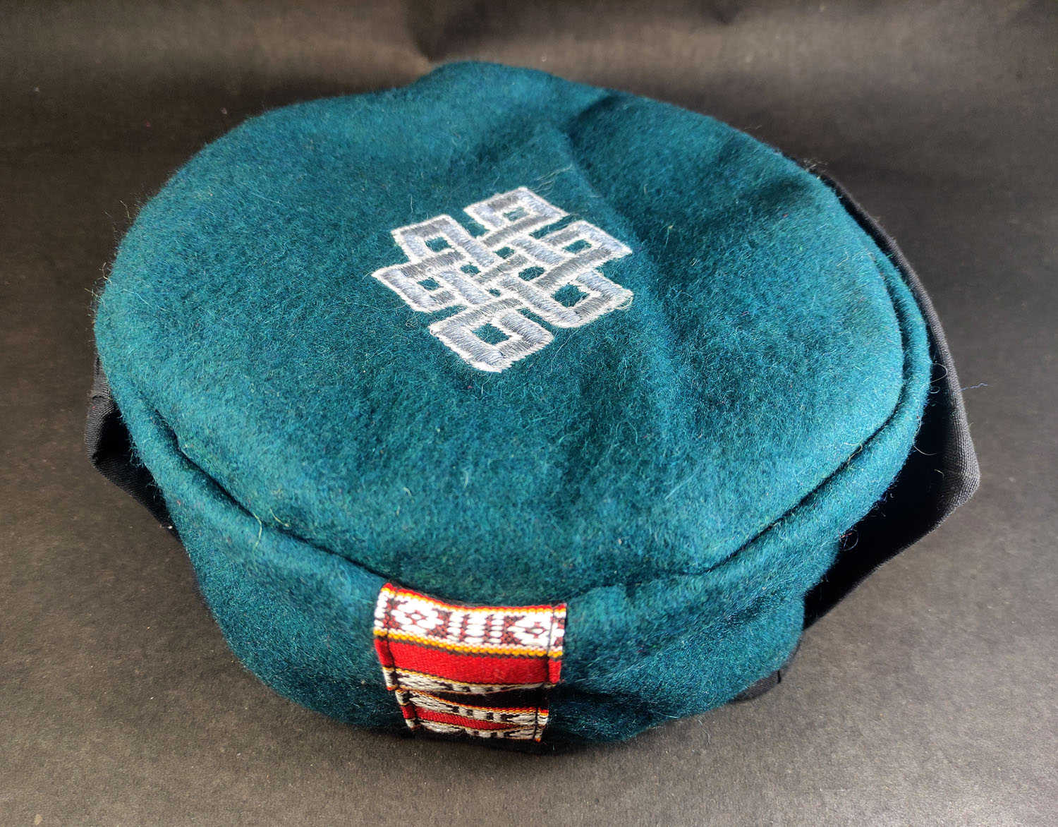 The traditional Sherpa cap from Nepal is a iconic and warm accessory worn by the Sherpa people, who are indigenous to the Himalayan region. The cap is made from wool or yak hair, and is designed to keep the wearer's head and ears warm in the cold climate of the high mountains. The cap typically features a rounded shape with a pom-pom on top, and is often adorned with colorful tassels or embroidery. The Sherpa cap is not only a functional piece of clothing, but also a symbol of cultural heritage and identity for the Sherpa people, who are known for their expertise in mountaineering and their ability to thrive in the harsh conditions of the Himalayas.