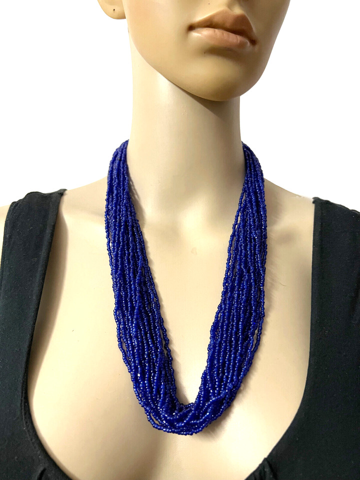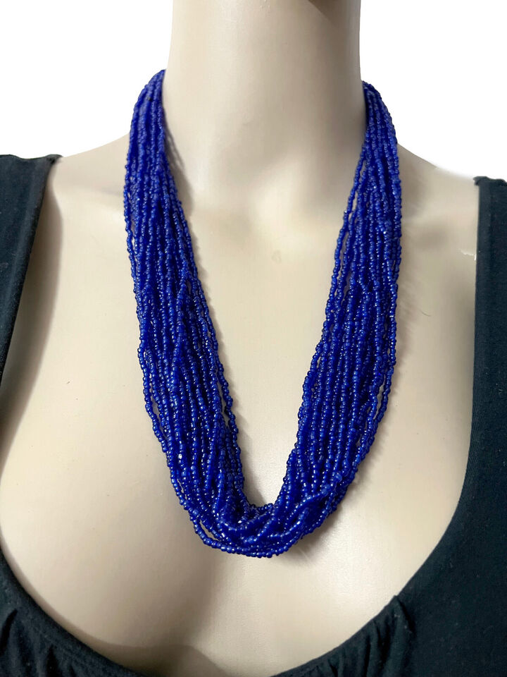 This is a beautiful ethnic 20 multi strand glass beads with black cotton cord necklace (Brand new) from India.