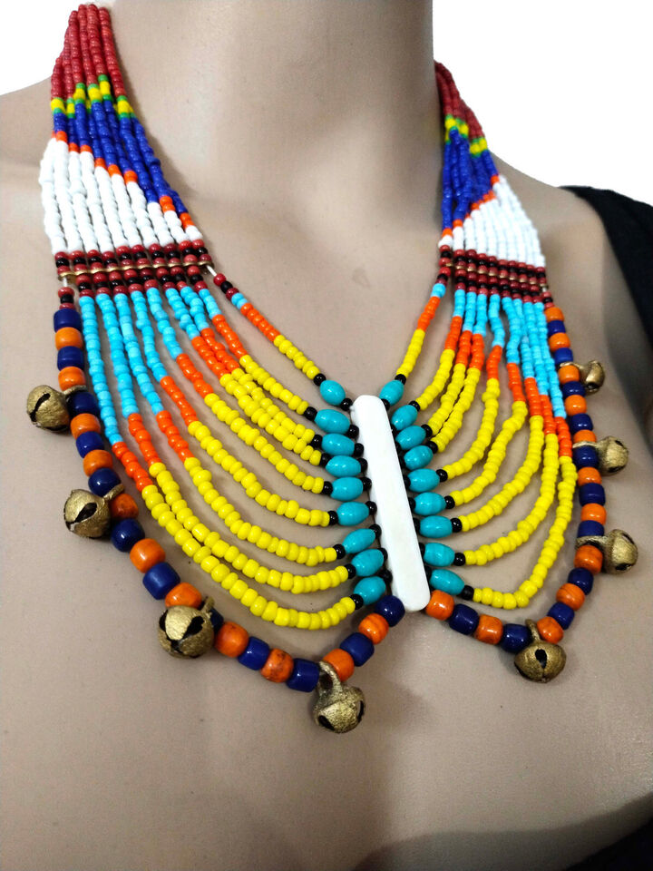 This is a gorgeous multi color design 10 multi strand Necklace worn by Tibetan/Tharu/Naga peoples from India/Tibet/Nepal.