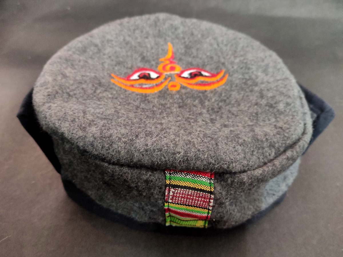 The traditional Sherpa cap from Nepal is a iconic and warm accessory worn by the Sherpa people, who are indigenous to the Himalayan region. The cap is made from wool or yak hair, and is designed to keep the wearer's head and ears warm in the cold climate of the high mountains. The cap typically features a rounded shape with a pom-pom on top, and is often adorned with colorful tassels or embroidery. The Sherpa cap is not only a functional piece of clothing, but also a symbol of cultural heritage and identity for the Sherpa people, who are known for their expertise in mountaineering and their ability to thrive in the harsh conditions of the Himalayas.