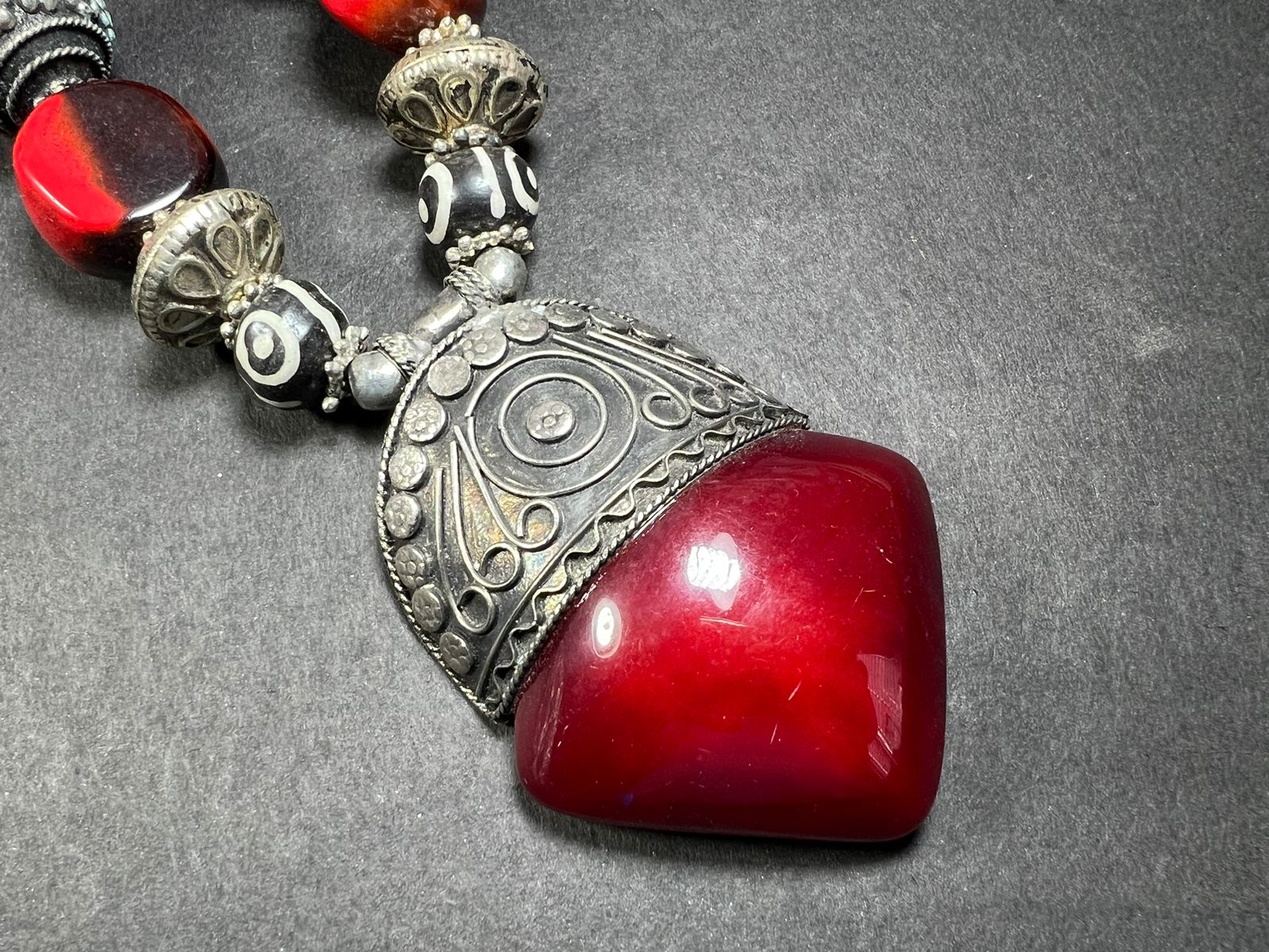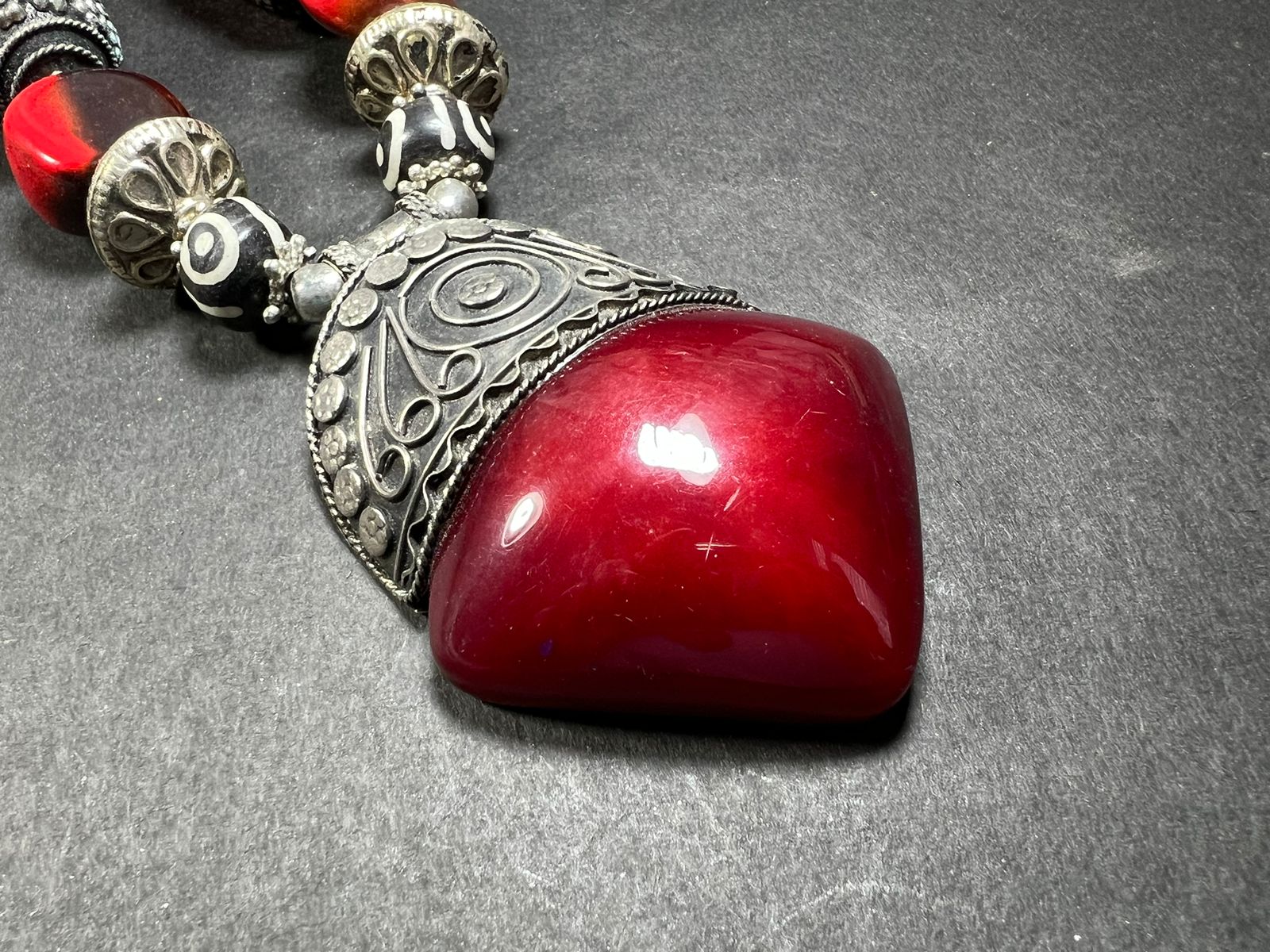 It is an ethnic Naga, Tibetan, Bold Orange color resin Amber look Necklace handmade from Nepal.