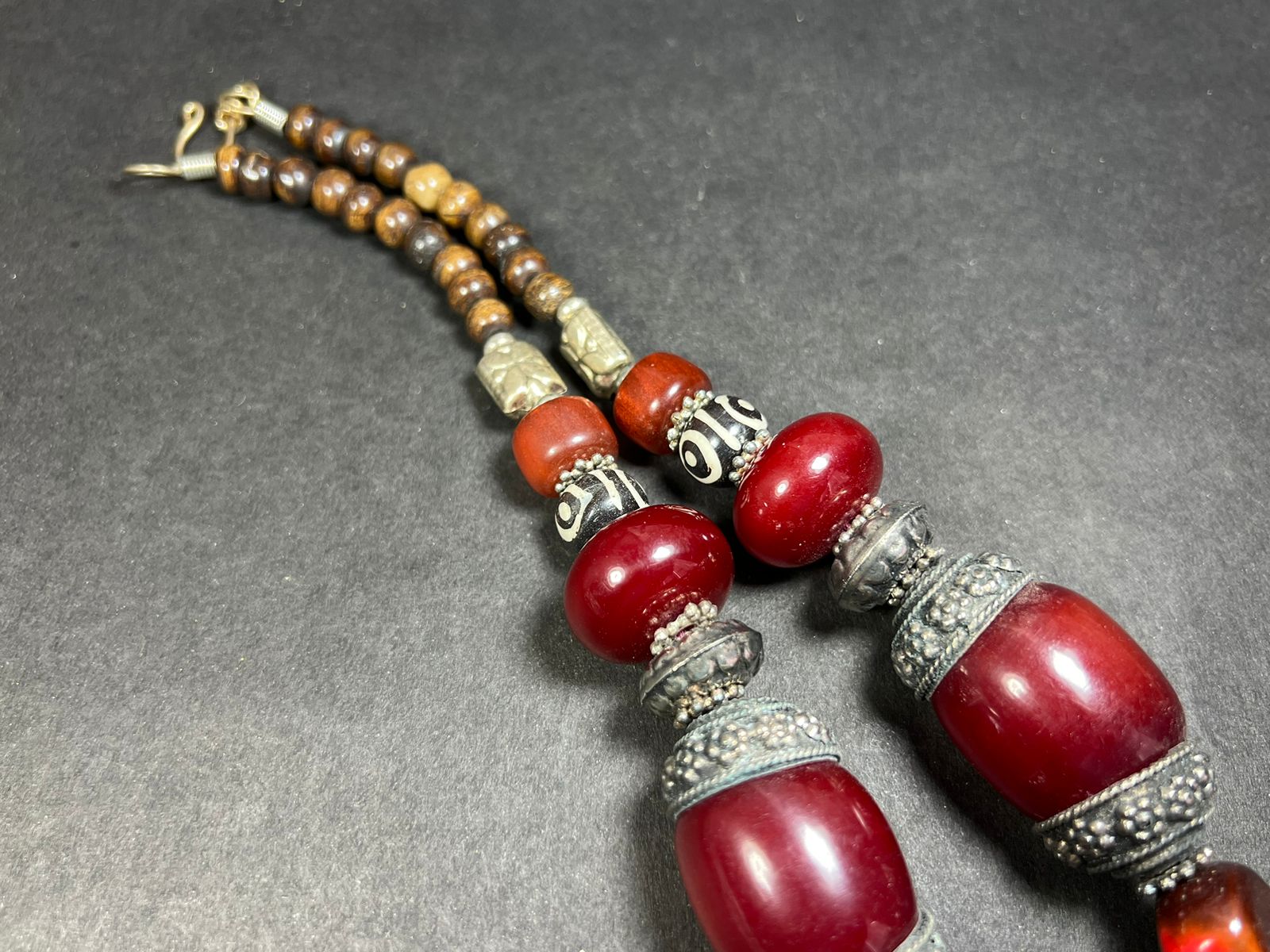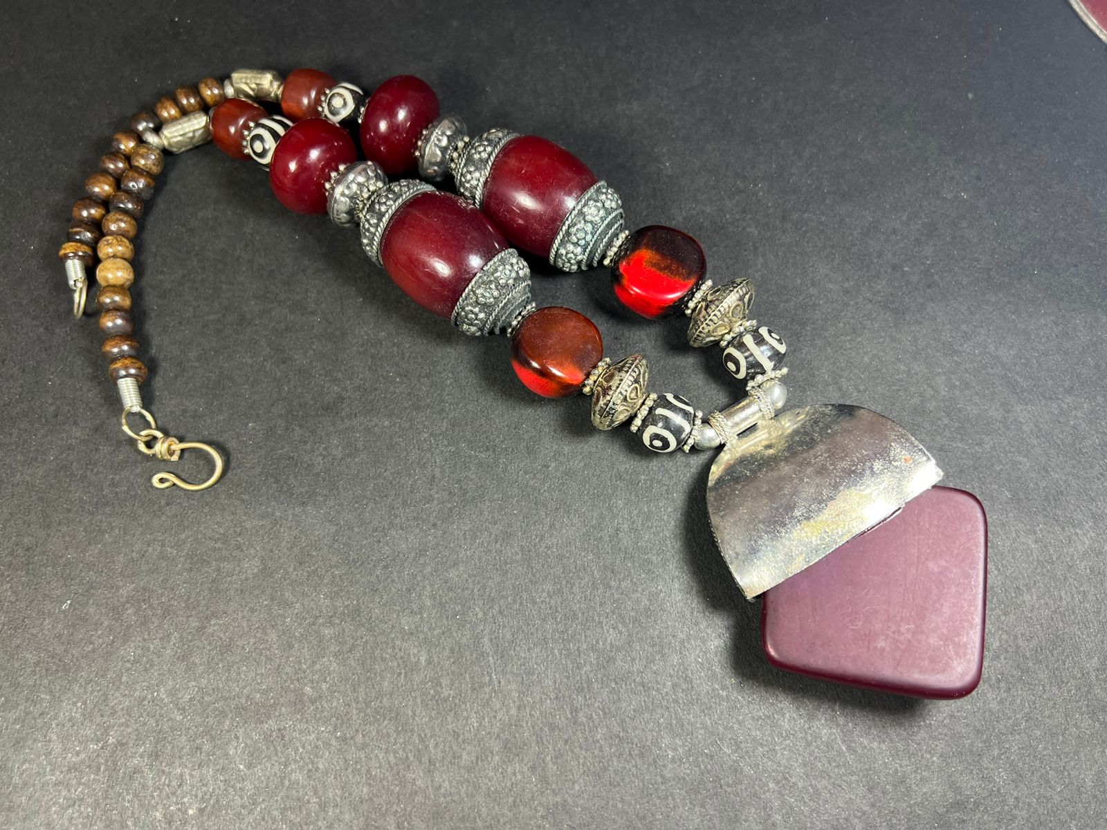 The Cheery amber color resin center piece is about 1.6" Long x 2.1" Wide, Rest beads are about 1.6" x 1", 0.9"x5"