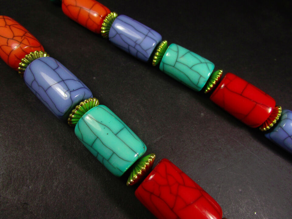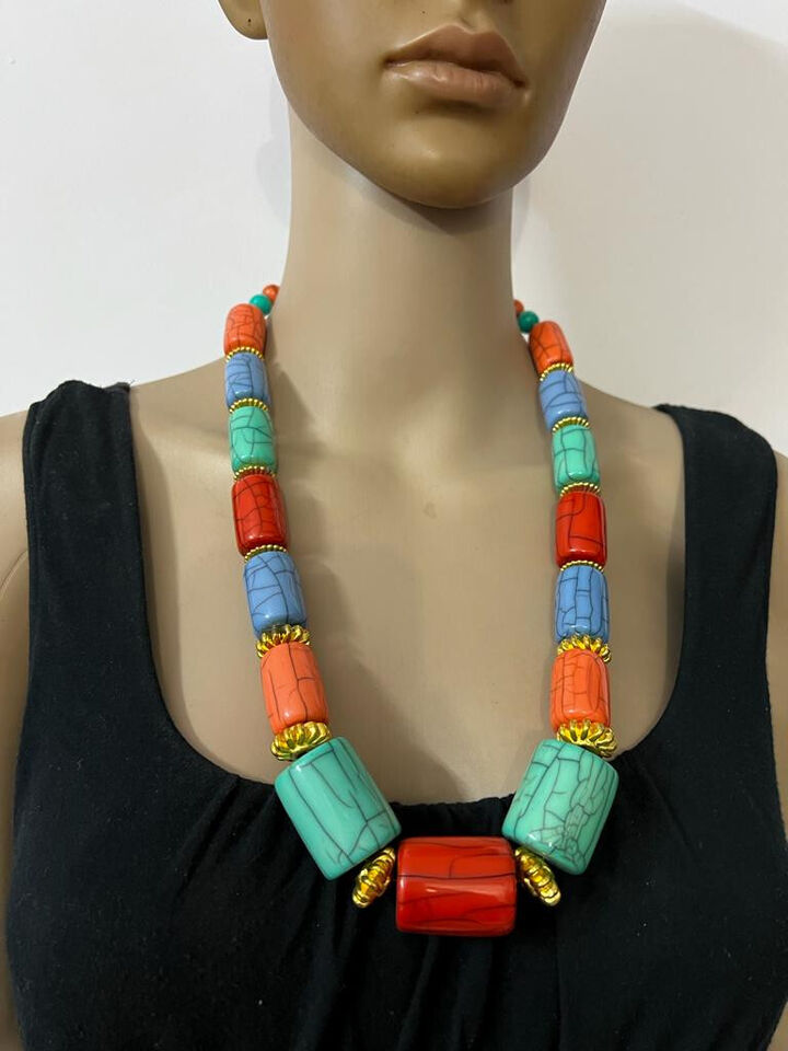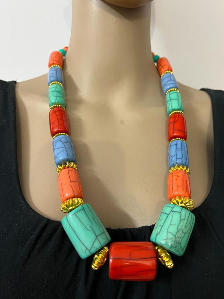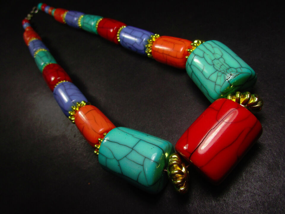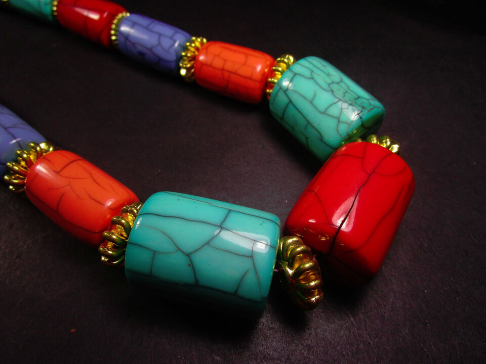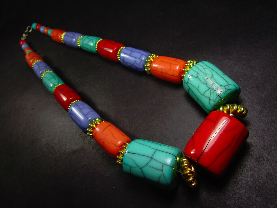 It is an ethnic Tibetan, Bold Multi color resin with brass/silver tone beads Necklace handmade from India.