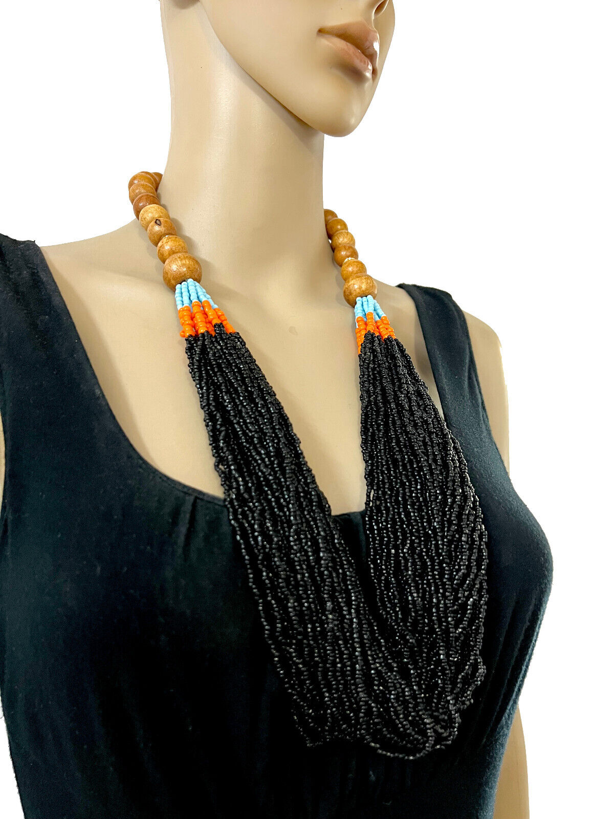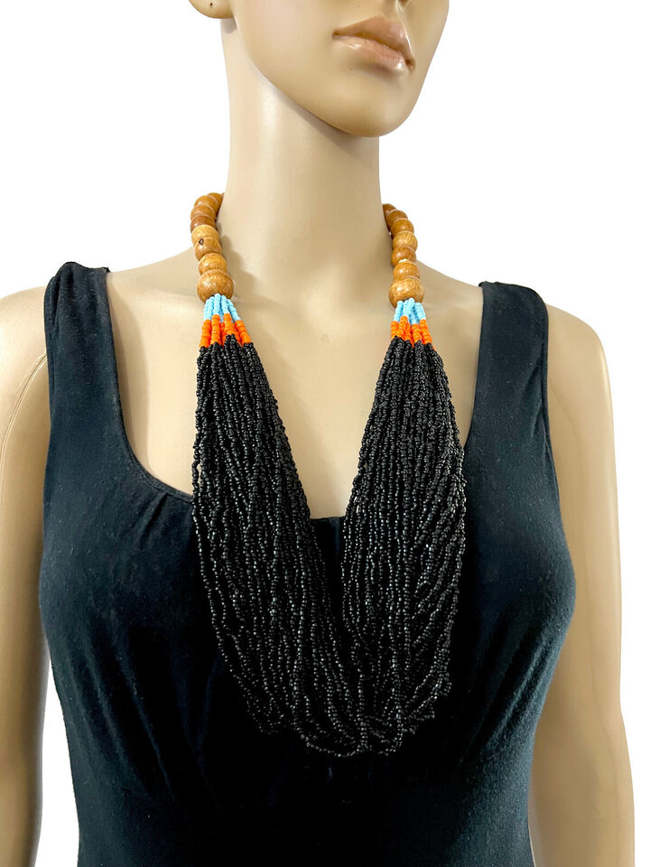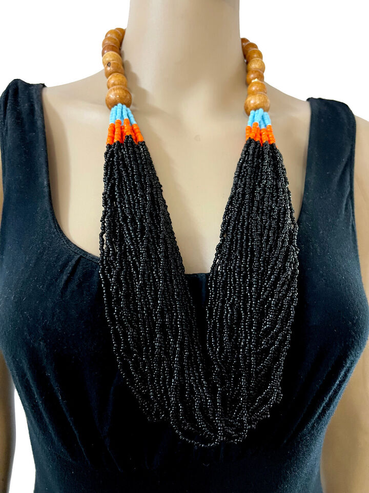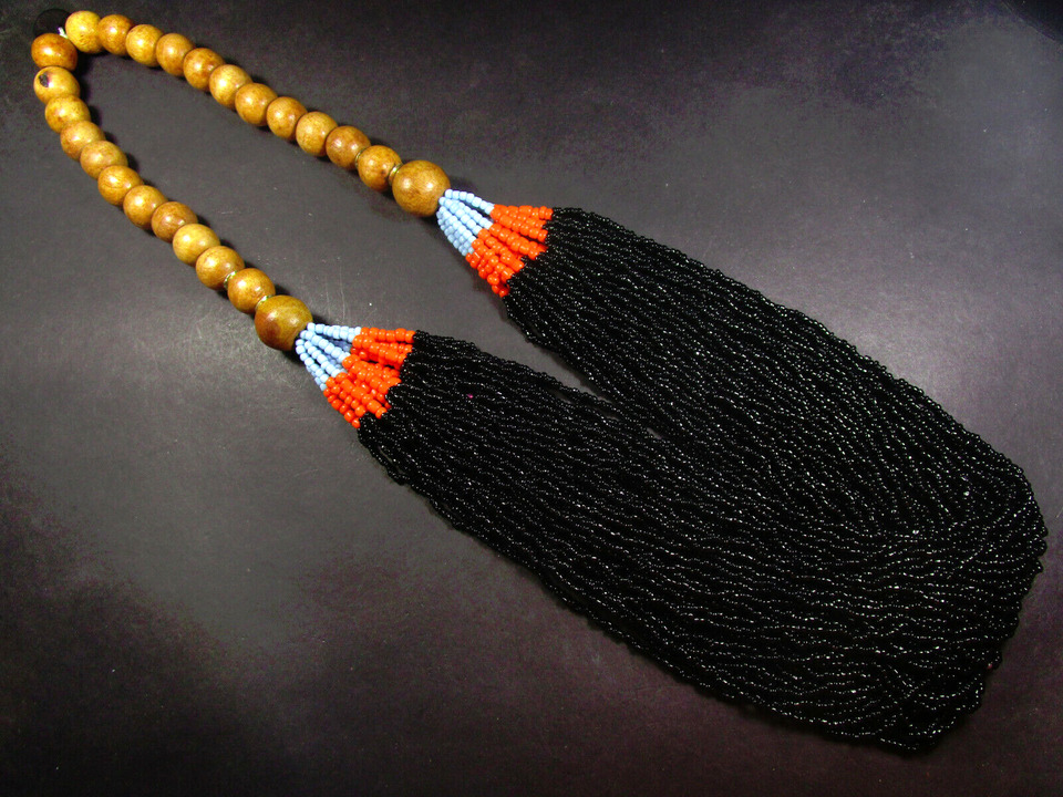 It is an ethnic beautiful tribal, Naga Glass 48 Strands with Wood, Brass tone beads handmade Necklace (Brand new) from India.