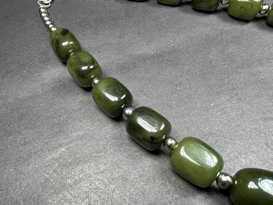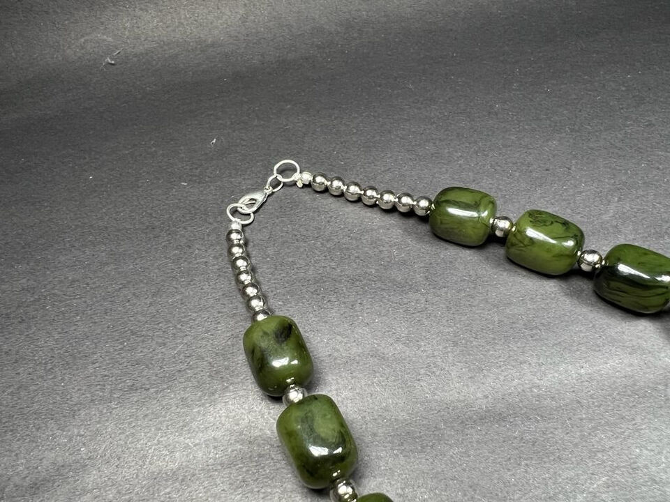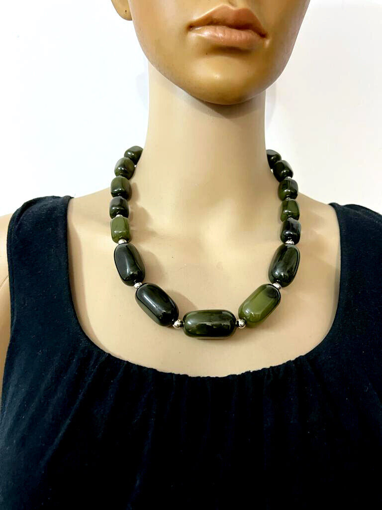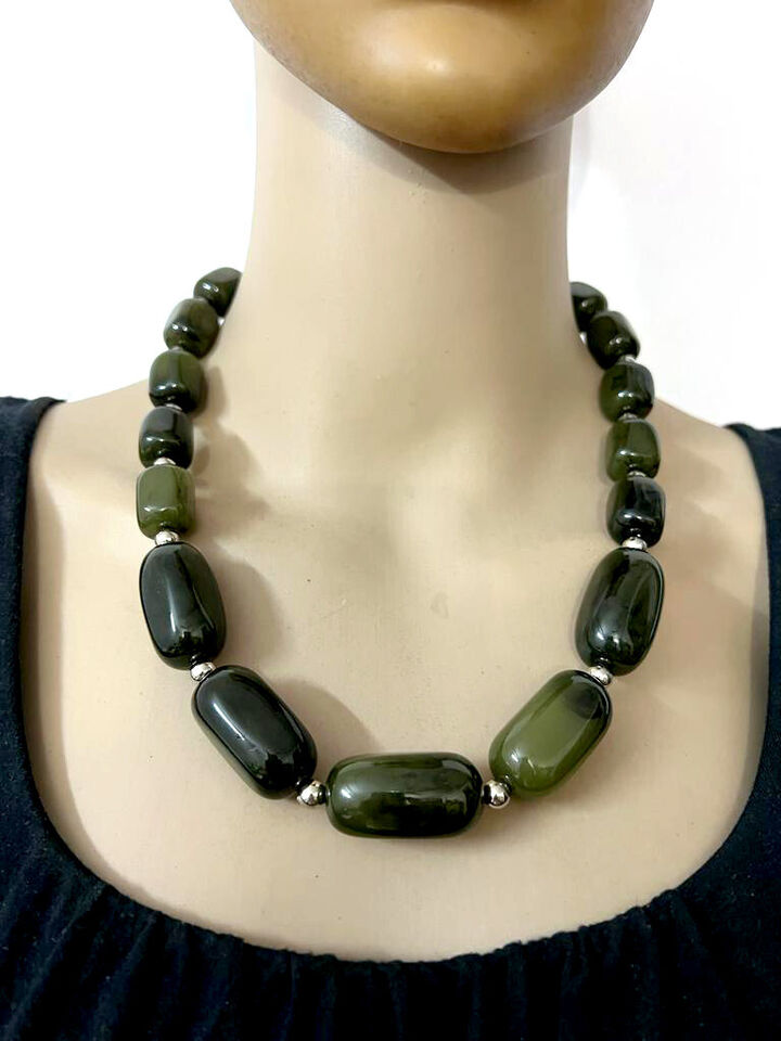 This is a Gorgeous Tibetan Bold Dark Green Resin beads With Silver Tone Beads at the closure Fashionable handmade necklace from India.