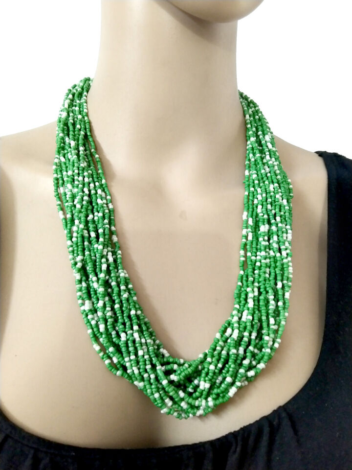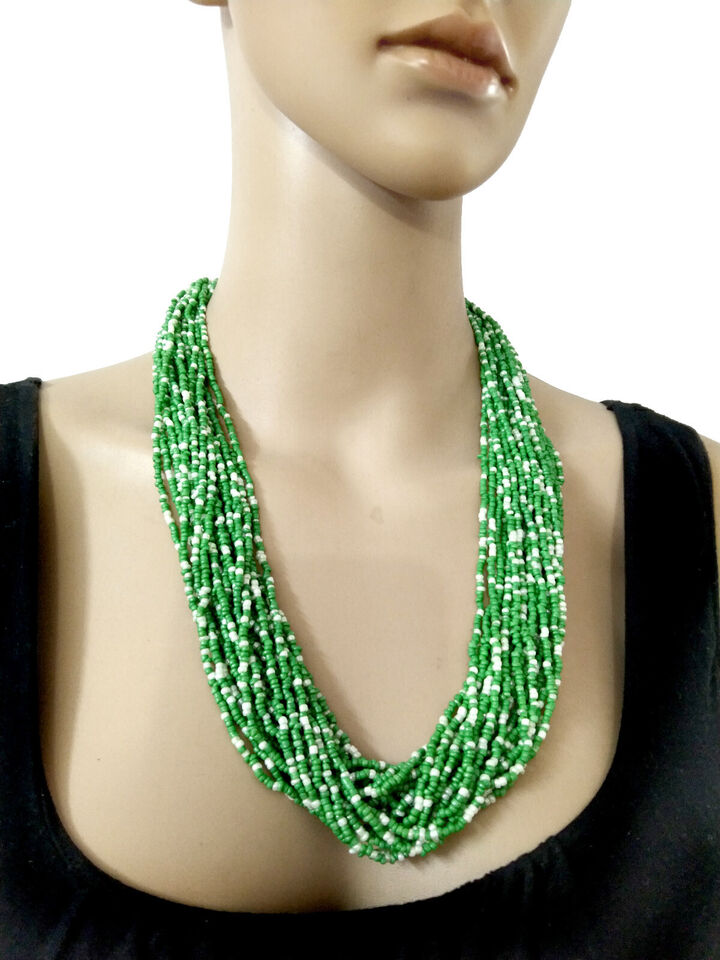 Discover the charm of traditional craftsmanship with this stunning multi-strand necklace, featuring vibrant glass beads and a durable black cotton cord. Handcrafted in India, this ethnic piece embodies the rich artistry of tribal design, offering both cultural significance and modern versatility.
