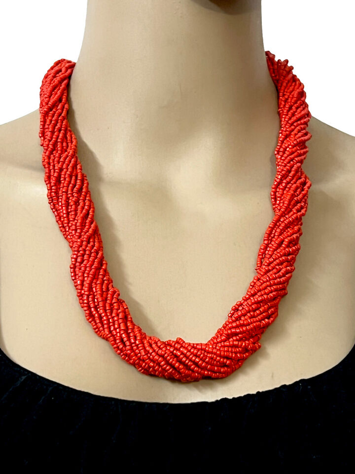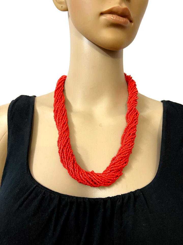 This is a beautiful ethnic 20 multi strand glass beads with red cotton cord necklace (Brand new) from India.