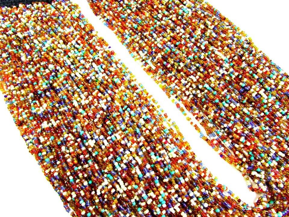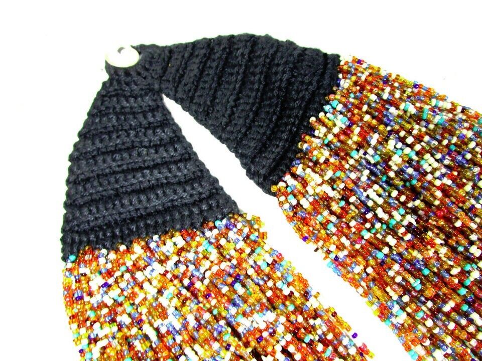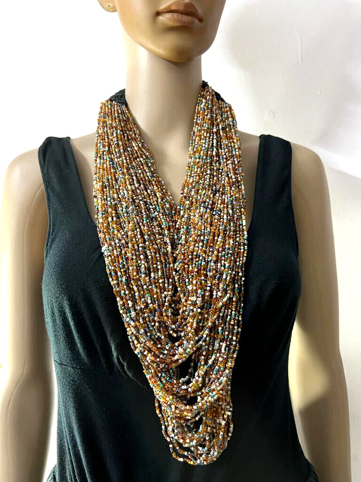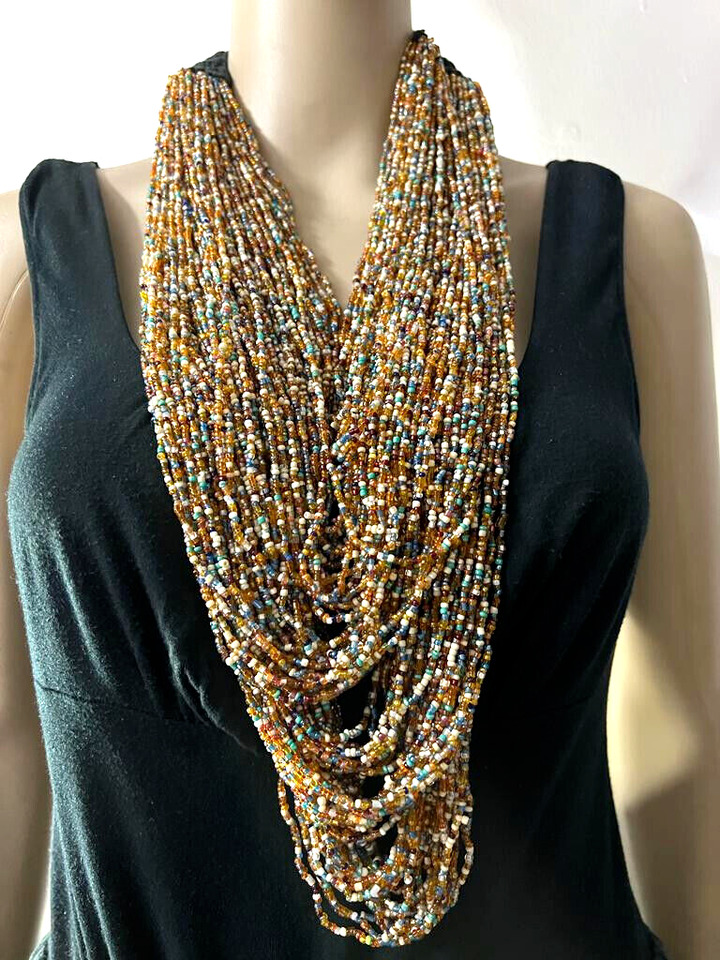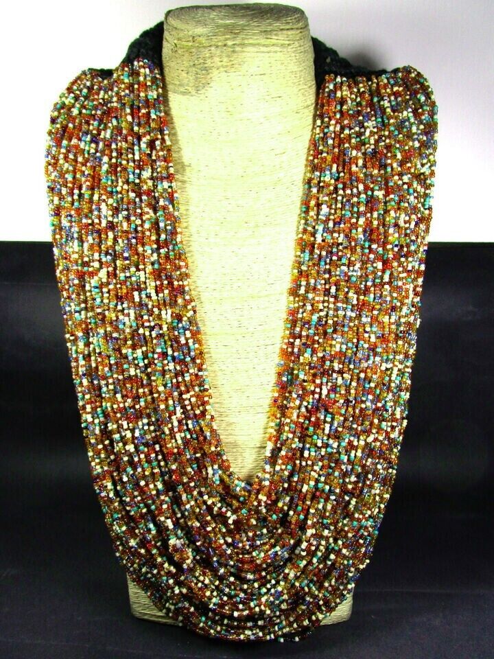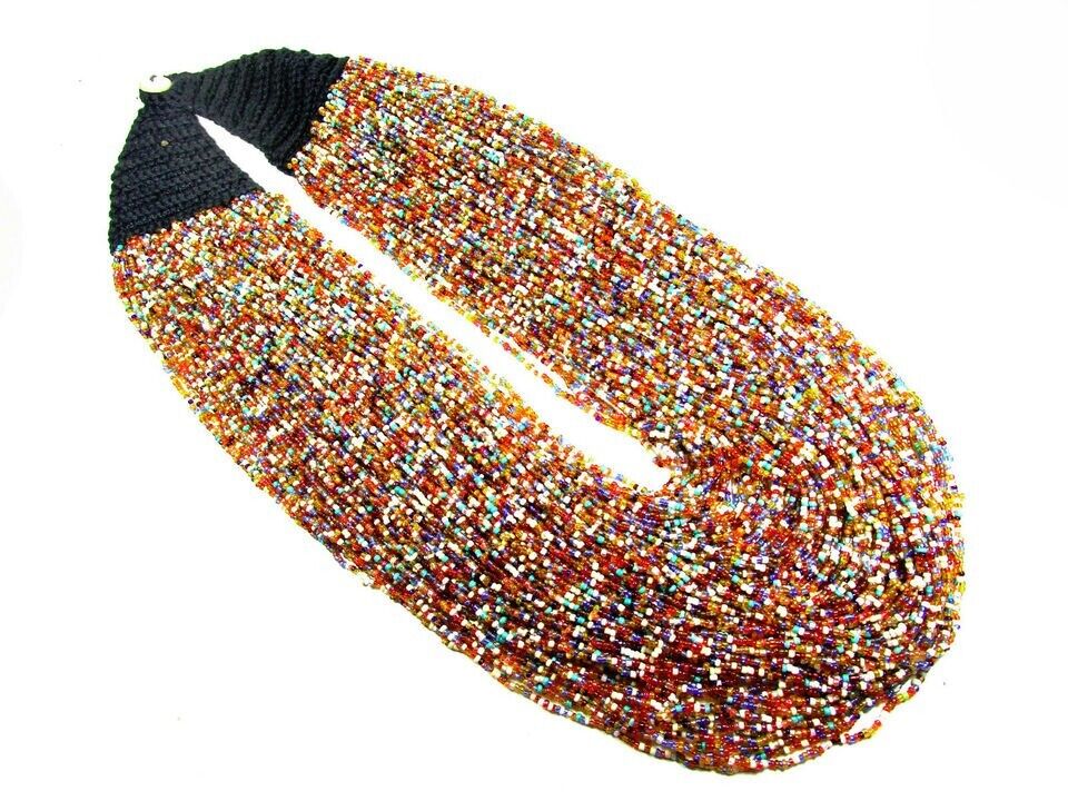 This is a lovely ethnic multi color 100+ strand with cotton cord crochet work necklace (Brand new) from India. The beads are made of Glass.