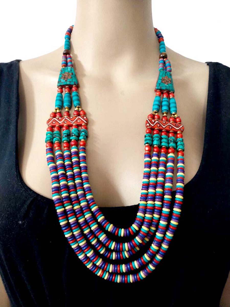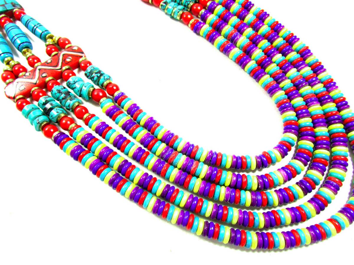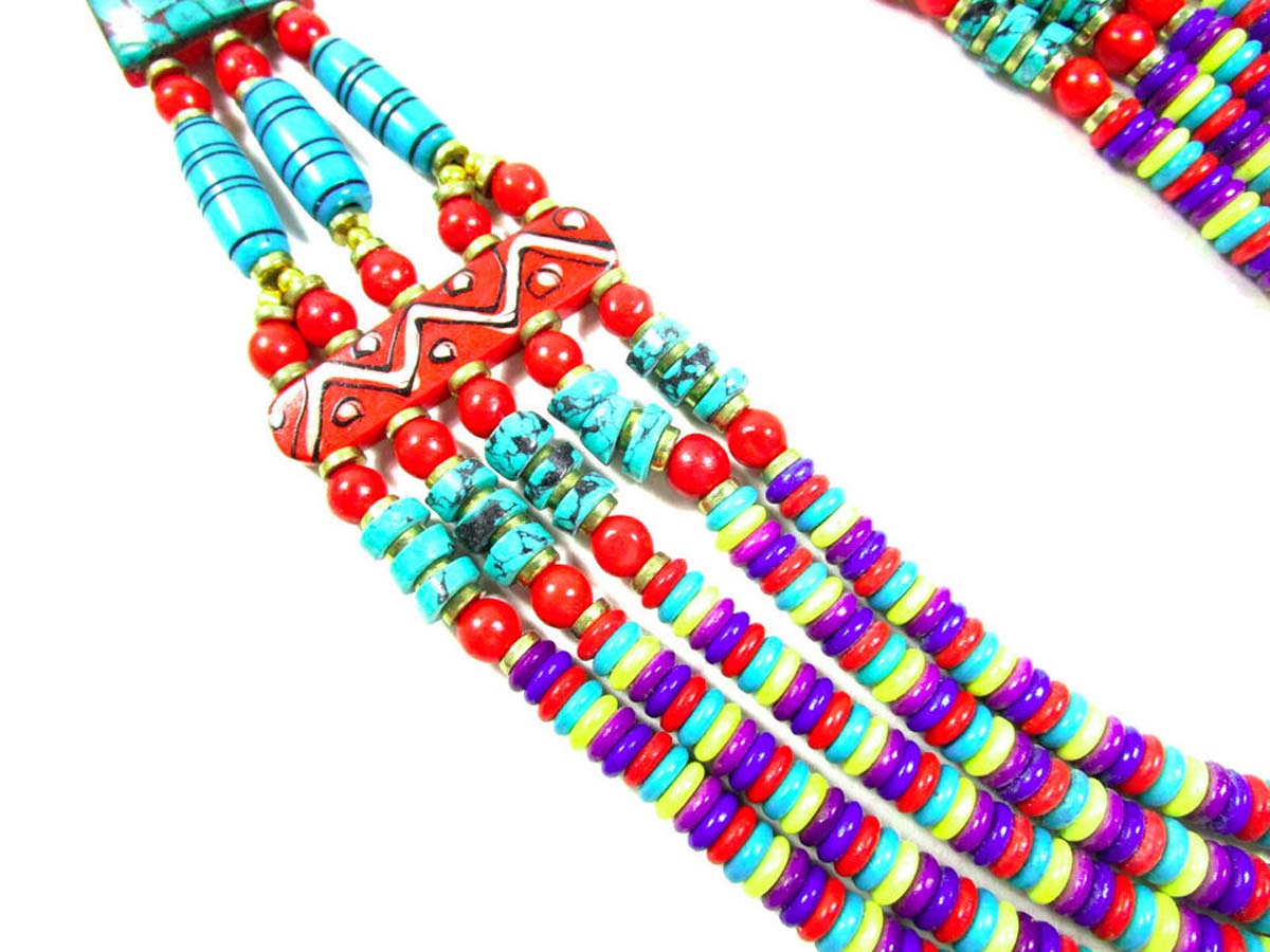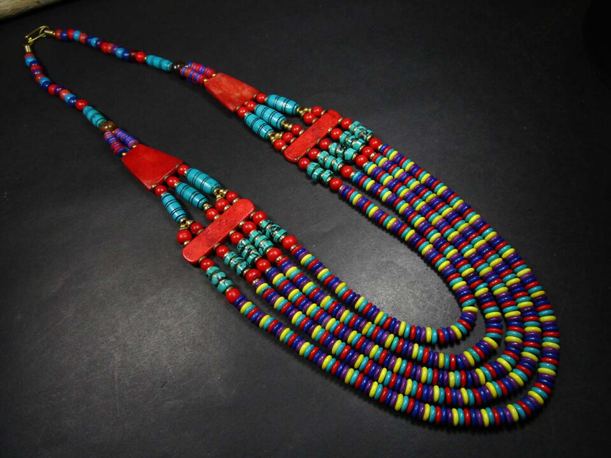 This is a beautiful ethnic 5 multi strand with turquoise resin beads necklace (Brand new) from India. you can wear it as an ethnic tribal piece or use it as a casual jewelry.