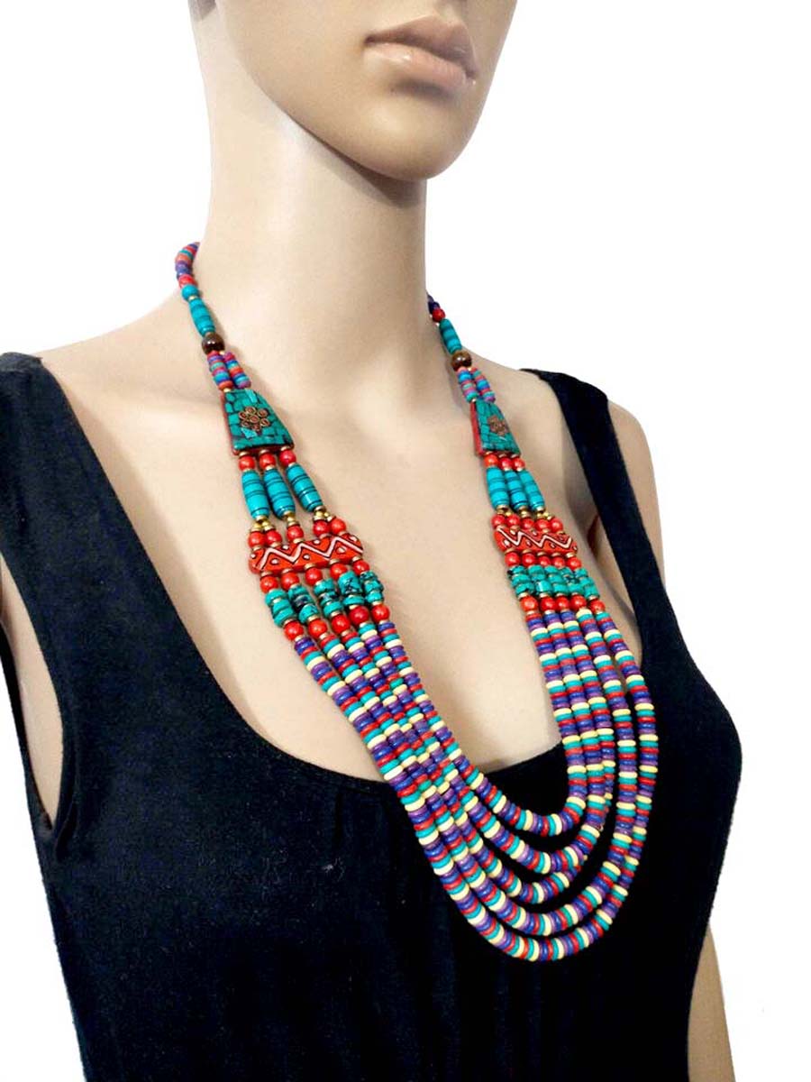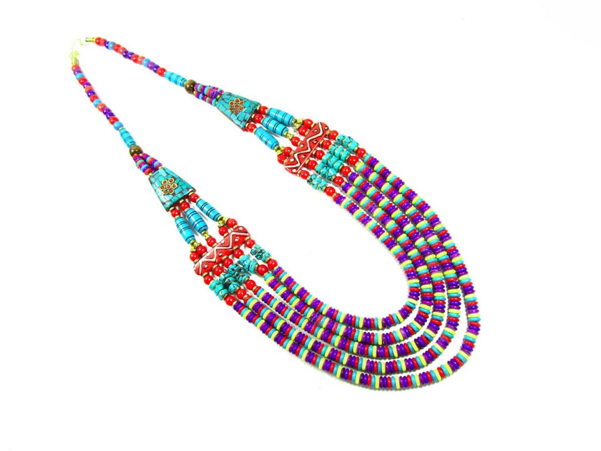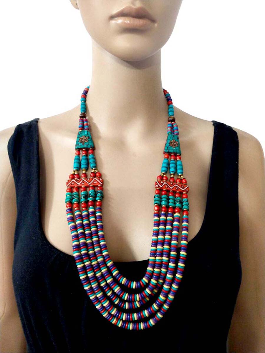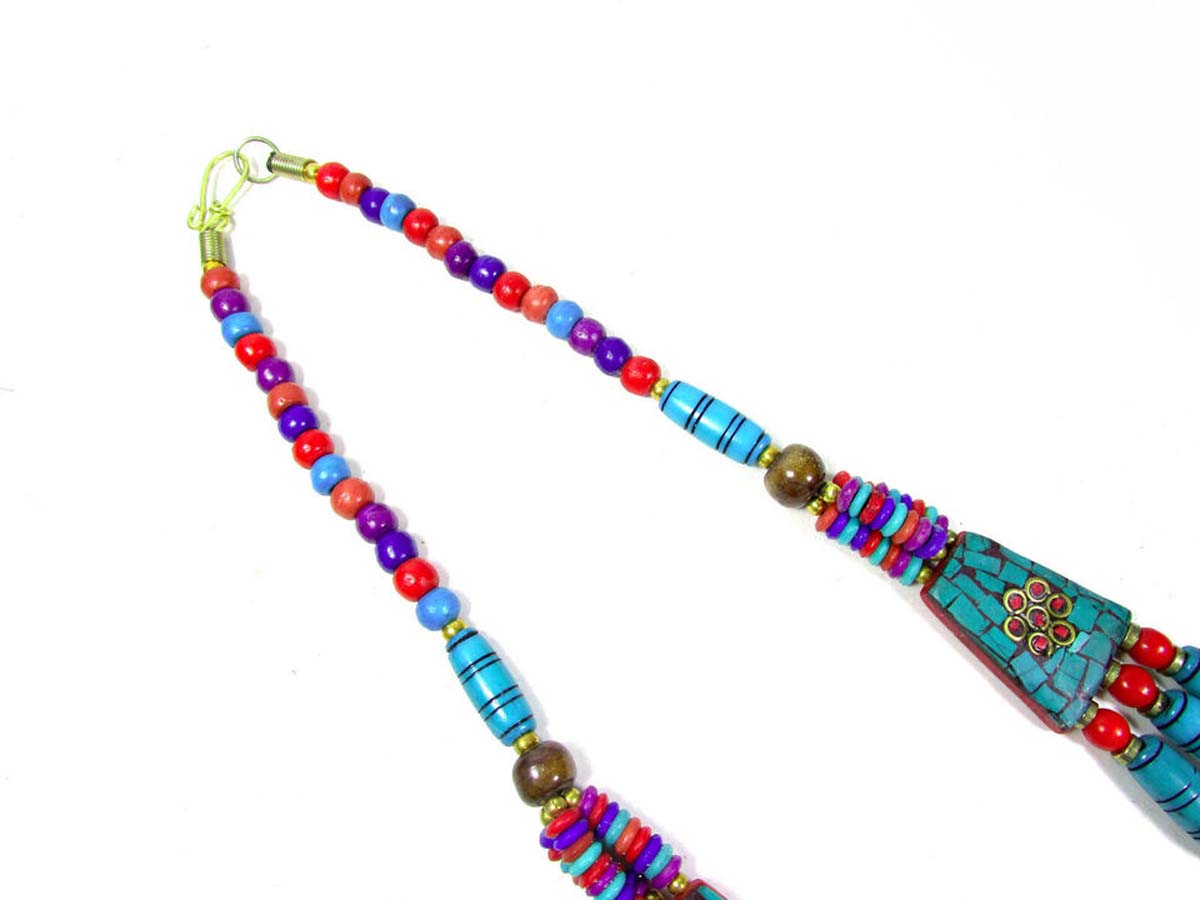 This is a beautiful ethnic 5 multi strand with turquoise resin beads necklace (Brand new) from India. you can wear it as an ethnic tribal piece or use it as a casual jewelry.