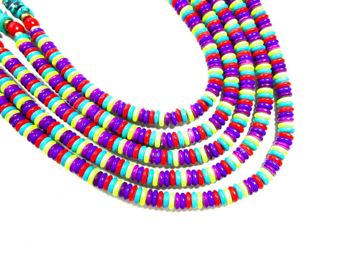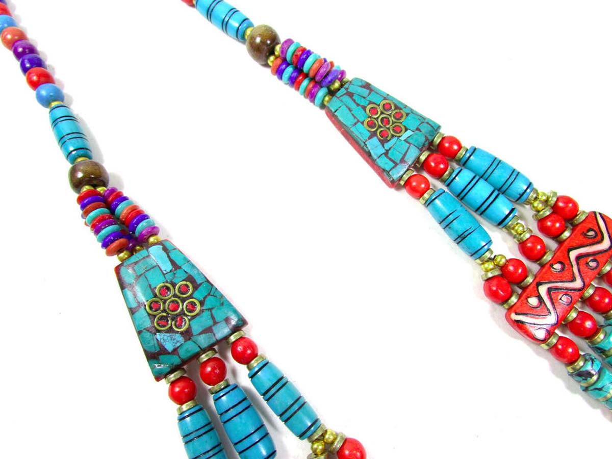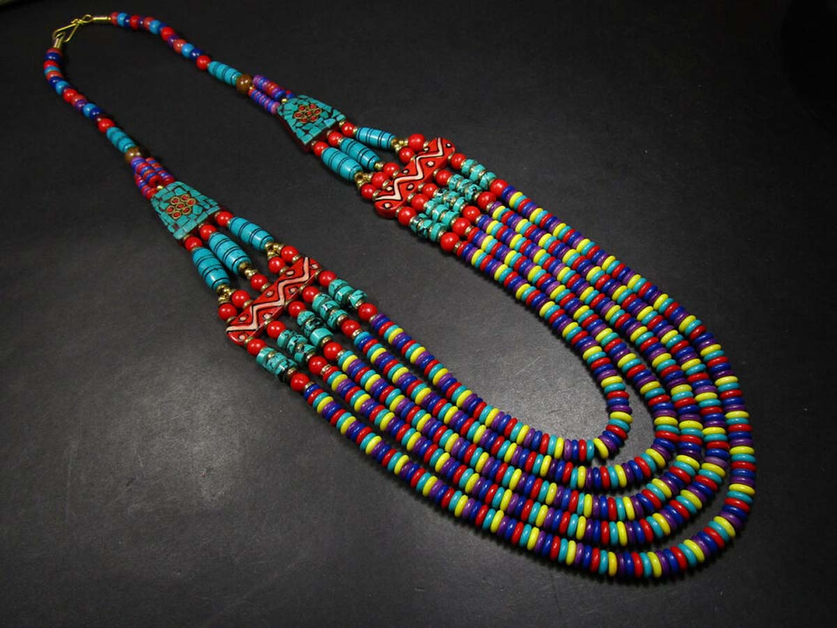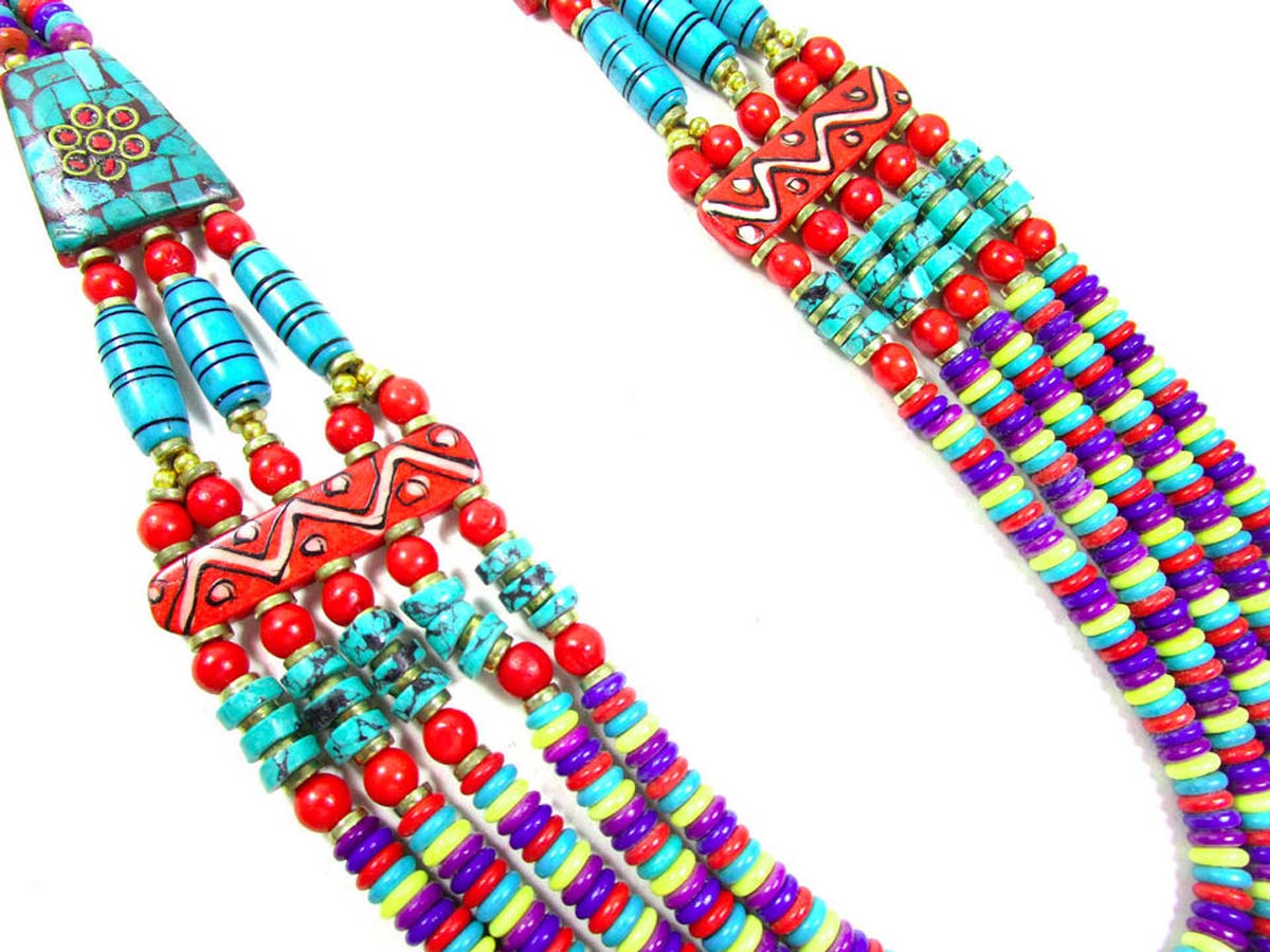 This is a beautiful ethnic 5 multi strand with turquoise resin beads necklace (Brand new) from India. you can wear it as an ethnic tribal piece or use it as a casual jewelry.