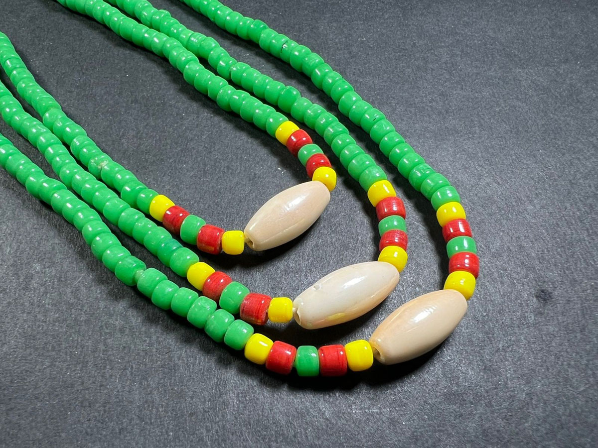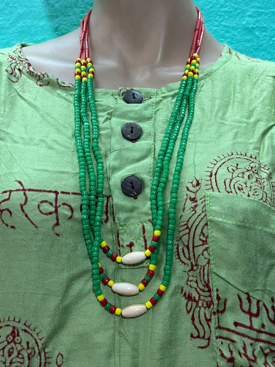This is an ethnic Tribal, gypsy, glass beaded strand with cotton cord handmade necklace (Brand New) from India.