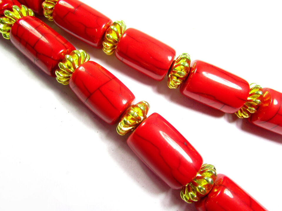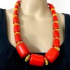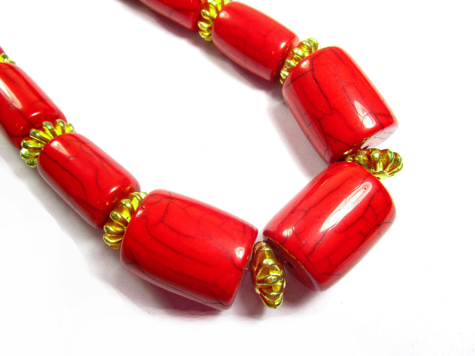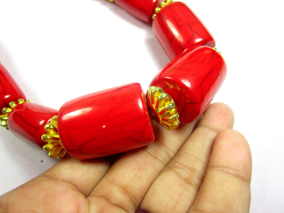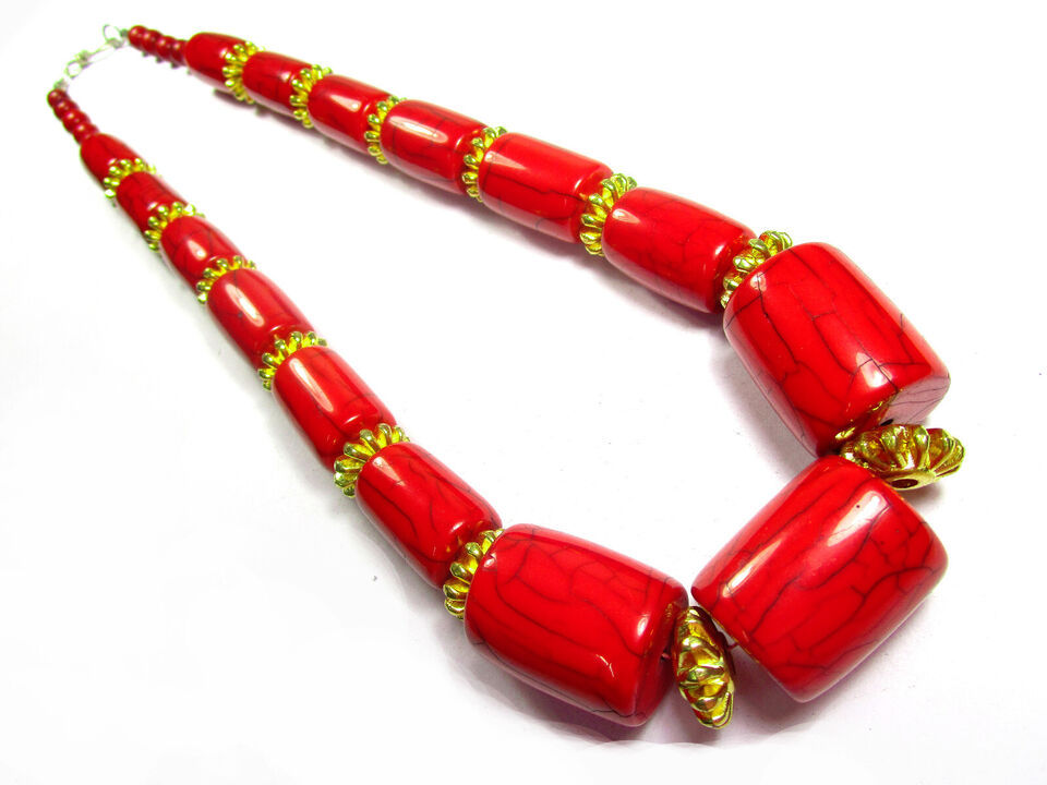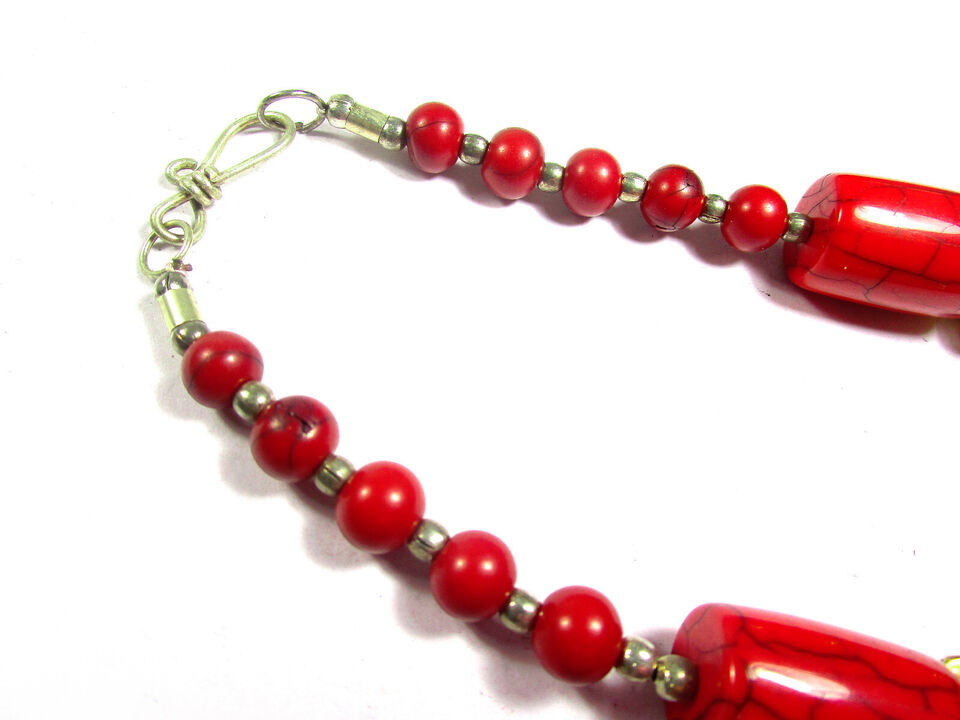 It is an ethnic Tibetan, Red color resin with brass/silver tone beads Necklace handmade from India.