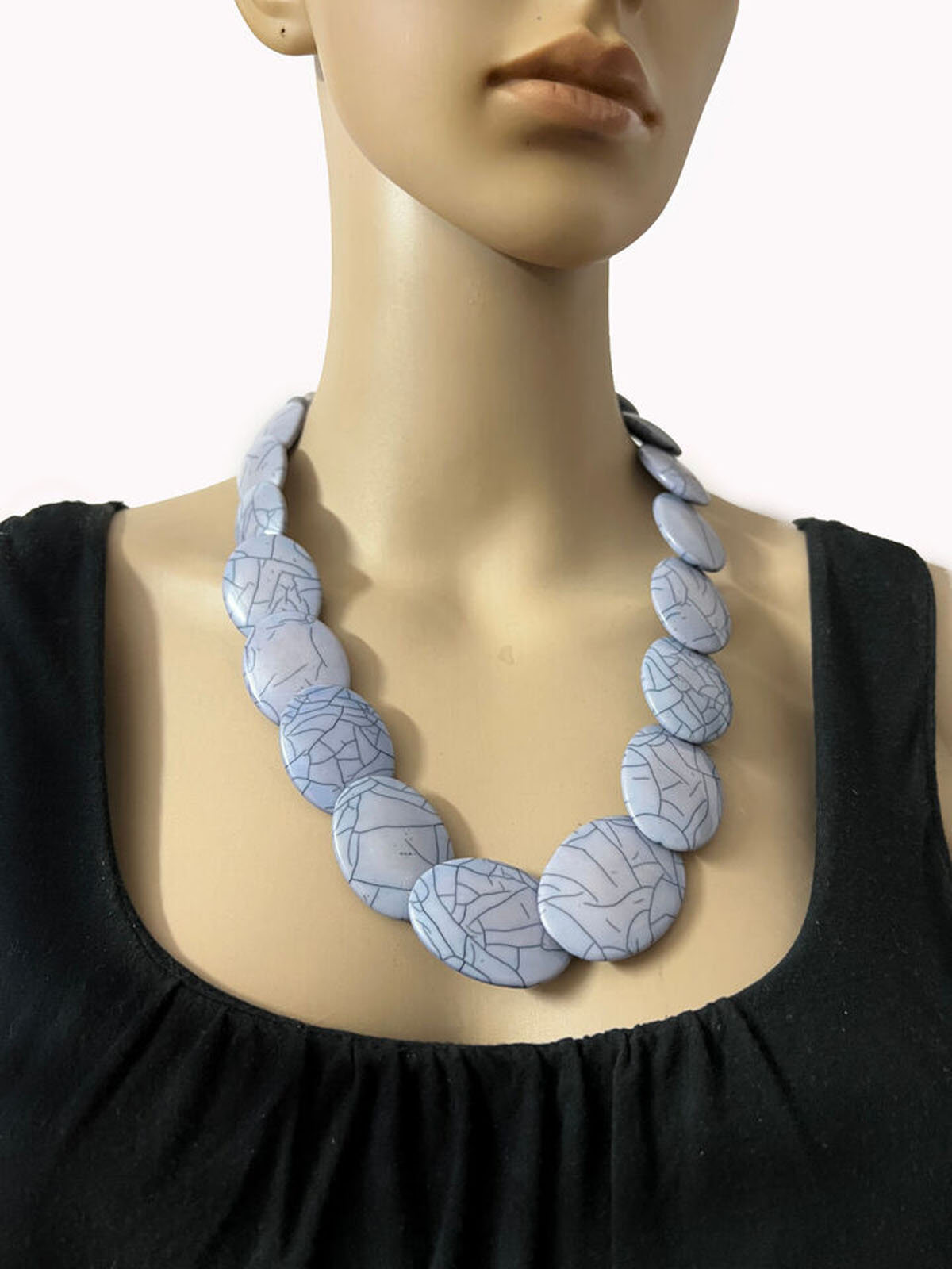 This necklace’s unique design and vibrant colors make it a distinctive accessory, perfect for adding a bold statement to any outfit.