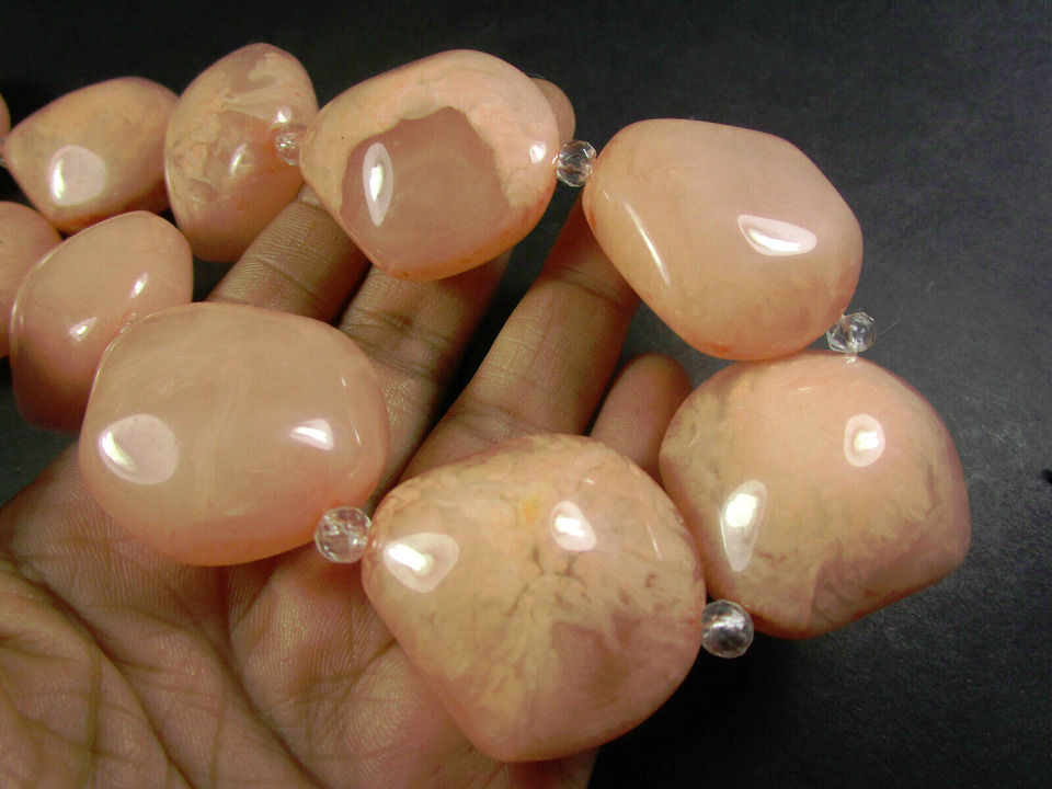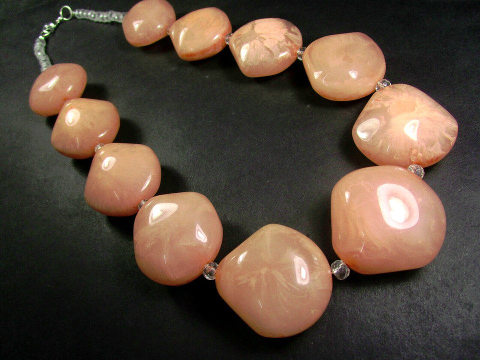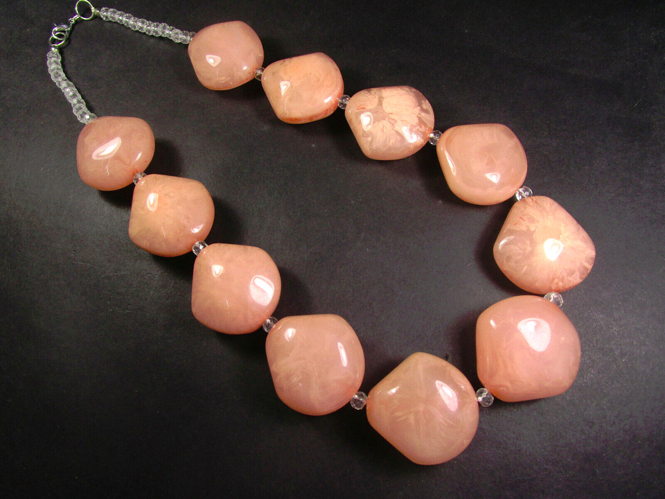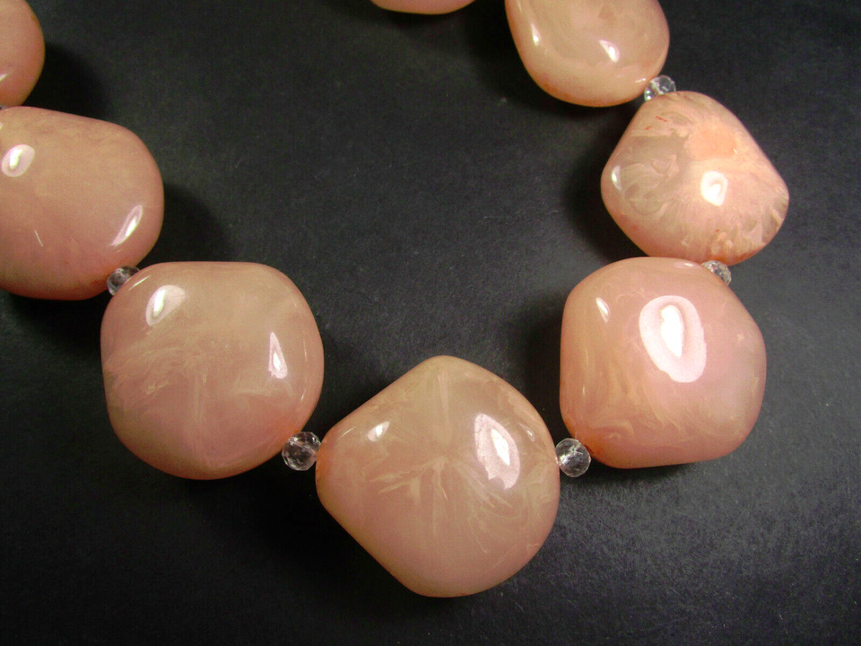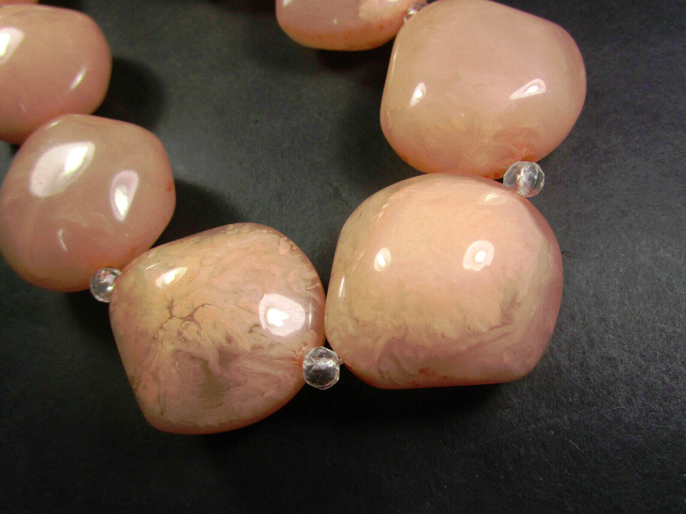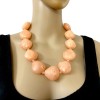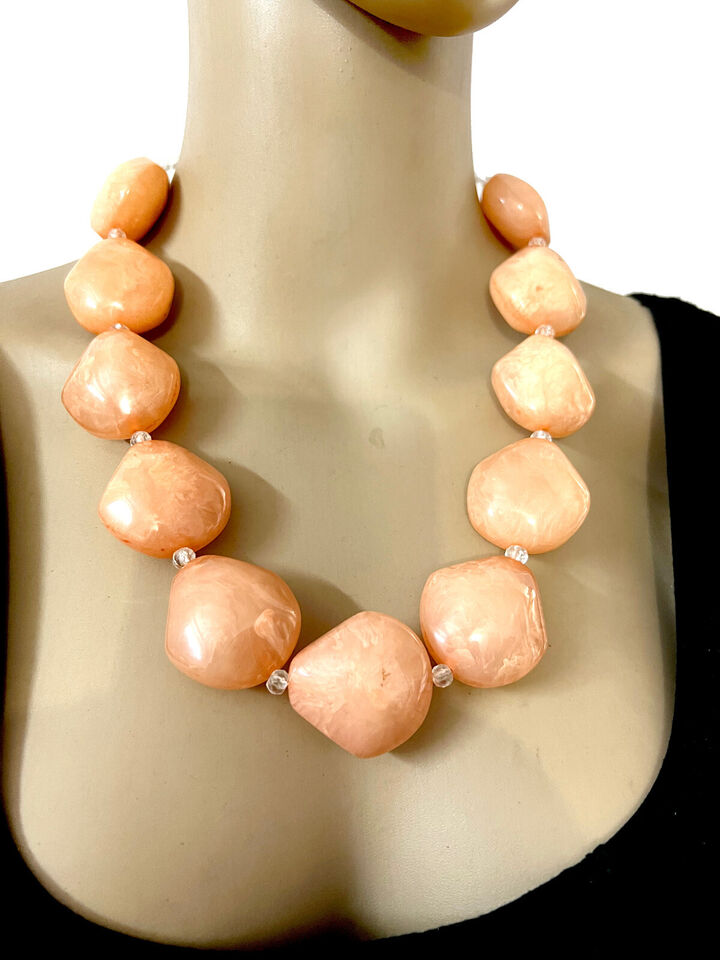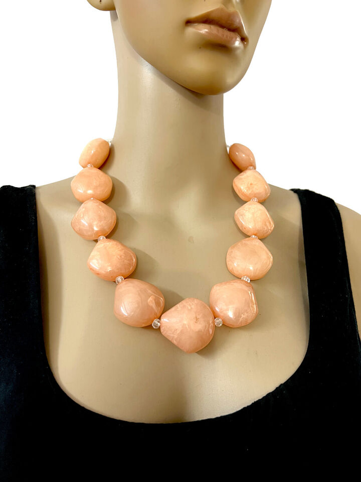 It is an ethnic Tibetan, Bold Peach color Resin with Crystal beads Necklace handmade from India.