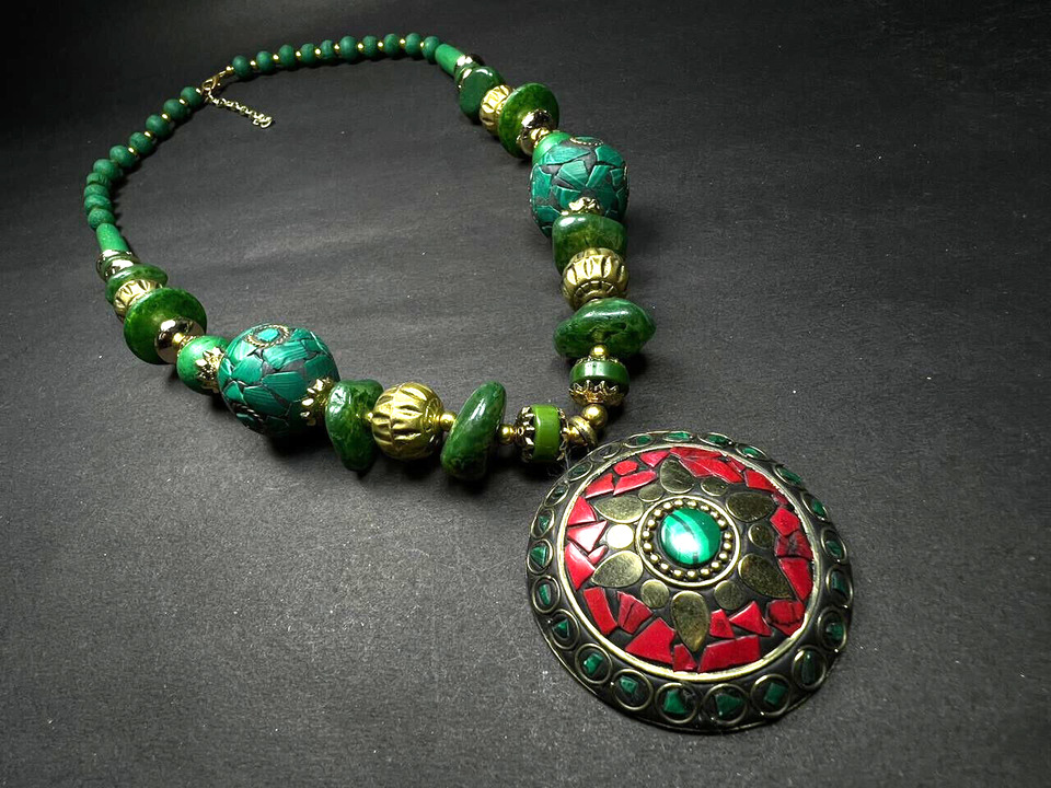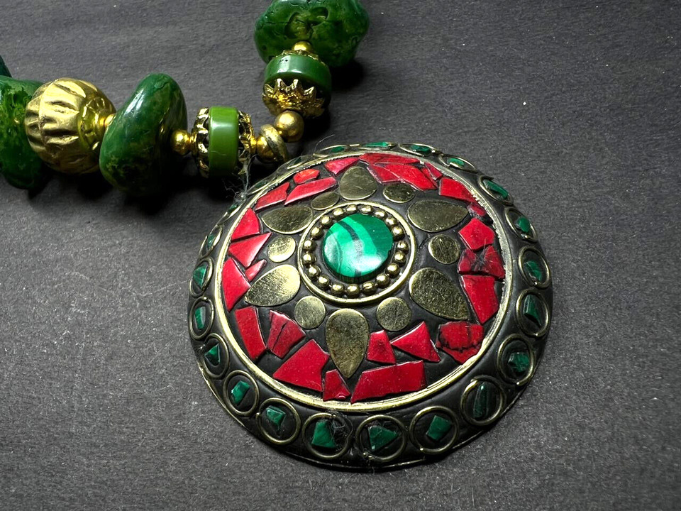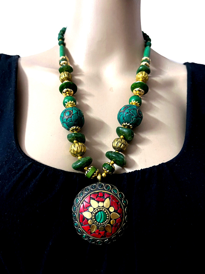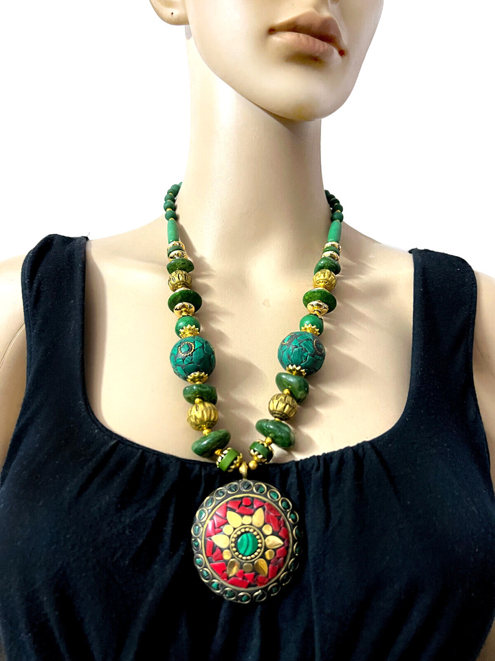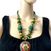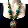It is an ethnic Tibetan Fashion design Chemical resin beads with mosaic pendant style Necklace from India.
