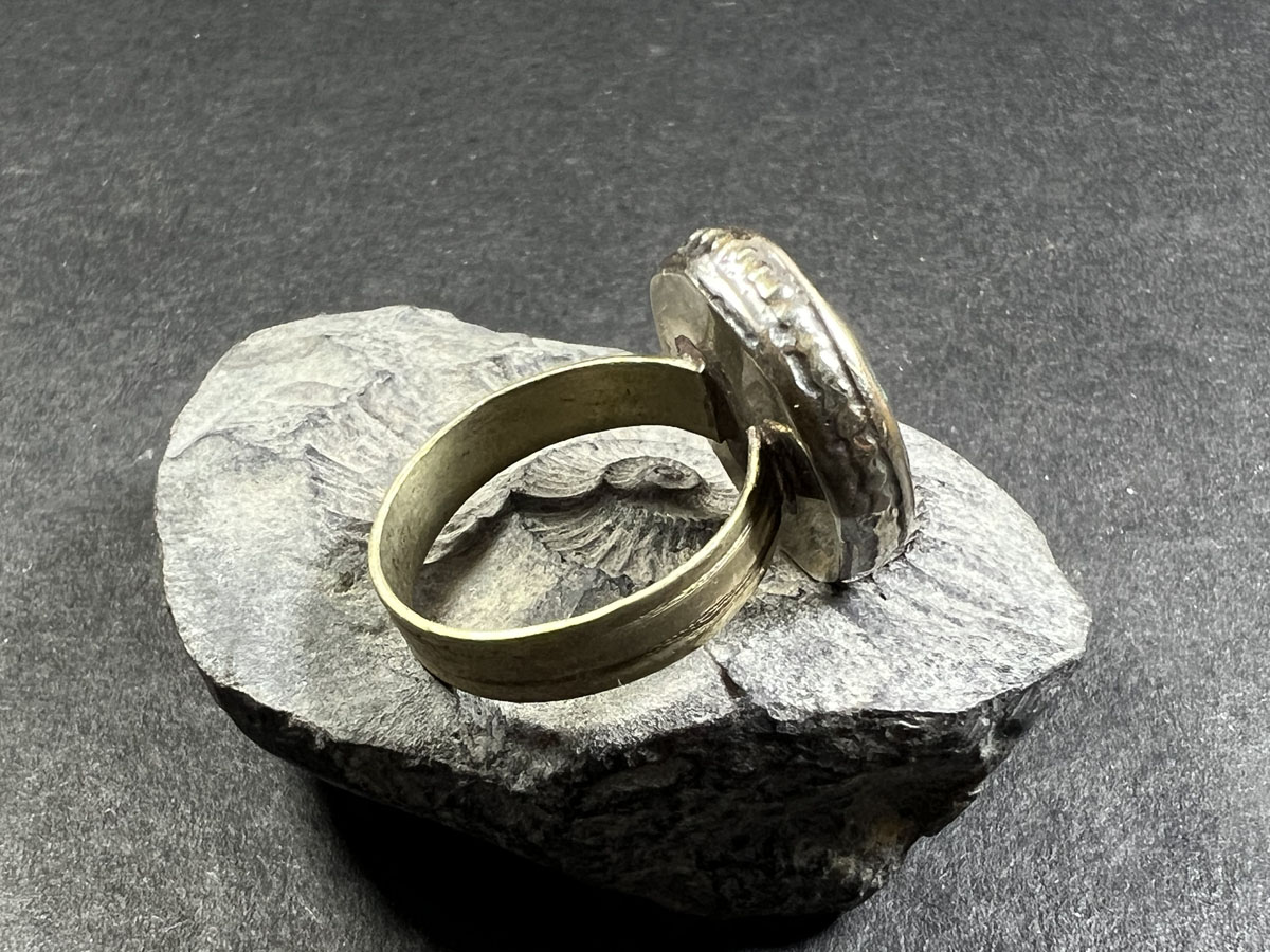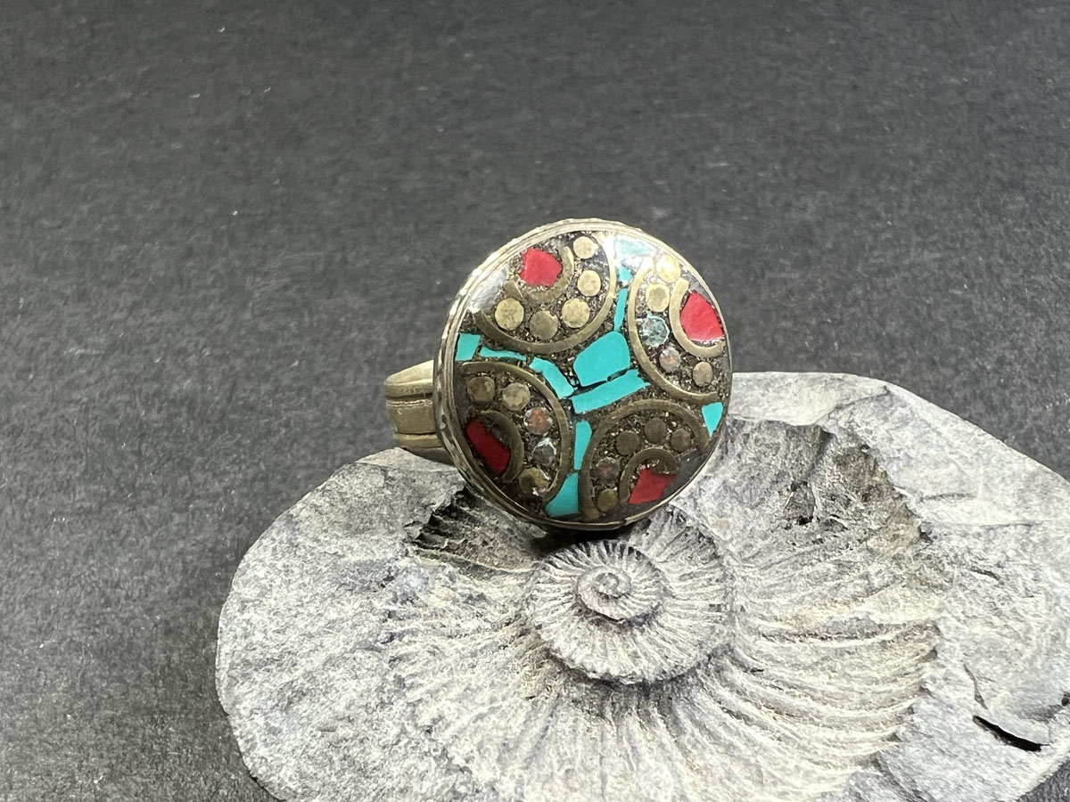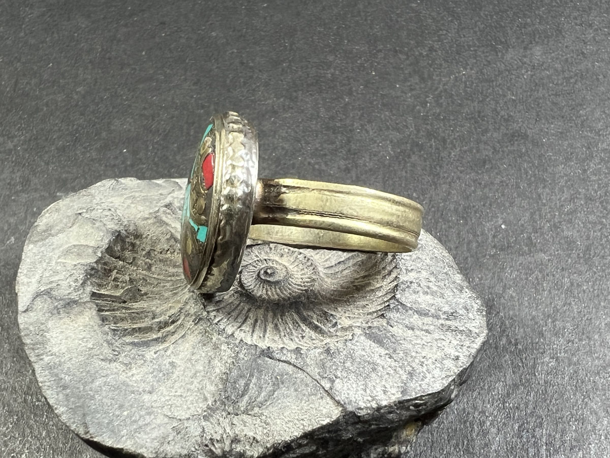 Resin: The ring features resin accents, which are often used in Tibetan jewelry to add texture and dimension. Resin can be molded to create intricate patterns and designs, which adds visual interest to the ring.