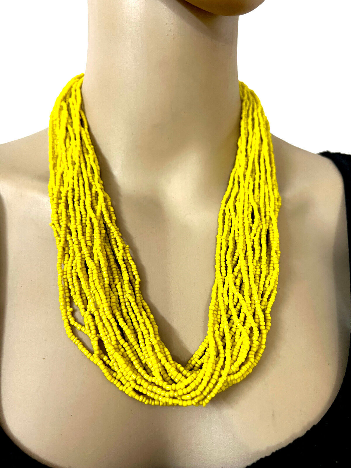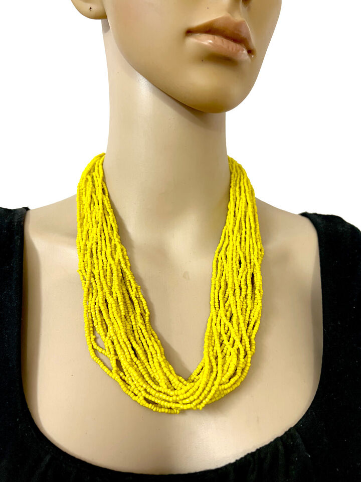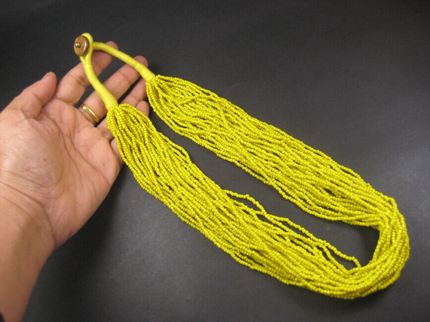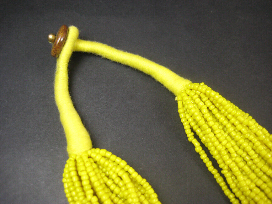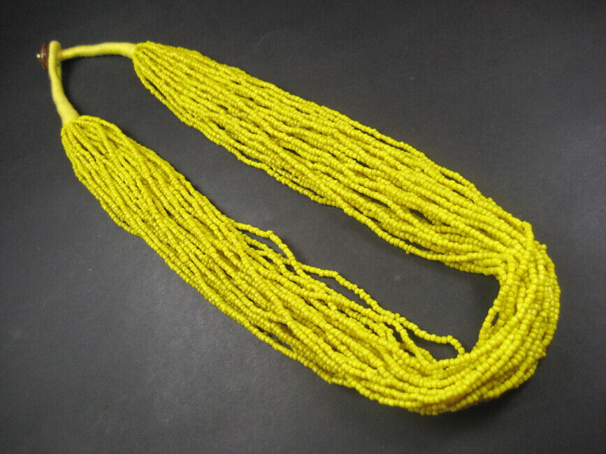 This is a beautiful ethnic multi strand yellow color glass beads with cotton cord necklace (Brand new) from India.