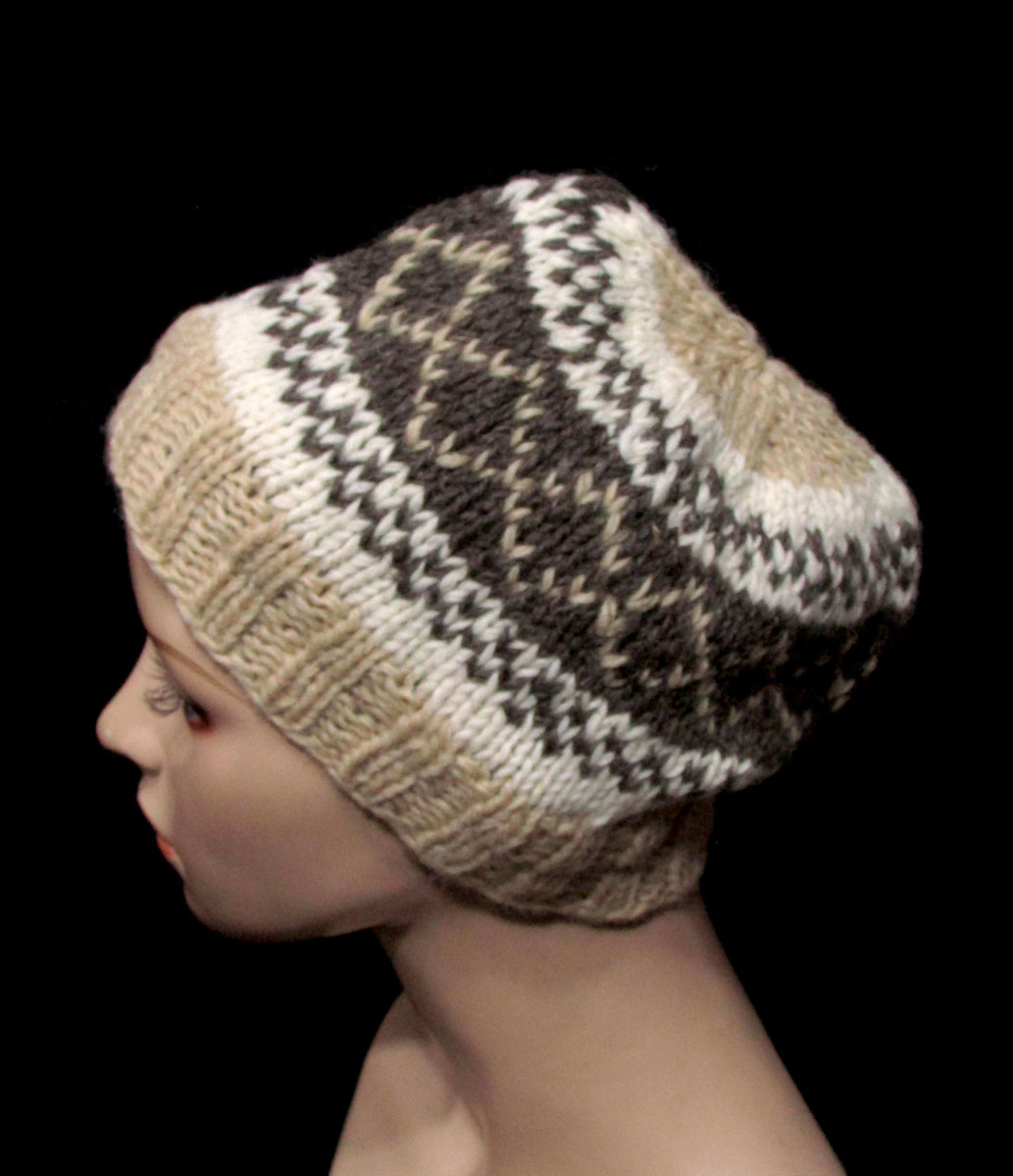 This is a funky unisex Round cap from Nepal. This is a cream, Brown and white color cap made from 100% wool. It has a warm fleece inner lining. This hand knitted woolen cap is soft, tight knitted and of good quality.