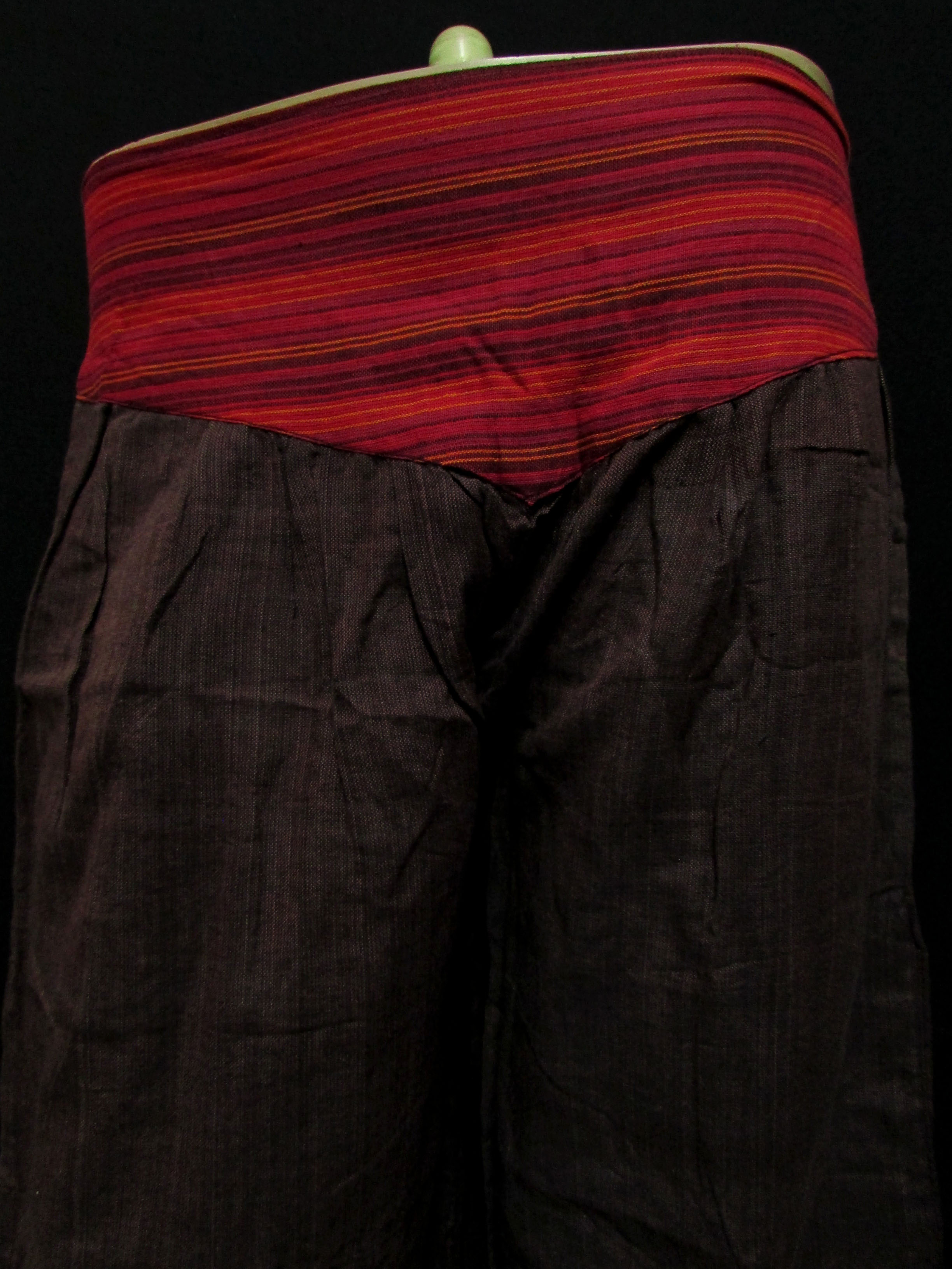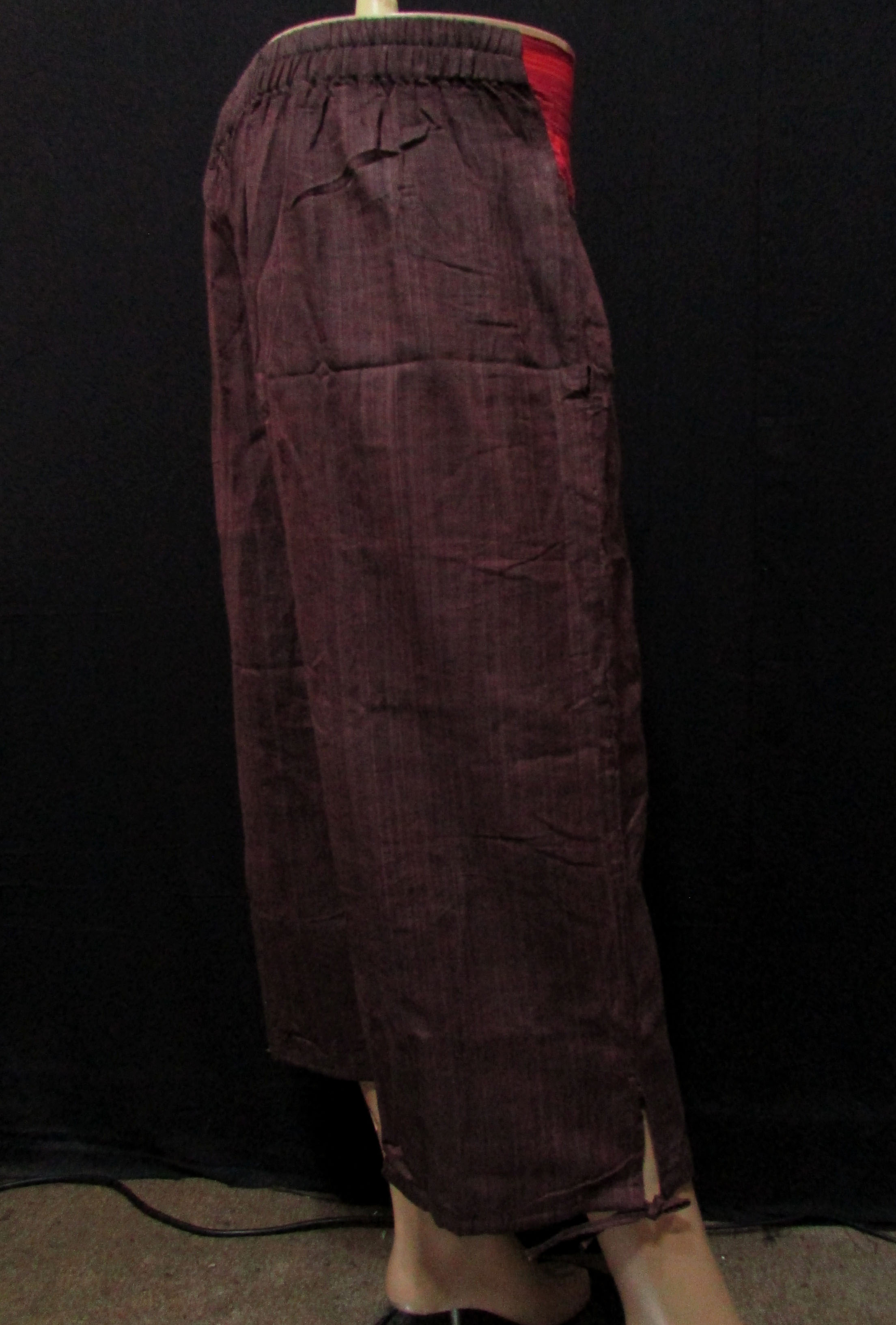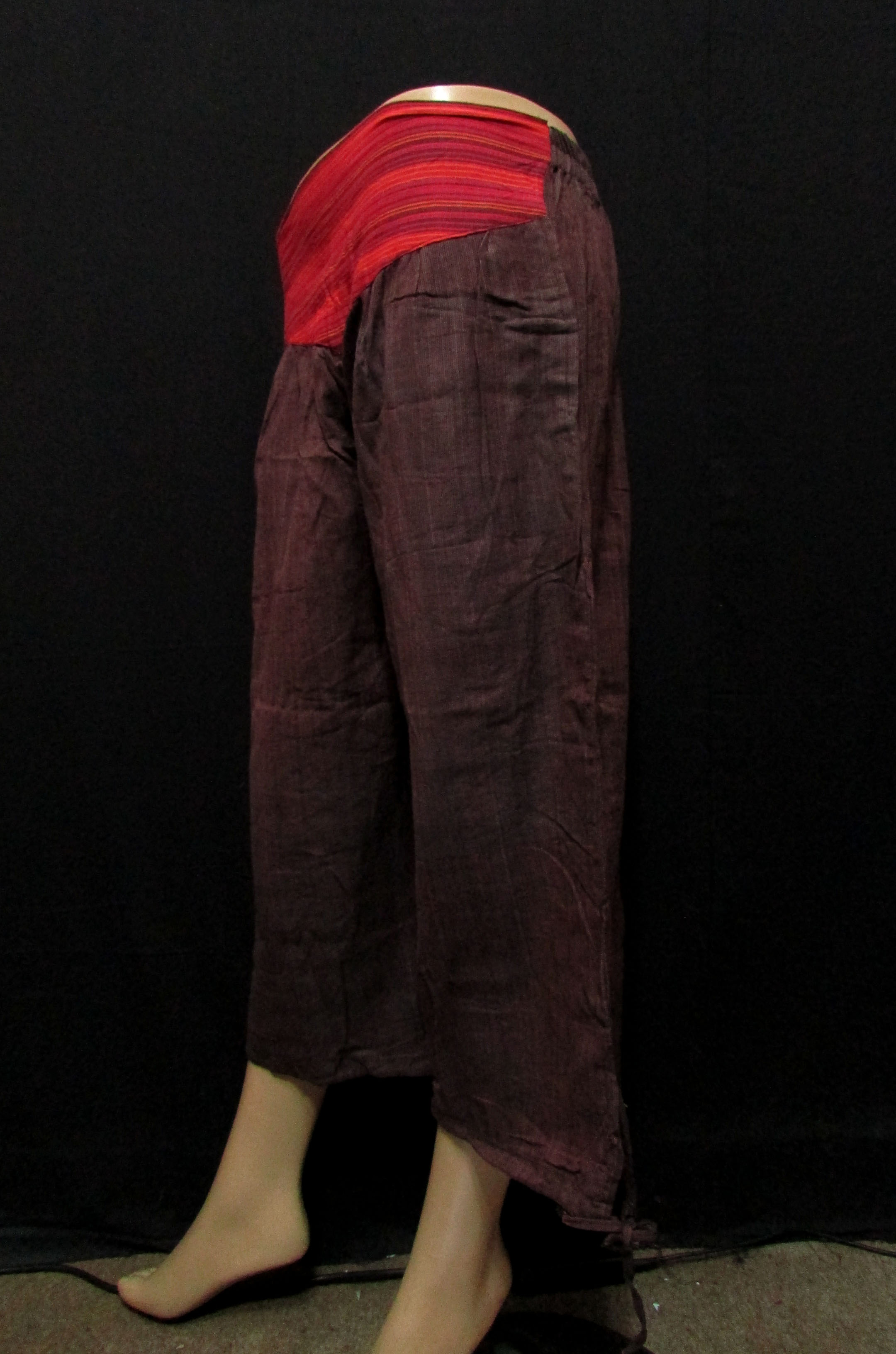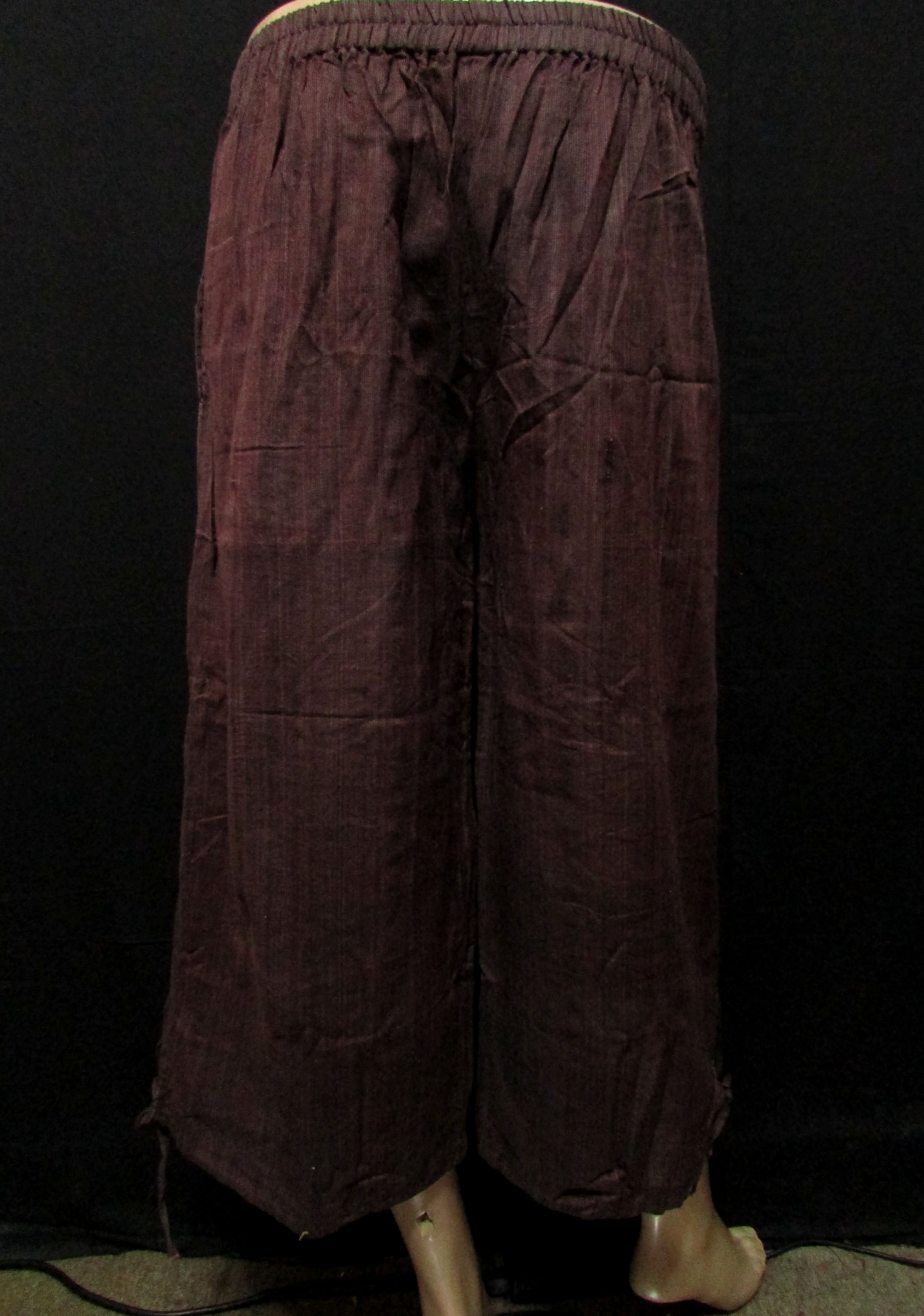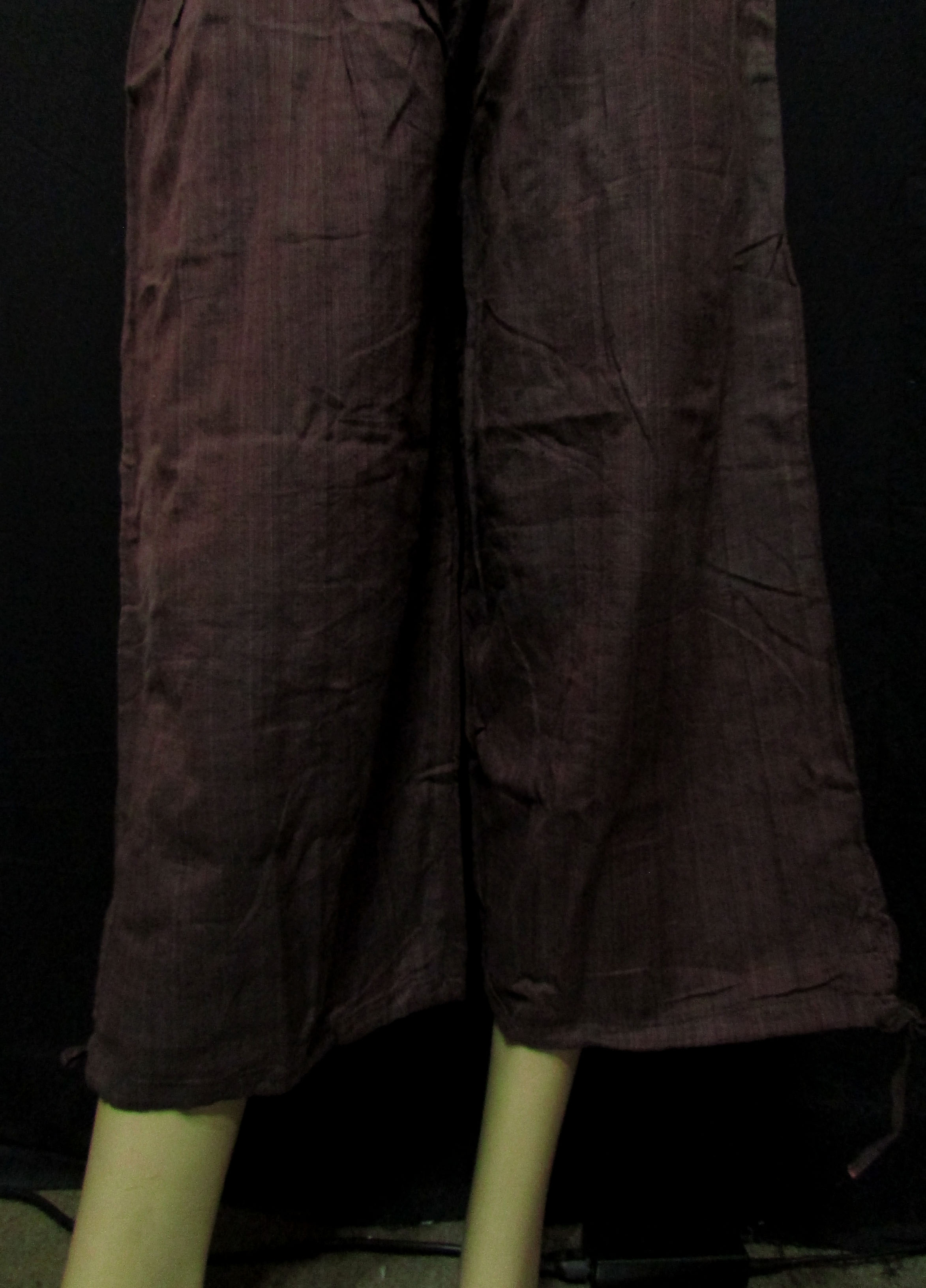 This a brand new (with tag) garment 100% cotton free size three quarter trouser entirely handmade in Nepal. It has elasticated waistband at the back which fits almost any adult. The trouser has two inside pockets. It can be used as casual wear.