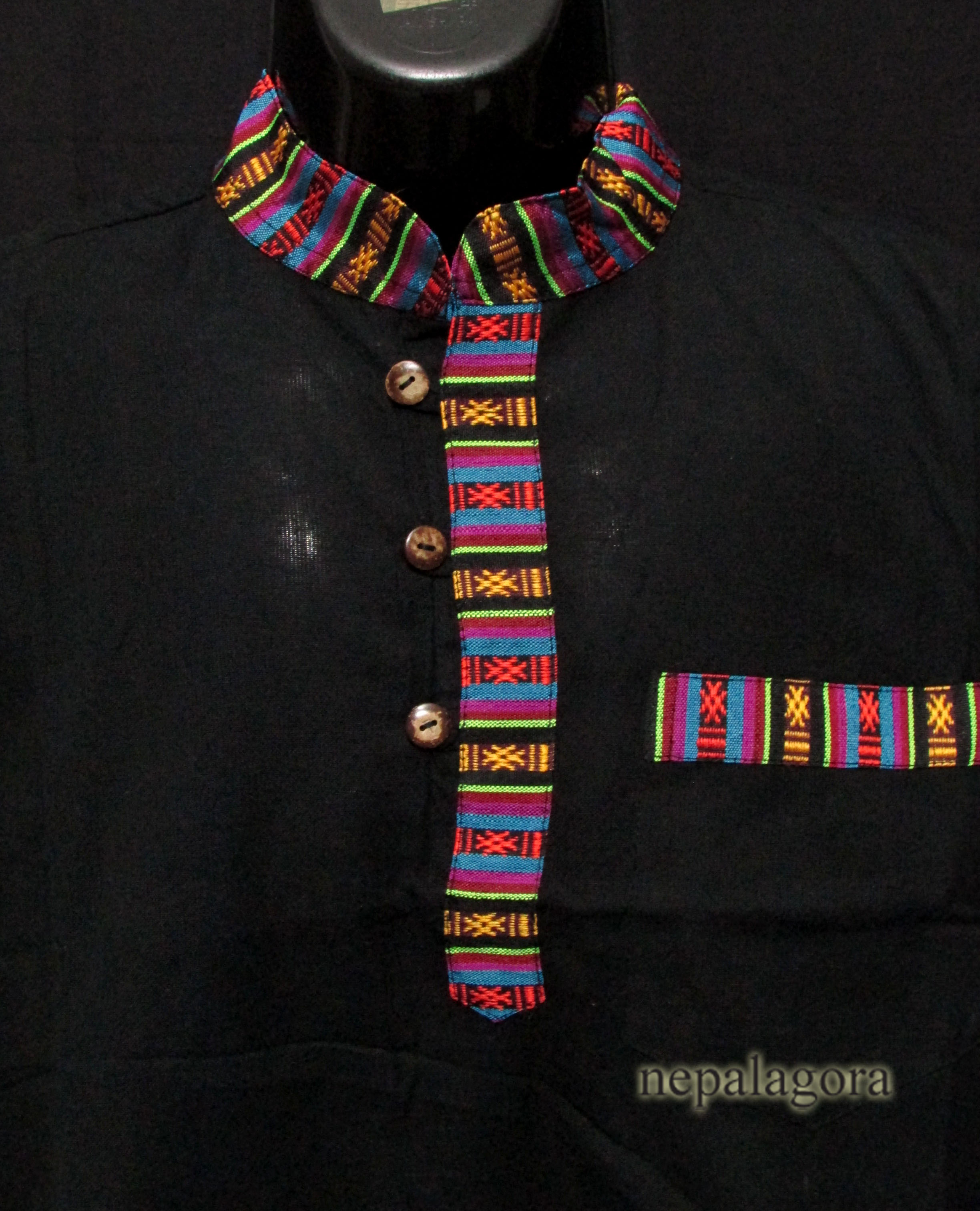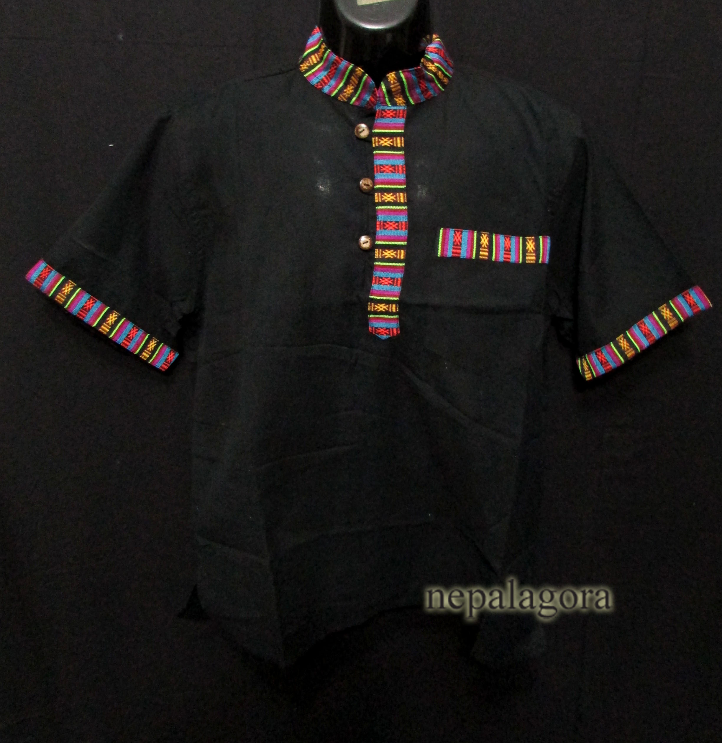 These handloom 100% cotton fabrics here in Nepal are known as "Khadar". These fabrics are well known being light and it gets soft as it is used and come in many different color variations that you can choose from. Very good for a hot climate, as it absorbs body moisture to help keep the skin dry. These shirts are known as Grandad Collar also known as Chinese Collar.