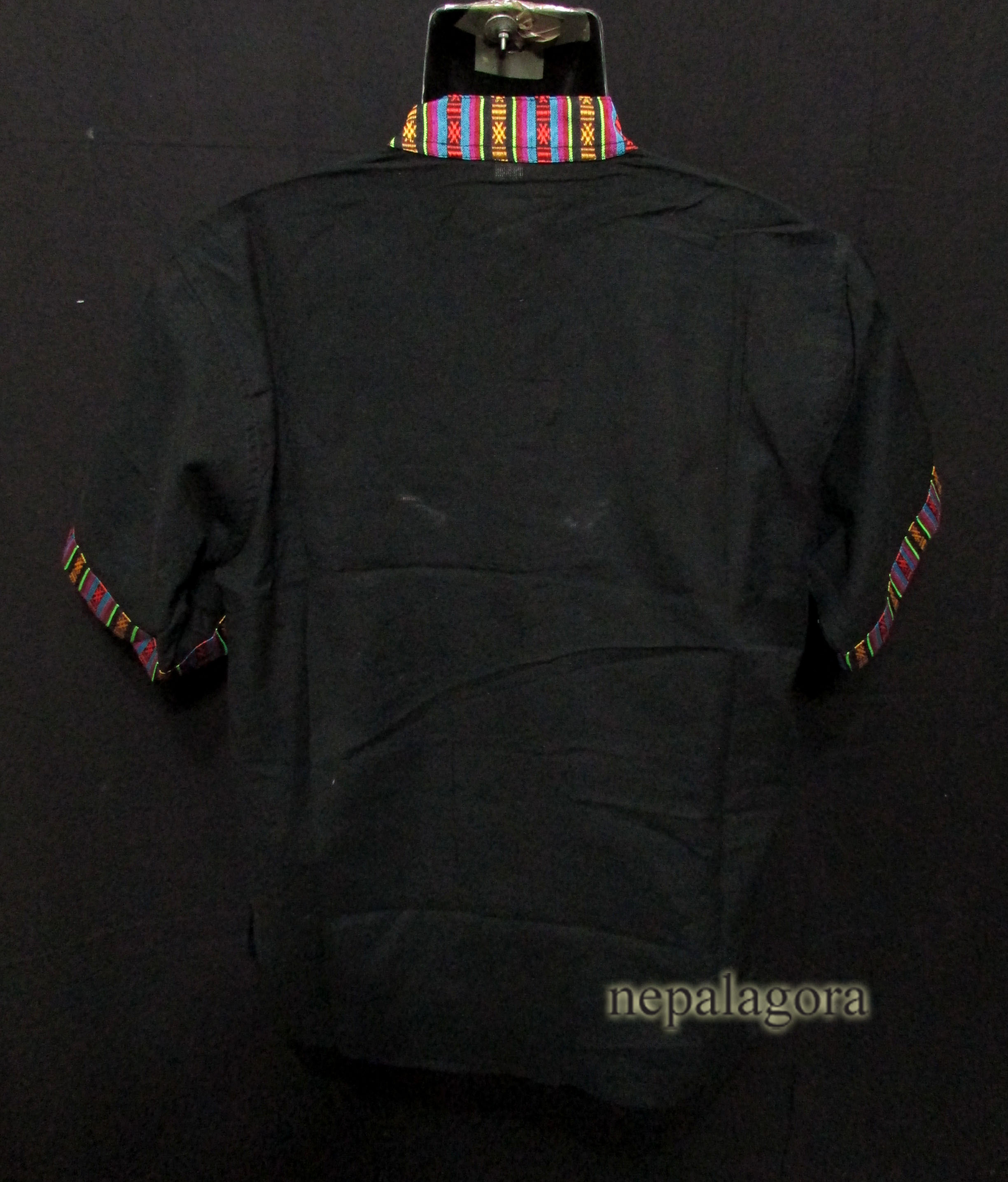This a brand new (with tag) garment 100% cotton handlooms tunic top shirt With Bhutani fabric design borders entirely handmade in Nepal. This is a top having three unique wood button and one pocket on left front chest with short sleeve which looks very classic and stylish. We can use it as casual wear in the summer.