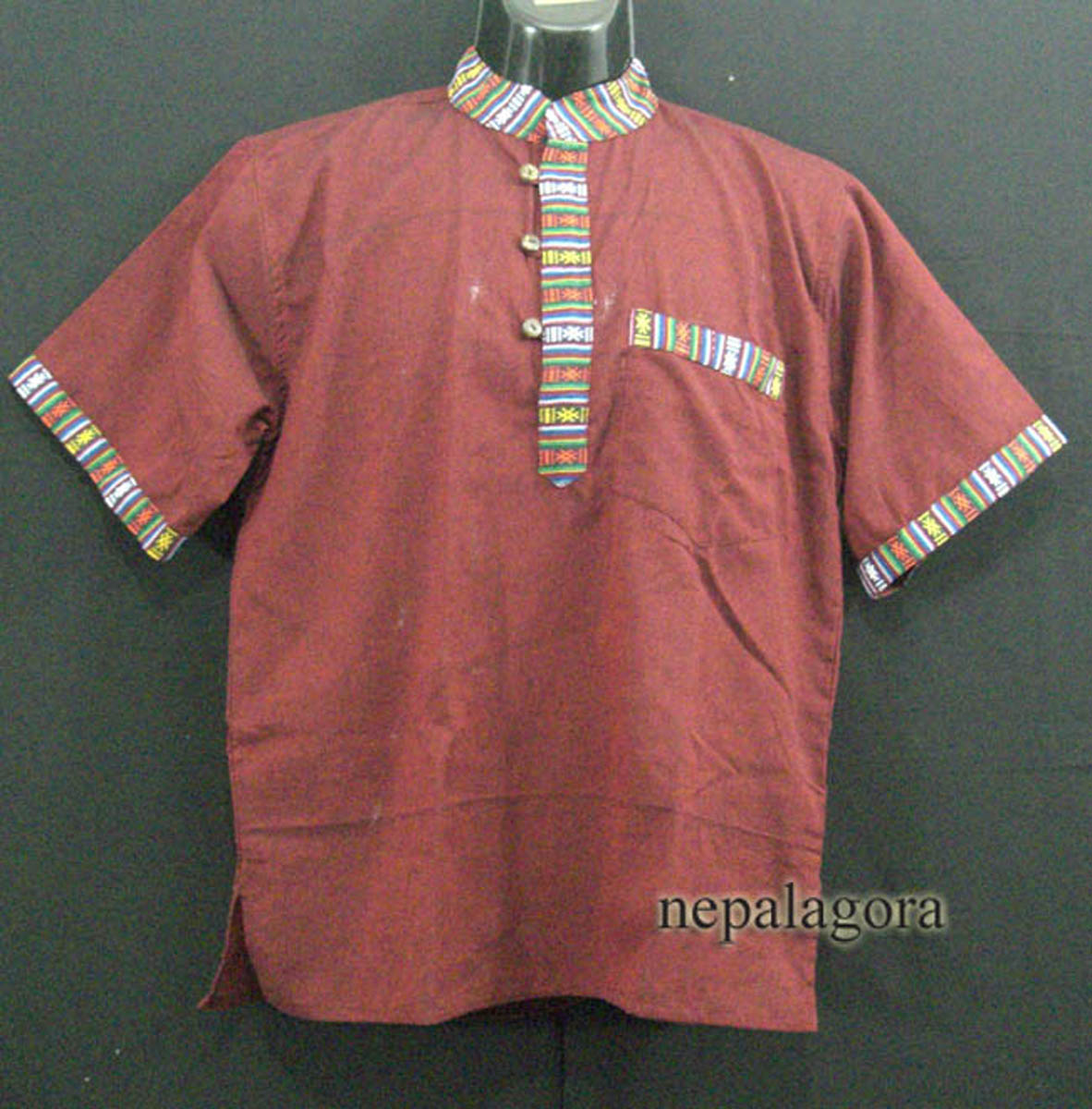 These handloom 100% cotton fabrics here in Nepal are known as "Khadar". These fabrics are well known being light and it gets soft as it is used and come in many different color variations that you can choose from. Very good for a hot climate, as it absorbs body moisture to help keep the skin dry. These shirts are known as Grandad Collar also known as Chinese Collar.