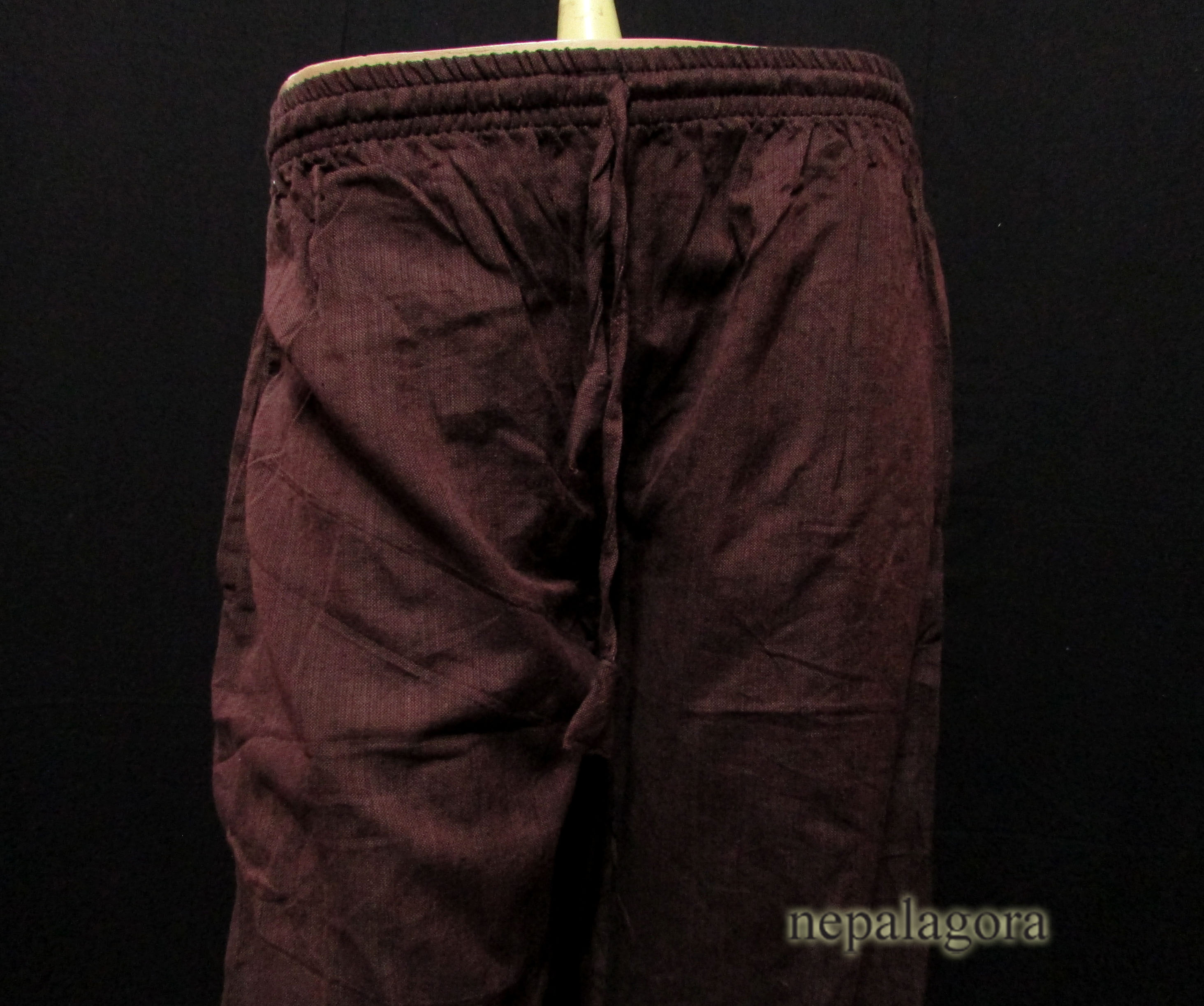 This a brand new (with tag) garment 100% cotton handloom trouser entirely handmade in Nepal. It has elasticated waistband with drawstring to adjust size. The trouser has two inside pockets and one back pocket. It can be used as casual wear. The trouser makes you feel comfortable as well as stylish looks.