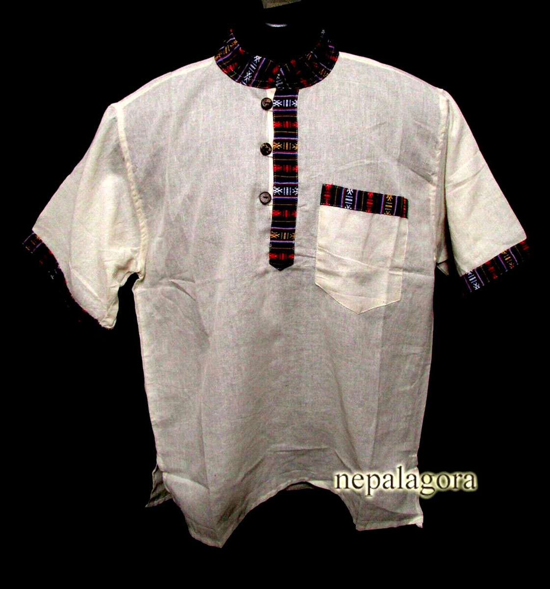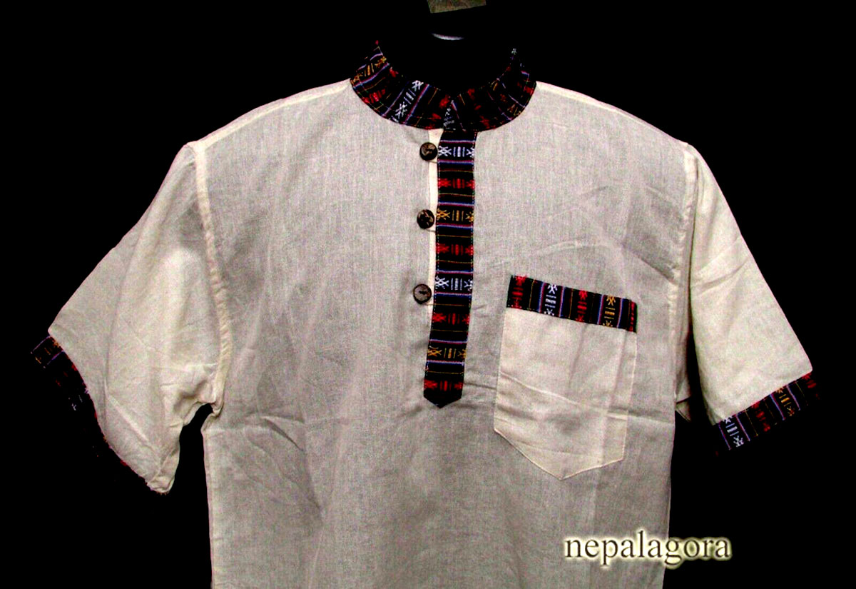 These handloom 100% cotton fabrics here in Nepal are known as "Khadar". These fabrics are well known being light and it gets soft as it is used and come in many different color variations that you can choose from. Very good for a hot climate, as it absorbs body moisture to help keep the skin dry. These shirts are known as Grandad Collar also known as Chinese Collar.