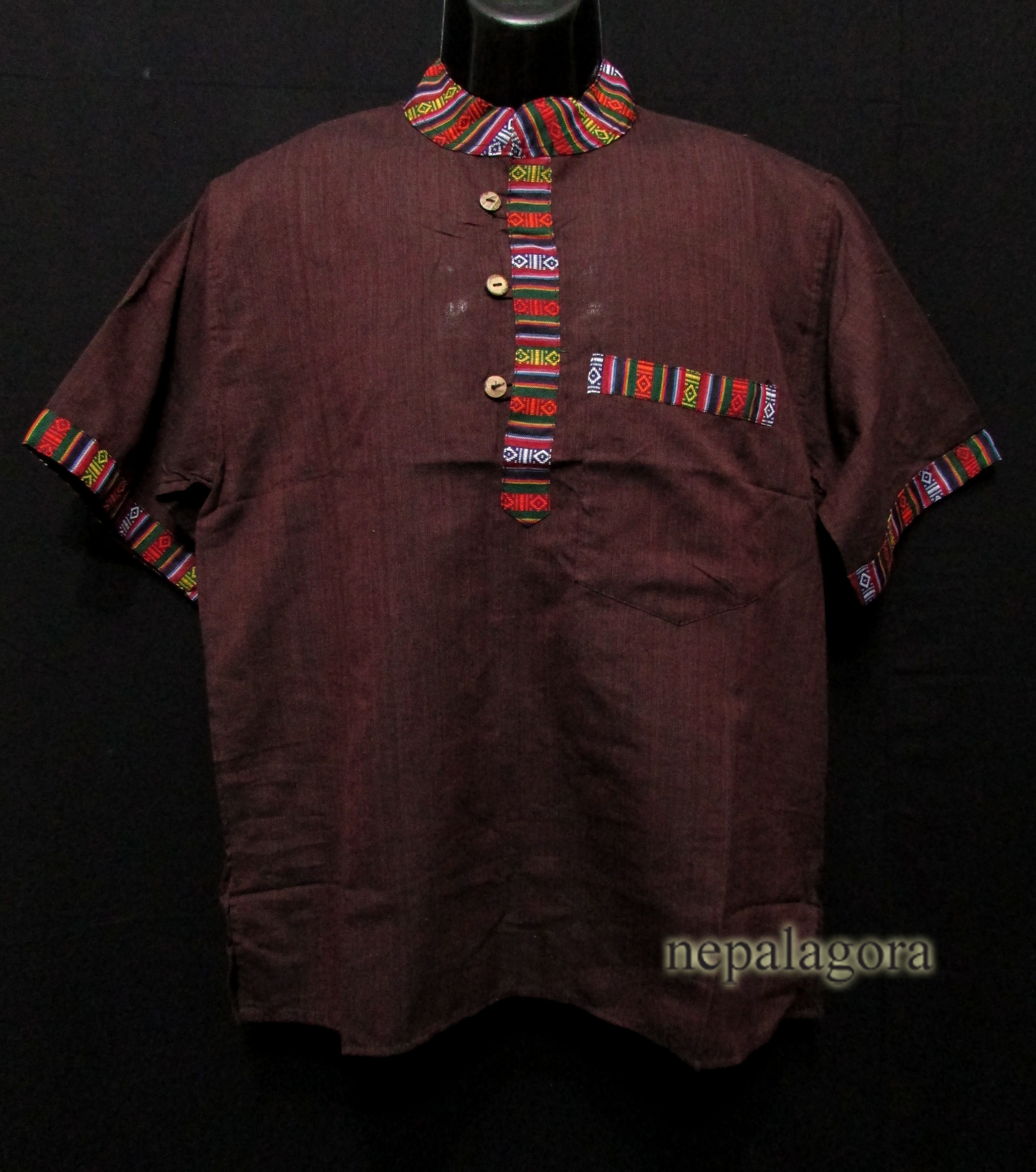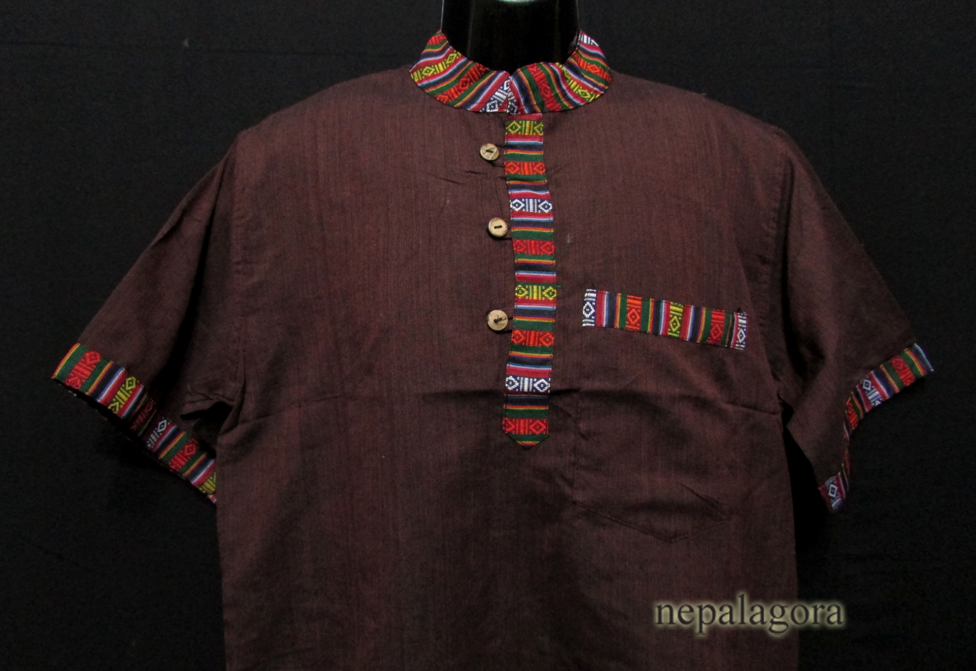 These handloom 100% cotton fabrics here in Nepal are known as "Khadar". These fabrics are well known being light and it gets soft as it is used and come in many different color variations that you can choose from. Very good for a hot climate, as it absorbs body moisture to help keep the skin dry. These shirts are known as Grandad Collar also known as Chinese Collar.