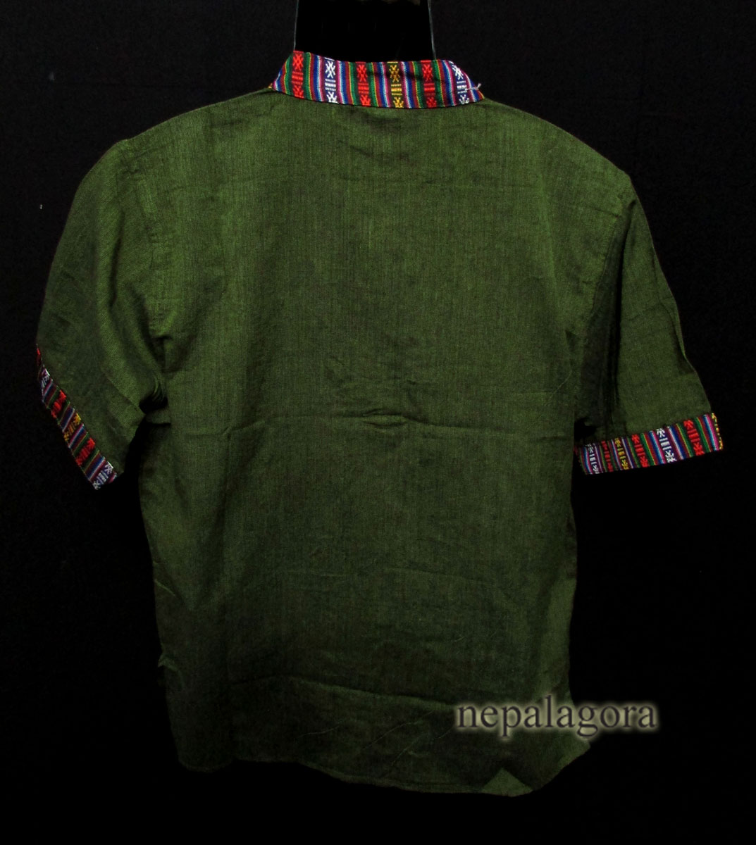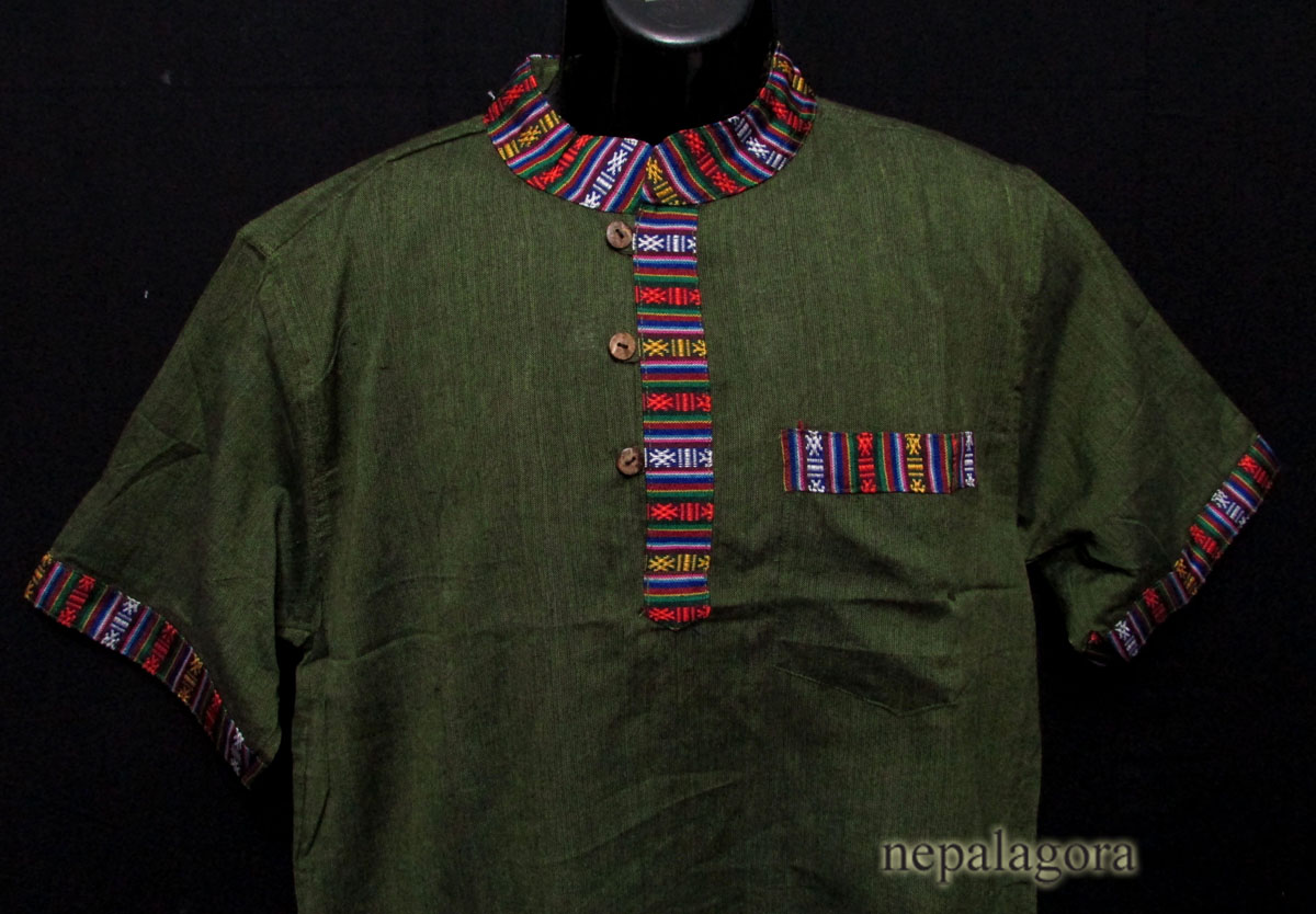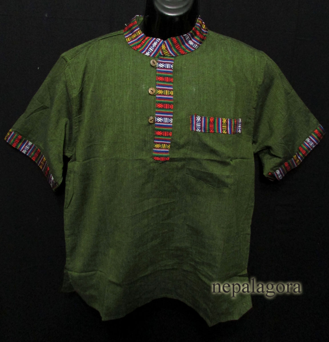 These handloom 100% cotton fabrics here in Nepal are known as "Khadar". These fabrics are well known being light and it gets soft as it is used and come in many different color variations that you can choose from. Very good for a hot climate, as it absorbs body moisture to help keep the skin dry. These shirts are known as Grandad Collar also known as Chinese Collar.