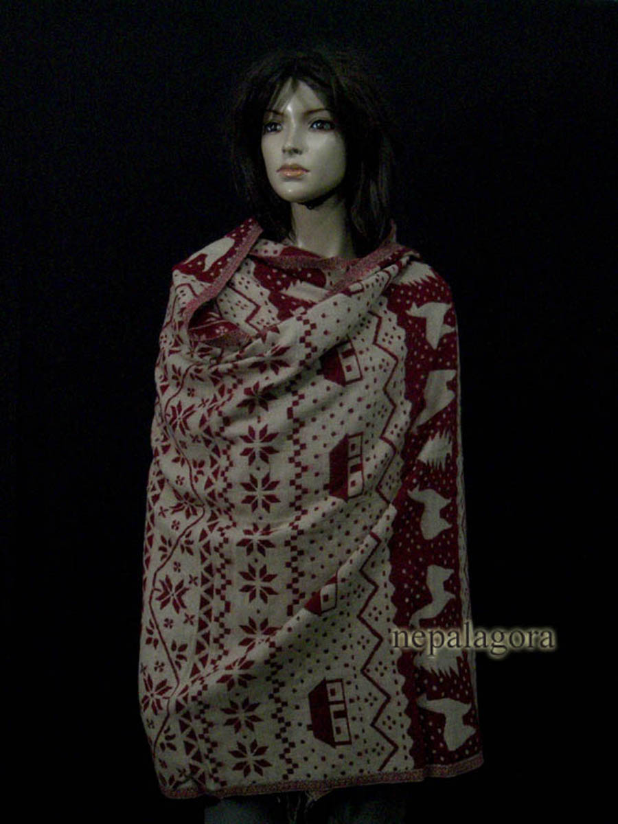 The shawl has been hand loomed by local artisans in Nepal. It is blended with yak wool and cotton. It is very soft, gentle, very warm yet light to wrap. Gentle hand wash or steam clean.