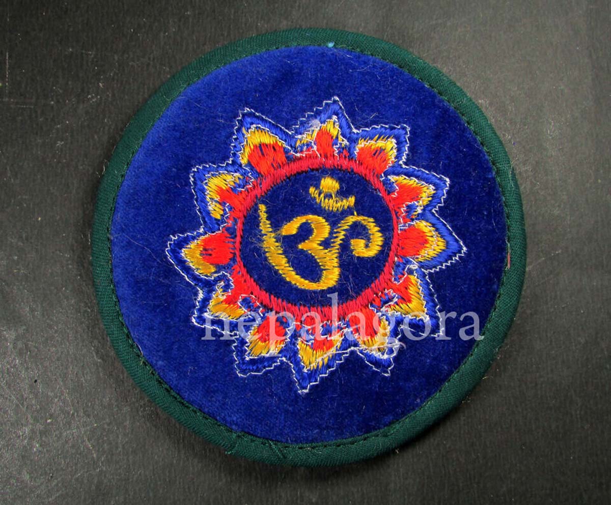 Sanskrit Om embroidered 10 cm round singing bowl cushion pillow mat Nepal