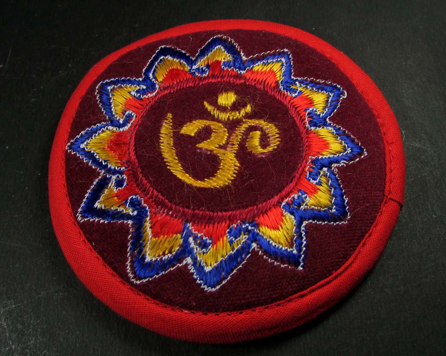 Sanskrit Om embroidered 10 cm round singing bowl cushion pillow mat Nepal